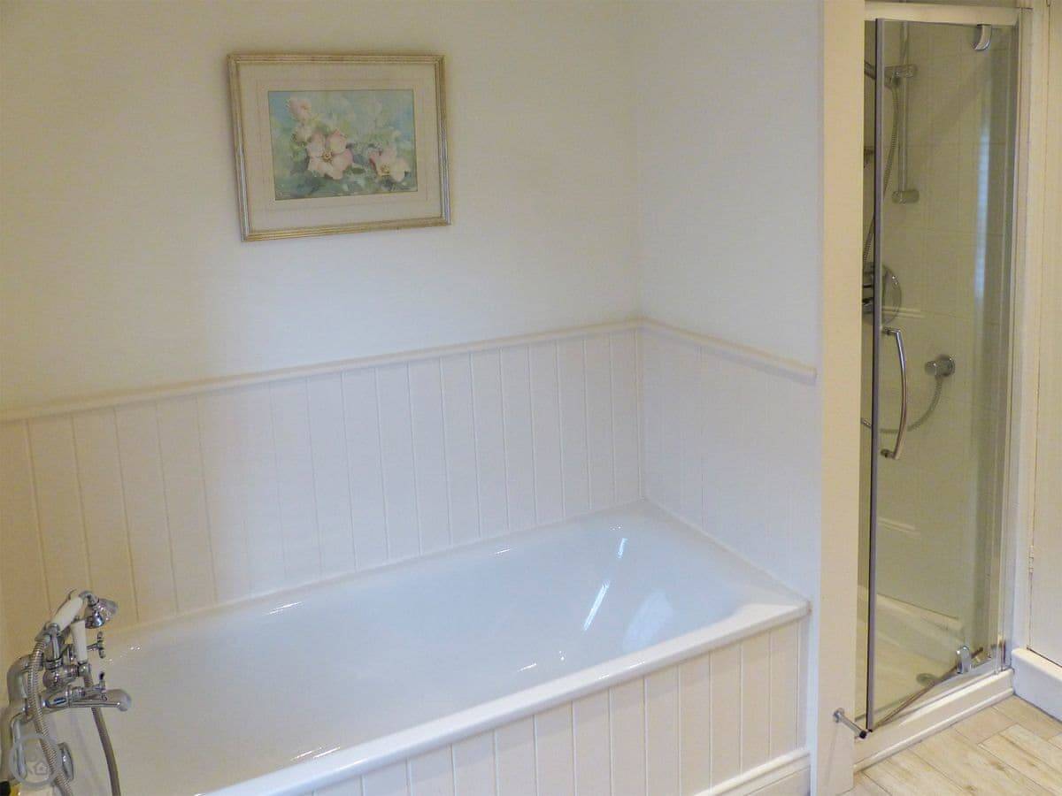 Facilities: WiFi, TV, washing machine. Bedding and towels are included. There's a shower over the bath. Parking is on the street outside the cottage, which is usually fine. No pets.