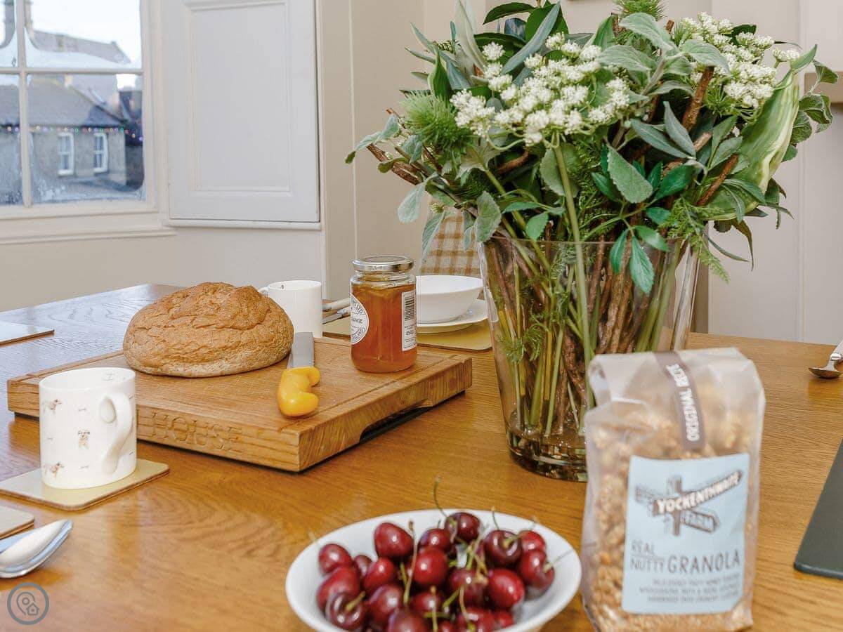 Offering stylish and spacious accommodation, Milton House has a warm and welcoming feel. The living room is a beautiful space to gather with your family and enjoy quality time. Inviting you in with its multi-fuel burner, two comfy sofas and armchairs to relax on, large Smart TV and plenty of room for the whole family.