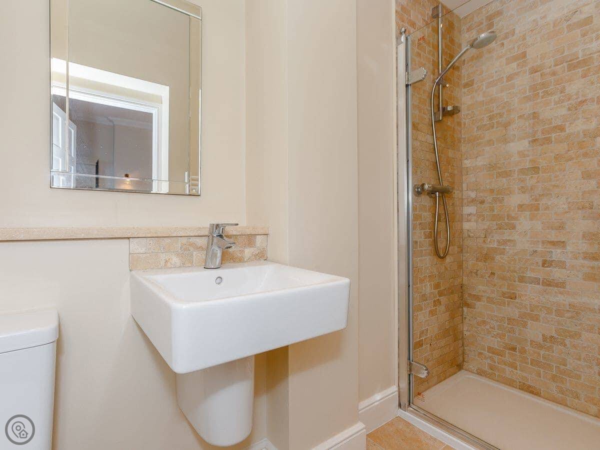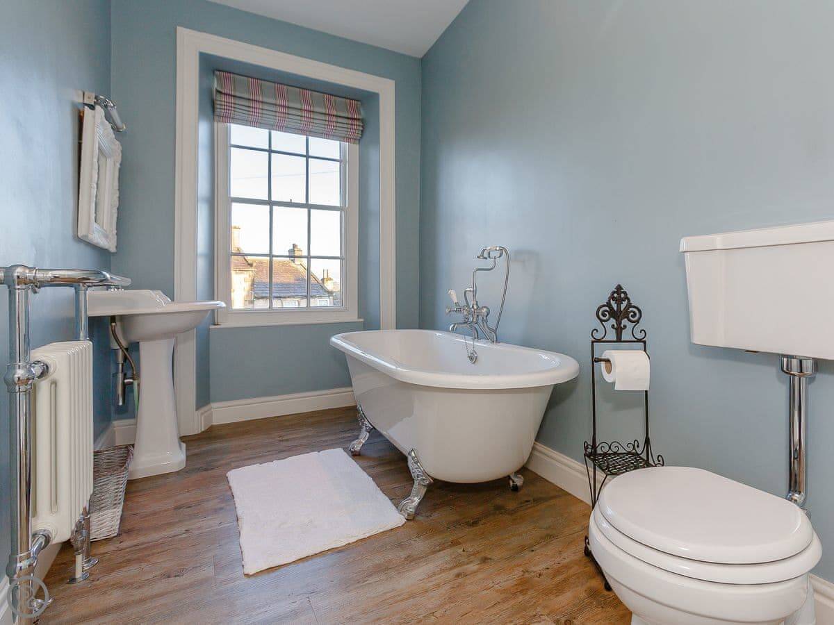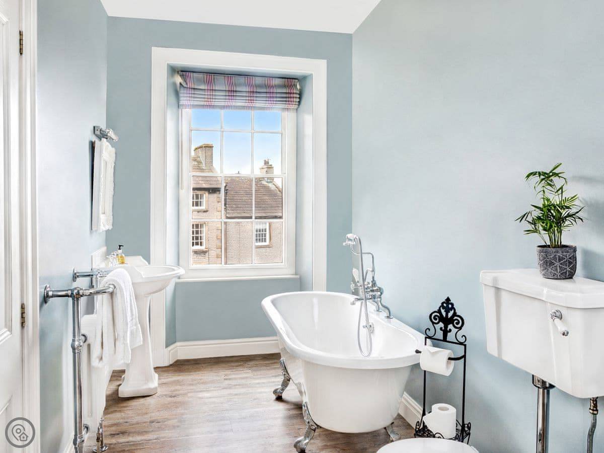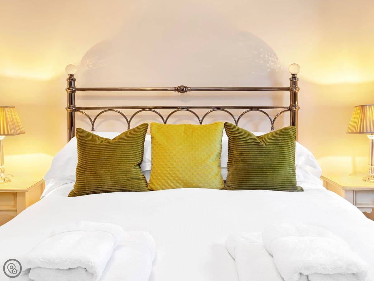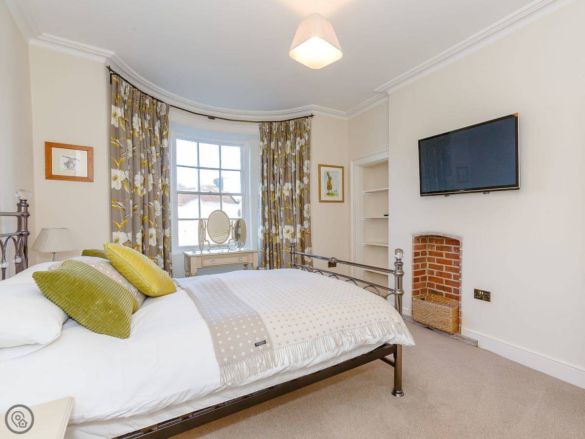 Upstairs are three spacious and beautifully furnished bedrooms. The master bedroom, with a beautiful bay window and en-suite, has a kingsize bed and Smart TV. There is a further kingsize bedroom and a double room all on the first floor which are beautifully presented with attractive bedding and comfortable beds, perfect for a good nights sleep. A family bathroom with luxurious freestanding bath and low entry shower completes this floor.