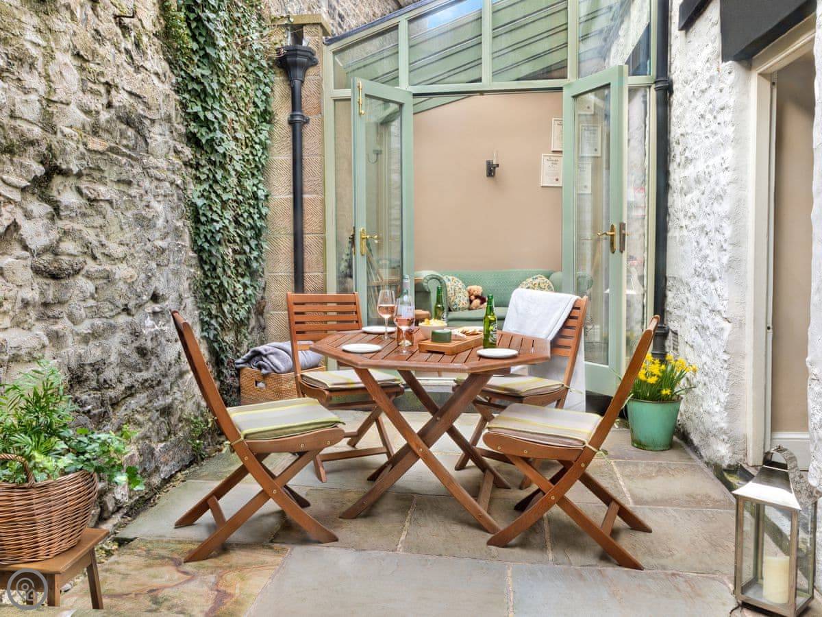 To the rear of the property is a small, attractive, south facing patio area with garden furniture, a great place to retreat with a glass of wine after a busy day in the Dales. Alternatively there are many pubs, restaurants and cafés within a short stroll and all are well known for serving good quality, local food and produce.