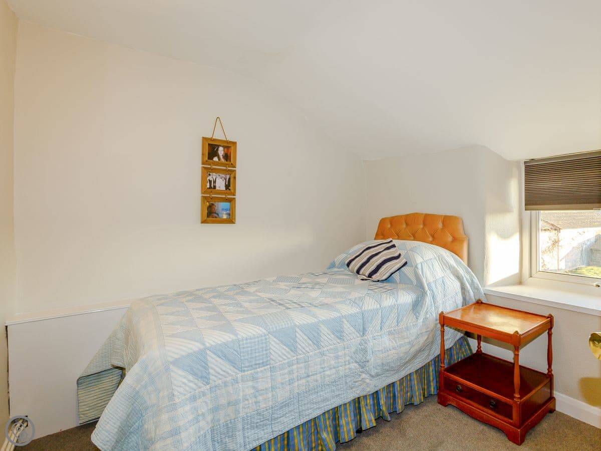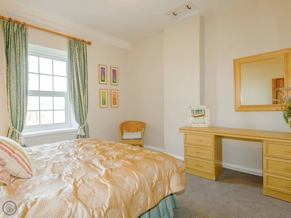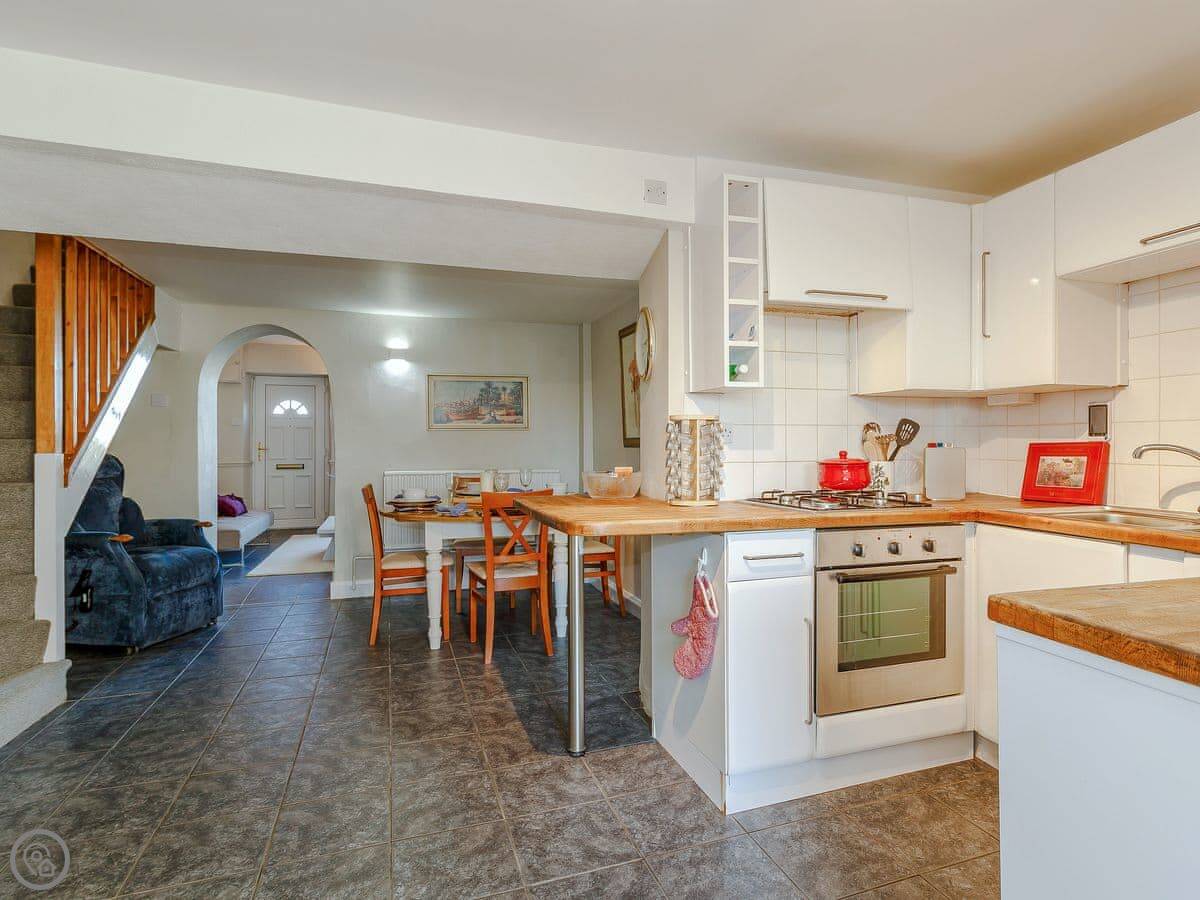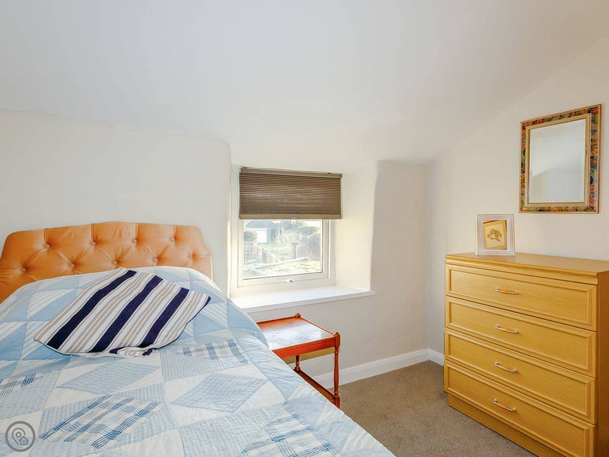 It sleeps four. Two proper double bedrooms and a bathroom upstairs, and the living room has a sofa bed if you need extra space. It's got a 4 Star rating, which means it's well looked after. The garden is enclosed and fully private. It's a good size.