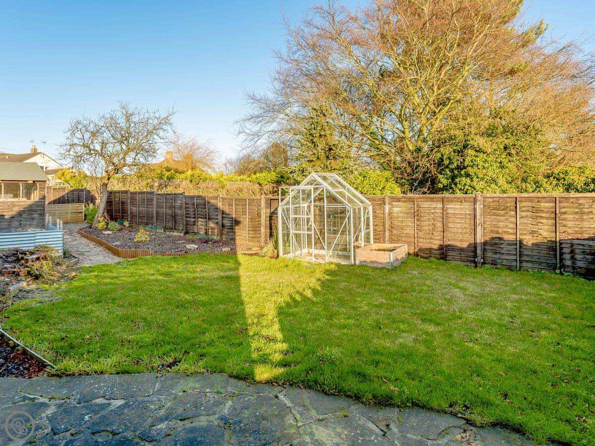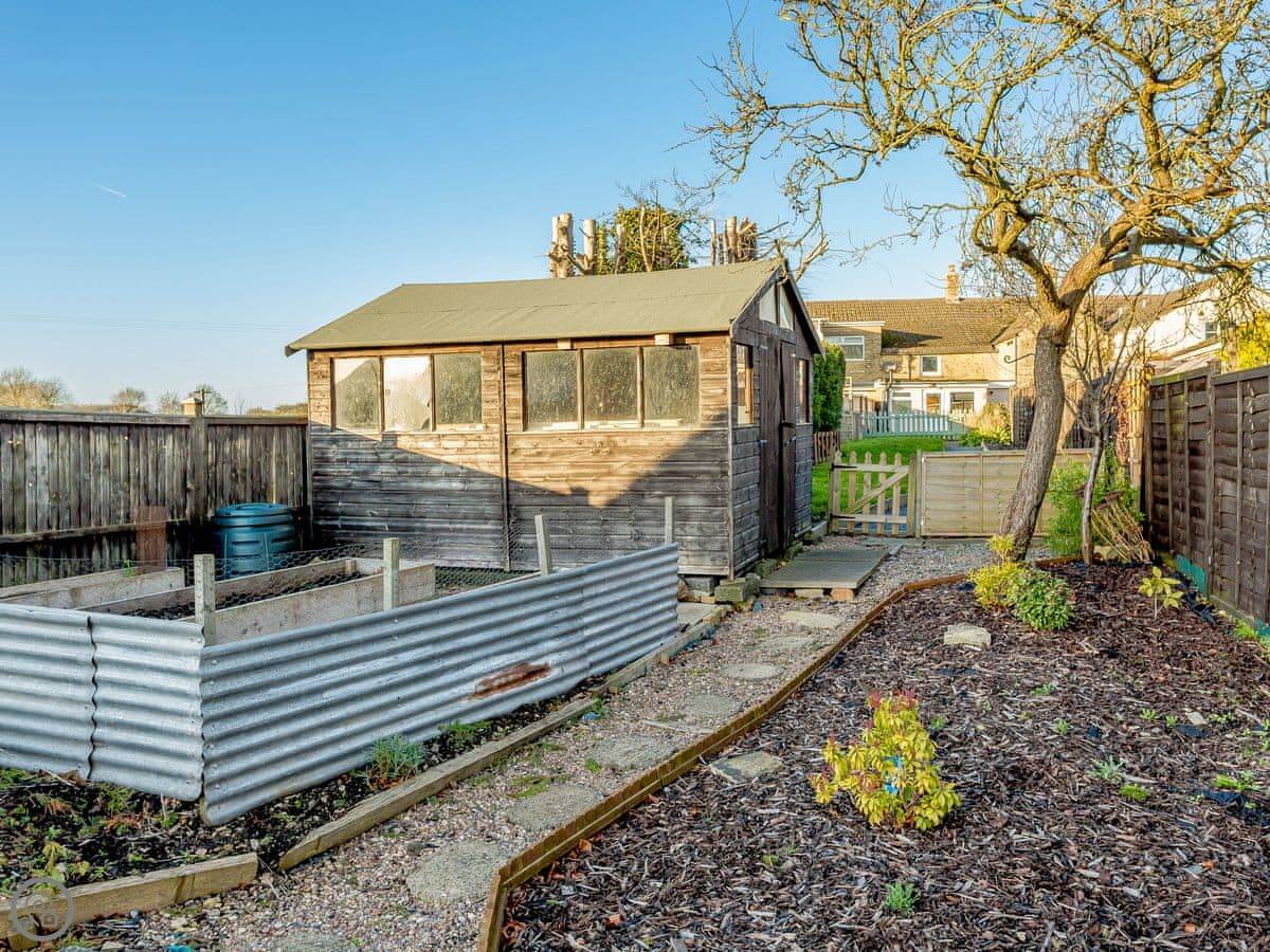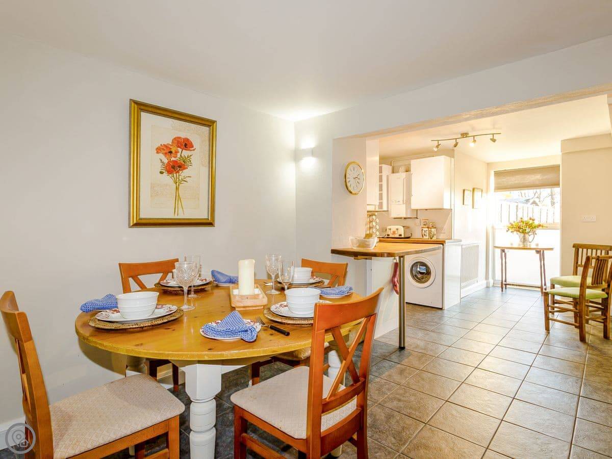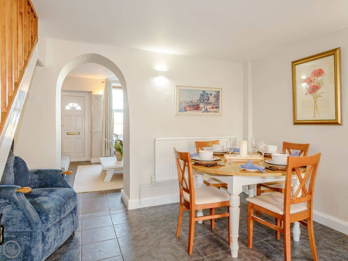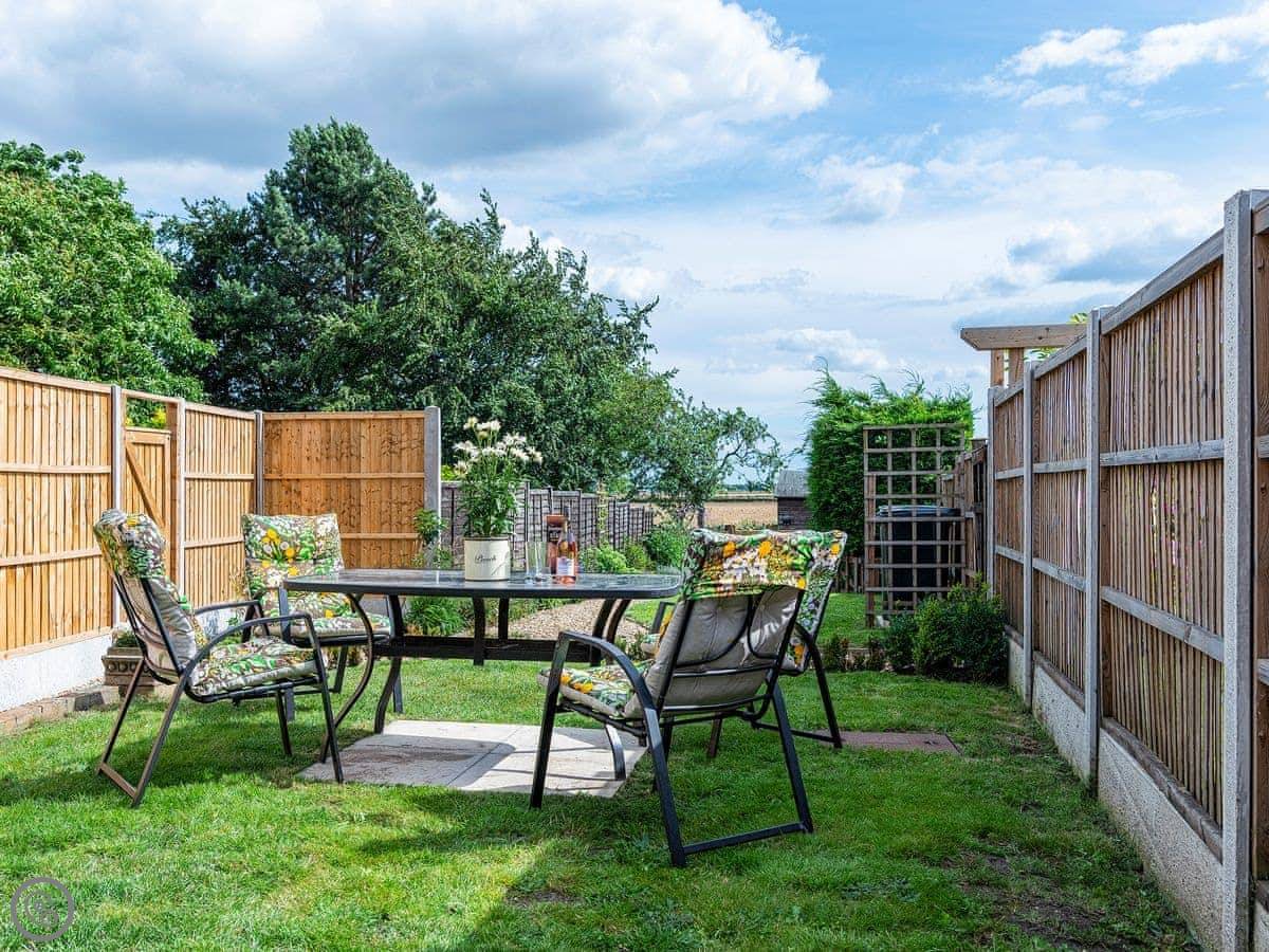 It sleeps four. Two proper double bedrooms and a bathroom upstairs, and the living room has a sofa bed if you need extra space. It's got a 4 Star rating, which means it's well looked after. The garden is enclosed and fully private. It's a good size.