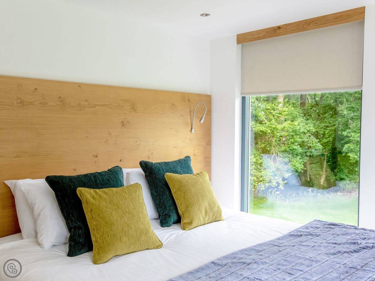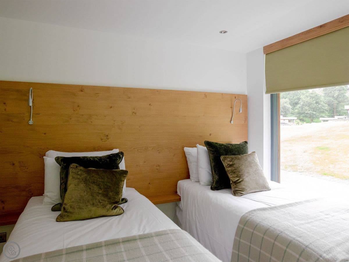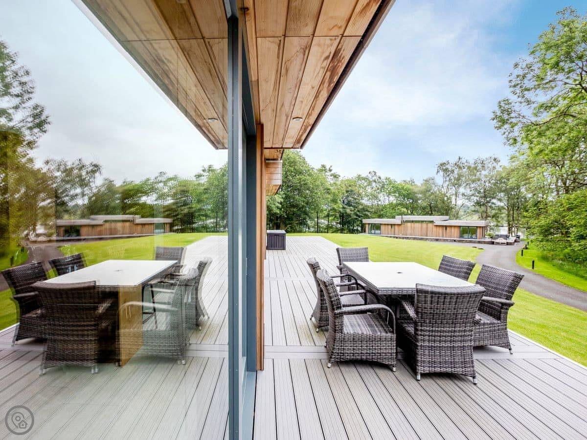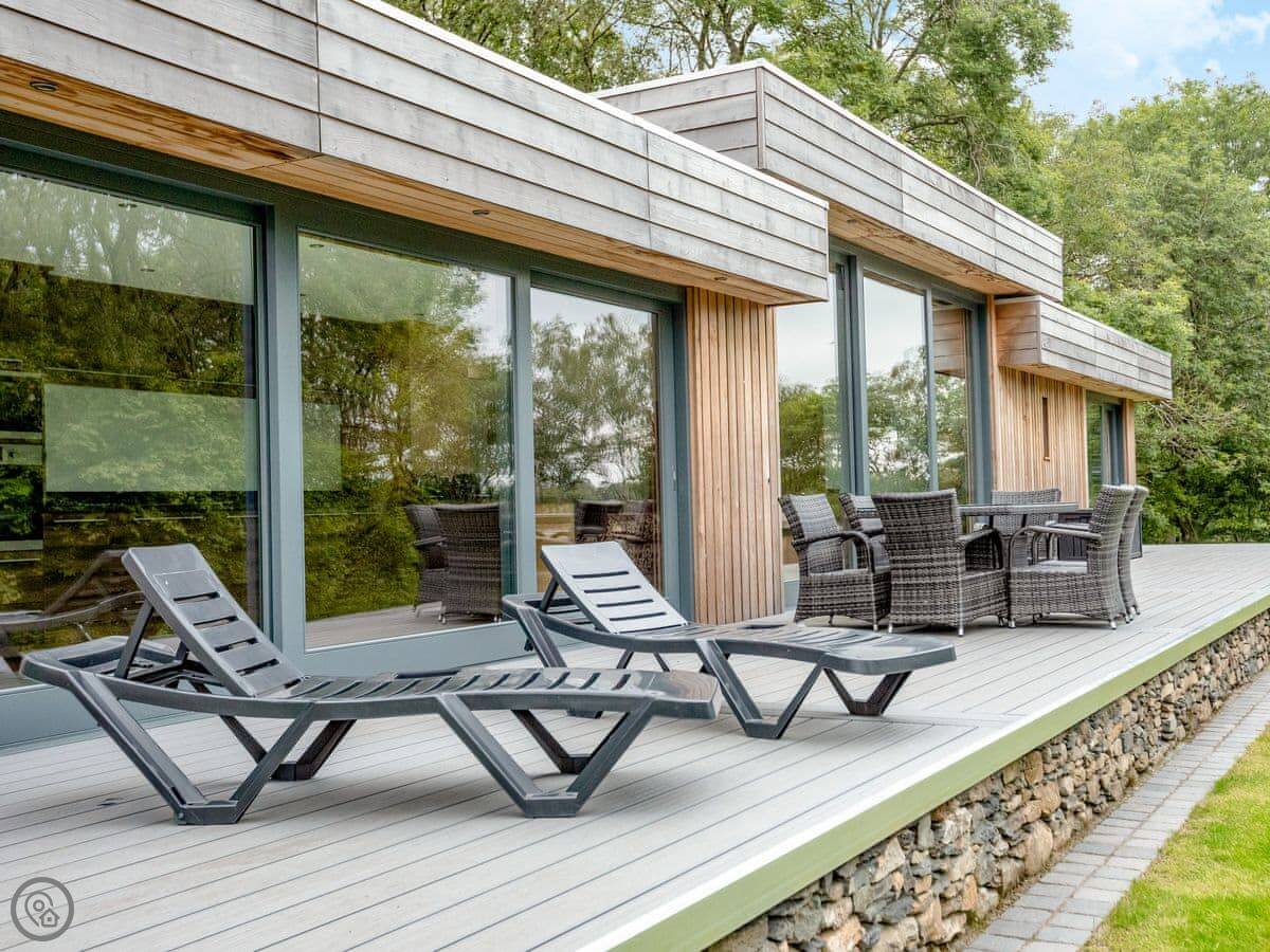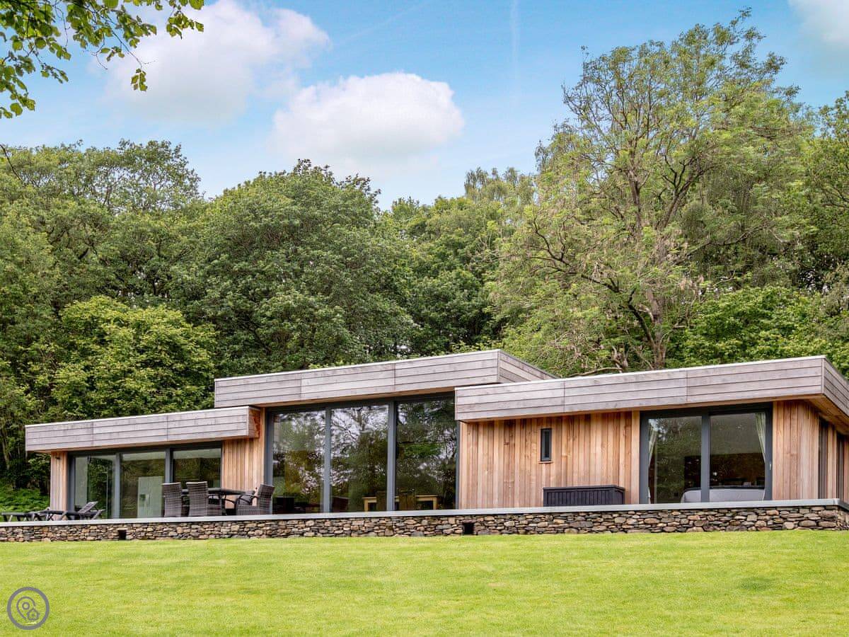 A truly magnificent architectural design Horse Spout lakestead is a detached lodge providing you the very best in holiday accommodation, it starts from the minute you enter the estate, driving past the beautiful Belted Galloway cattle as you head towards your holiday home. As you step in, you are greeted with a contemporary kitchen, fully equipped for all your needs and with views to die for, it will make cooking on your holiday that little more enjoyable! With floor to ceiling windows throughout the open plan living/dining area with the wood burner taking centre stage. From the living area there are two kingsize bedrooms and a twin bedroom, all with en-suite large showers and toilets. Horse Spout is close to the estate’s lake so as you sit on your balcony you can enjoy views to the front of the Lakestead, whilst the rear boasts a private hot tub overlooking the woodland. For those curious; a barn owl lives in the wood opposite and for this reason there is a commissioned painting of a barn owl for Horse Spout.
