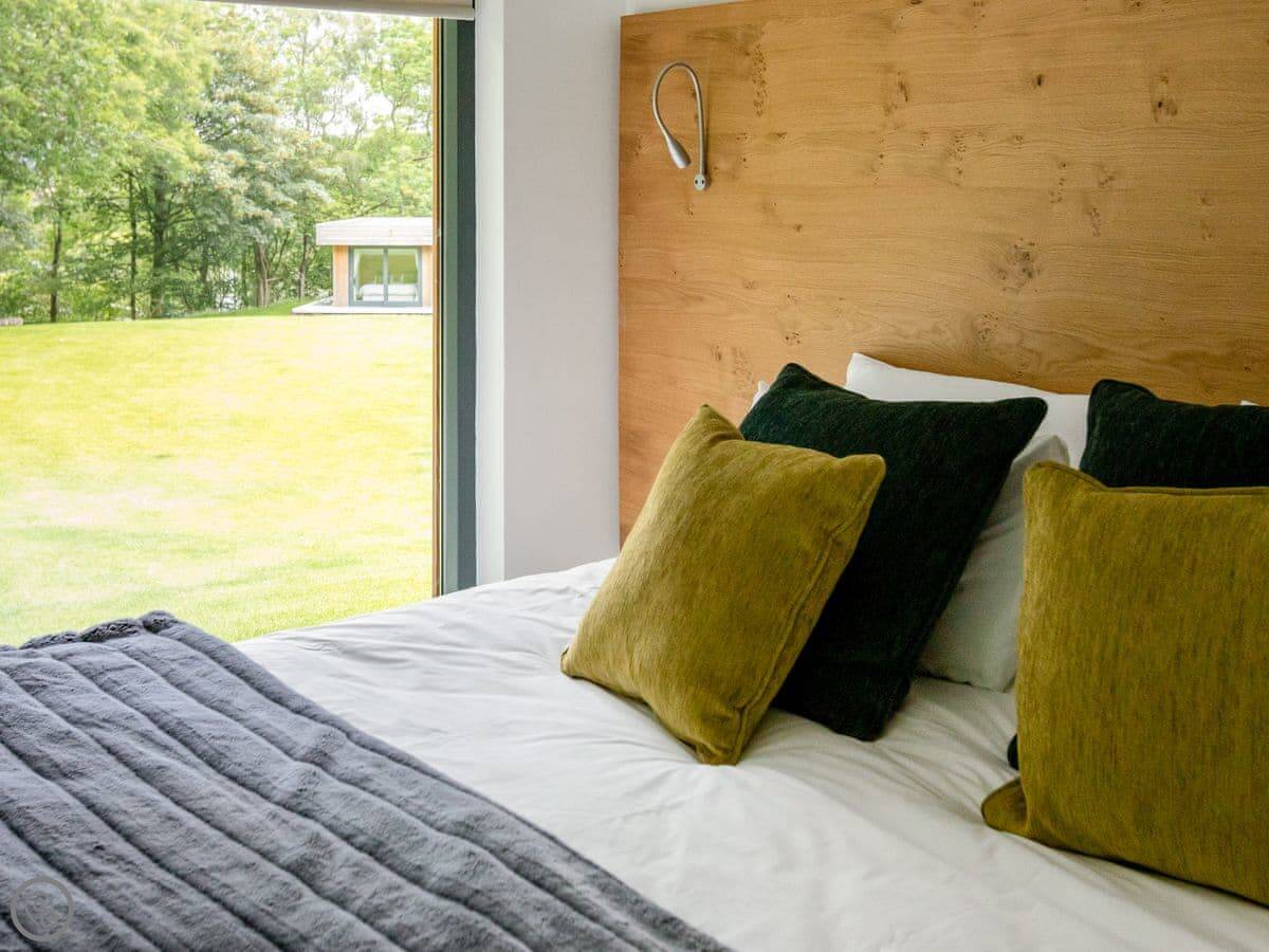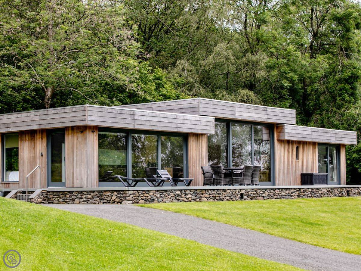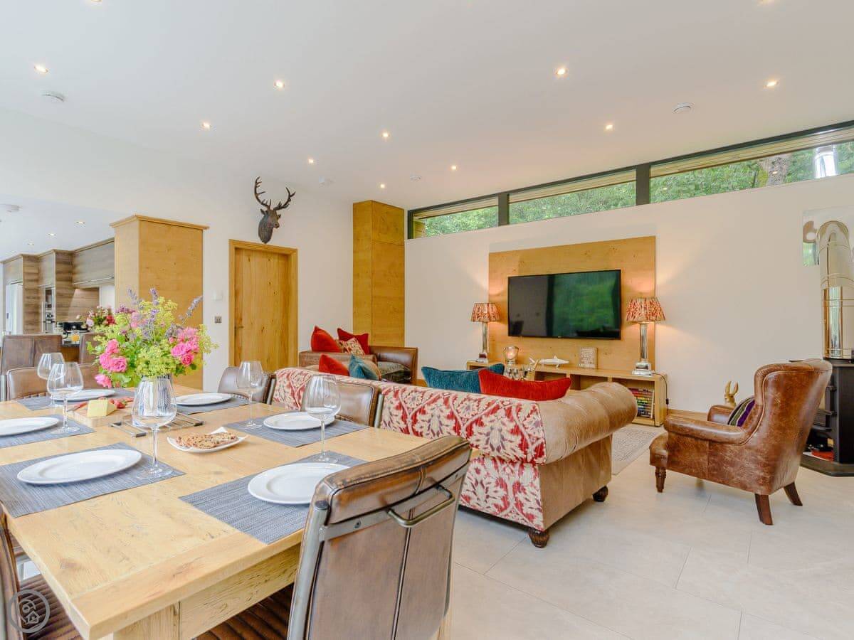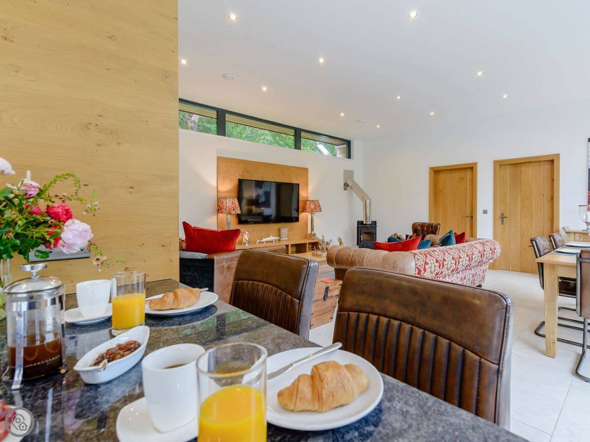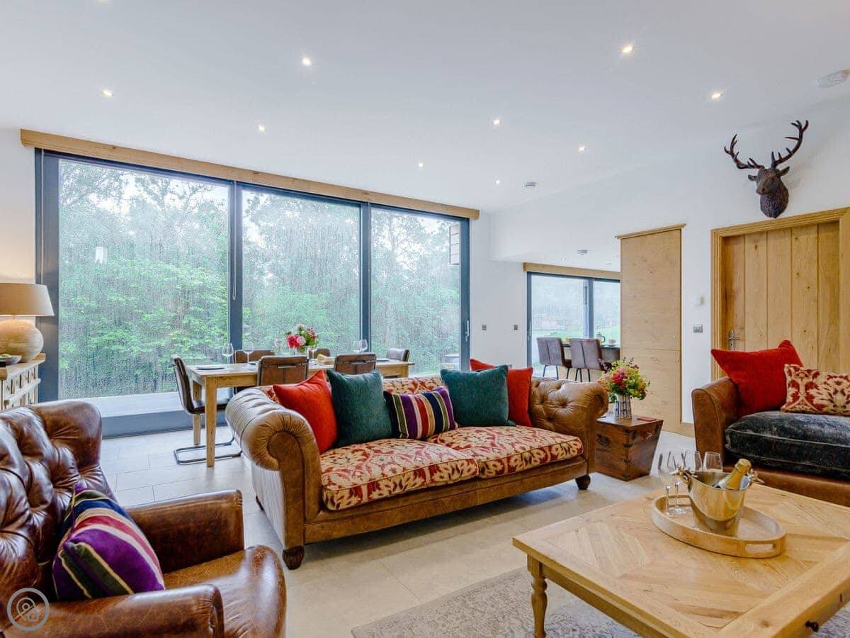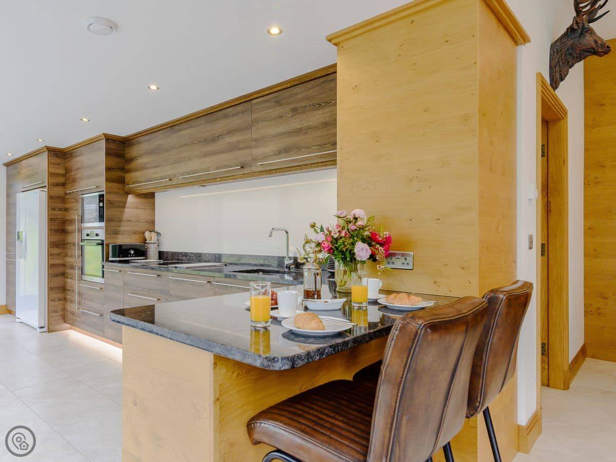 A truly magnificent architectural design Horse Spout lakestead is a detached lodge providing you the very best in holiday accommodation, it starts from the minute you enter the estate, driving past the beautiful Belted Galloway cattle as you head towards your holiday home. As you step in, you are greeted with a contemporary kitchen, fully equipped for all your needs and with views to die for, it will make cooking on your holiday that little more enjoyable! With floor to ceiling windows throughout the open plan living/dining area with the wood burner taking centre stage. From the living area there are two kingsize bedrooms and a twin bedroom, all with en-suite large showers and toilets. Horse Spout is close to the estate’s lake so as you sit on your balcony you can enjoy views to the front of the Lakestead, whilst the rear boasts a private hot tub overlooking the woodland. For those curious; a barn owl lives in the wood opposite and for this reason there is a commissioned painting of a barn owl for Horse Spout.