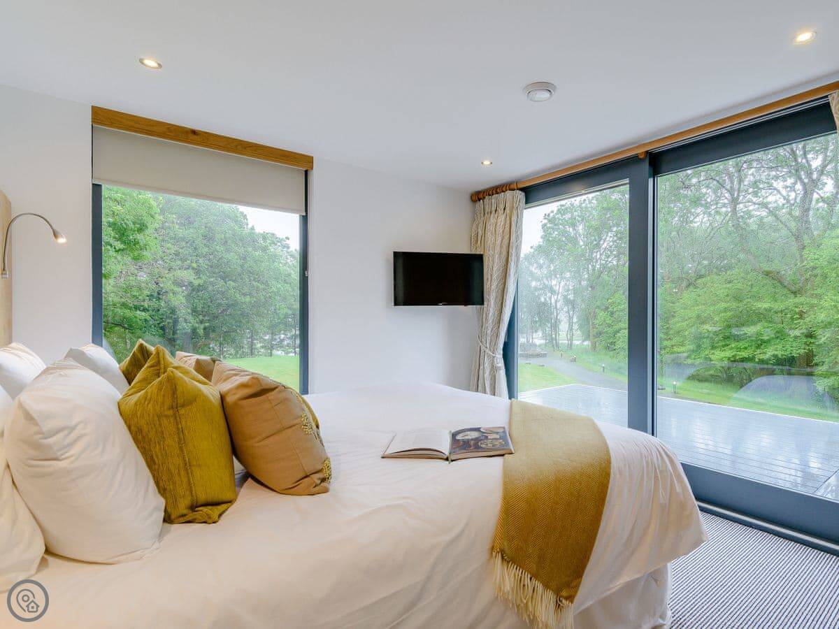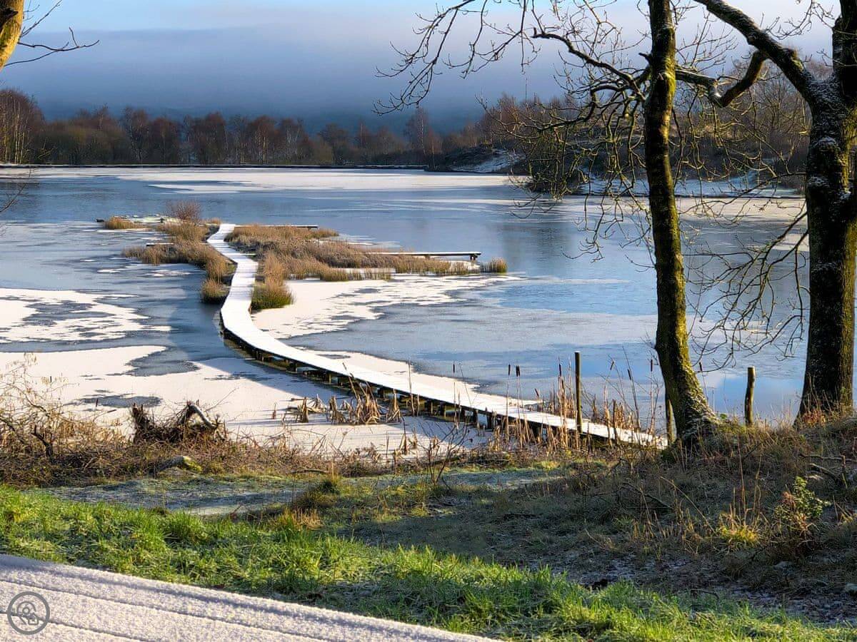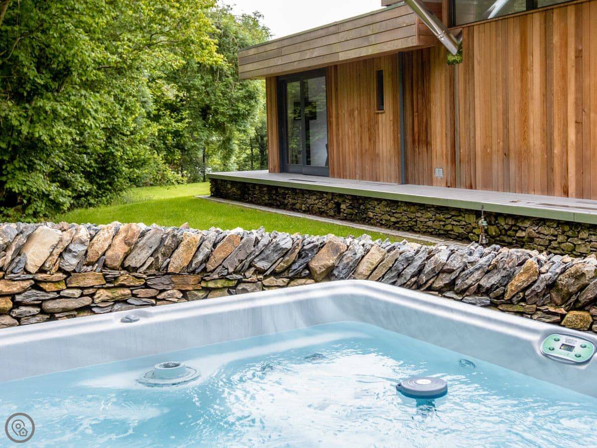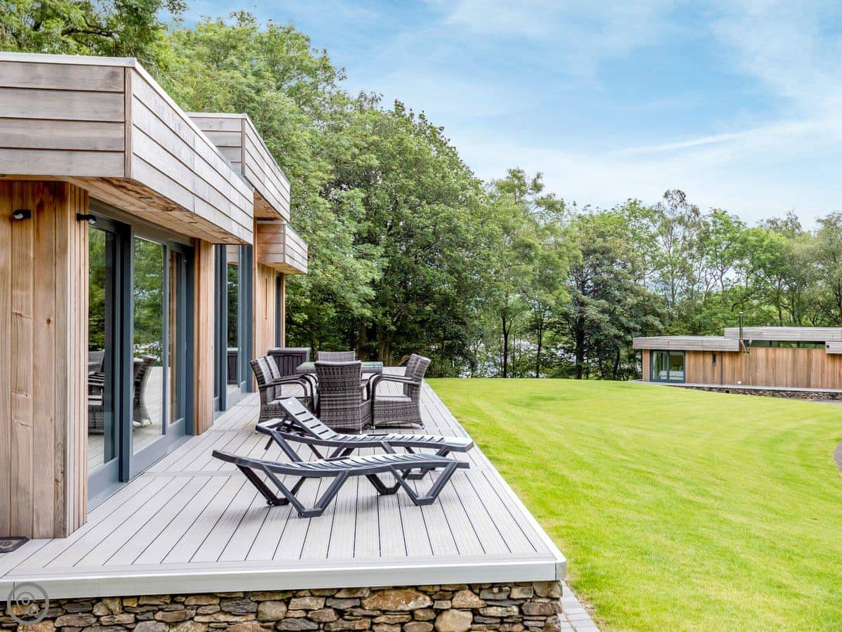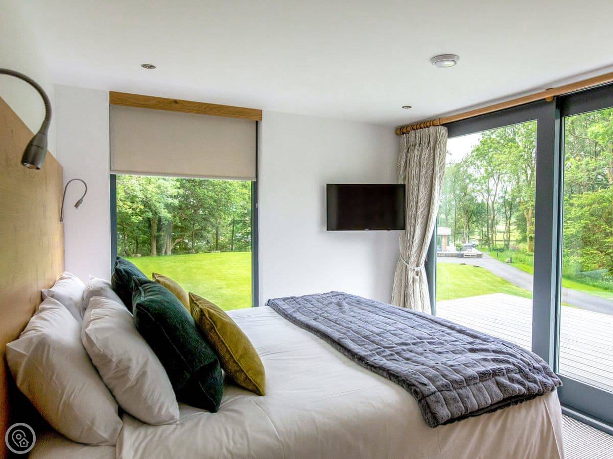 A truly magnificent architectural design Horse Spout lakestead is a detached lodge providing you the very best in holiday accommodation, it starts from the minute you enter the estate, driving past the beautiful Belted Galloway cattle as you head towards your holiday home. As you step in, you are greeted with a contemporary kitchen, fully equipped for all your needs and with views to die for, it will make cooking on your holiday that little more enjoyable! With floor to ceiling windows throughout the open plan living/dining area with the wood burner taking centre stage. From the living area there are two kingsize bedrooms and a twin bedroom, all with en-suite large showers and toilets. Horse Spout is close to the estate’s lake so as you sit on your balcony you can enjoy views to the front of the Lakestead, whilst the rear boasts a private hot tub overlooking the woodland. For those curious; a barn owl lives in the wood opposite and for this reason there is a commissioned painting of a barn owl for Horse Spout.