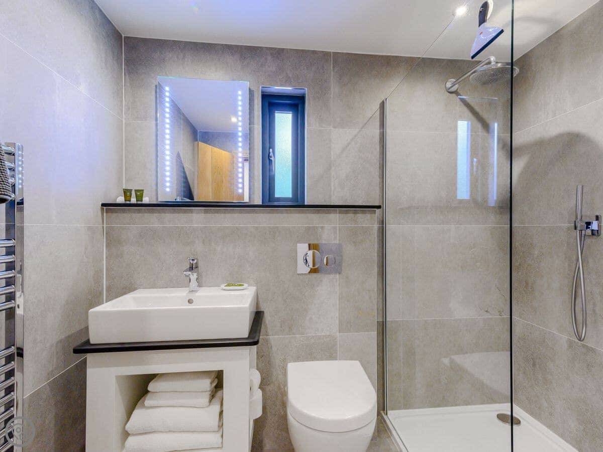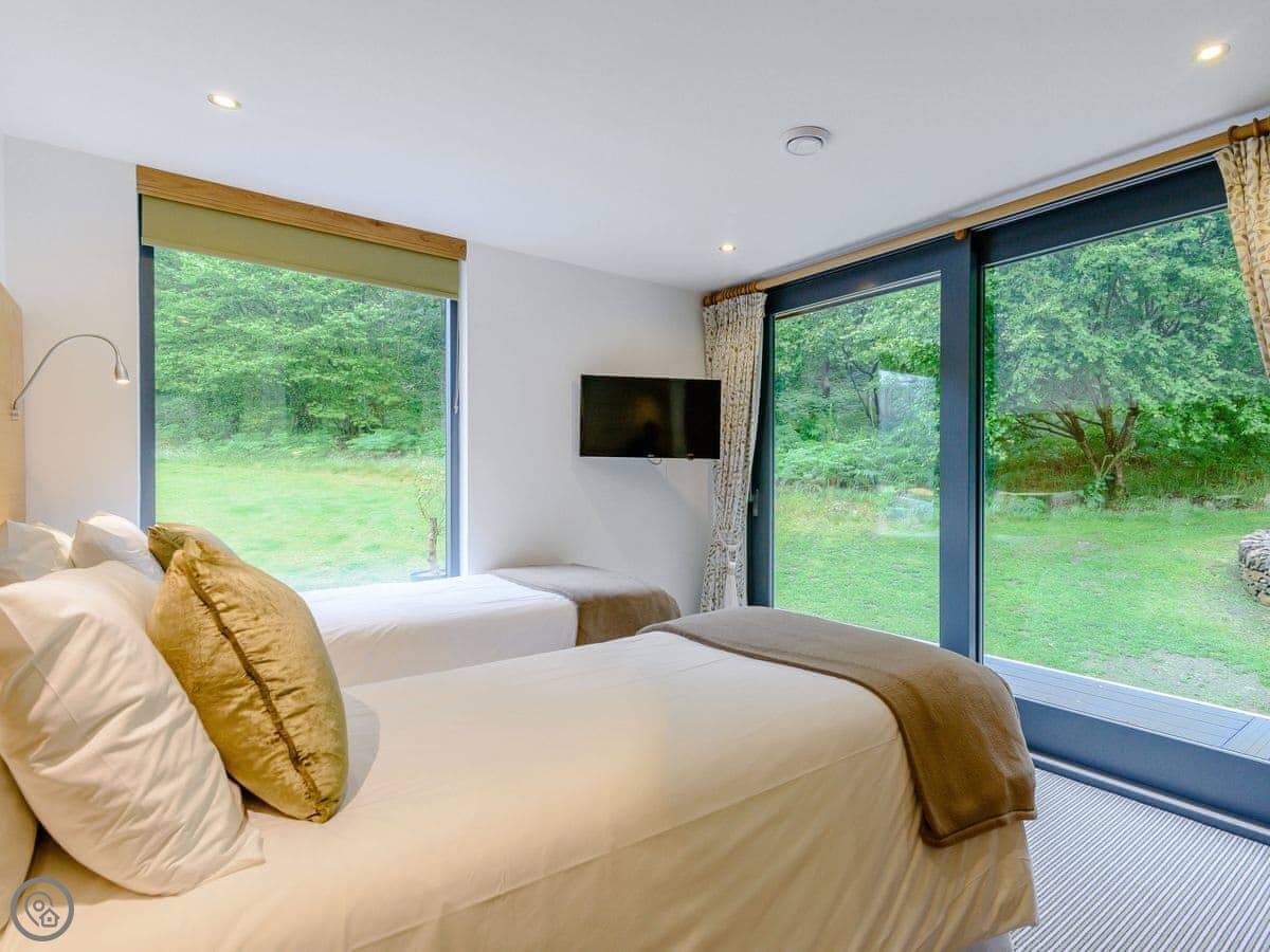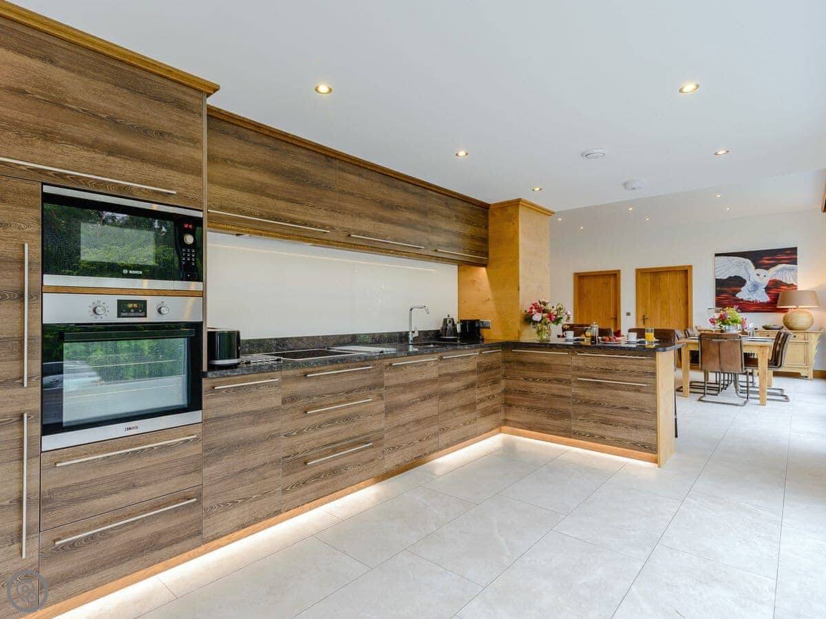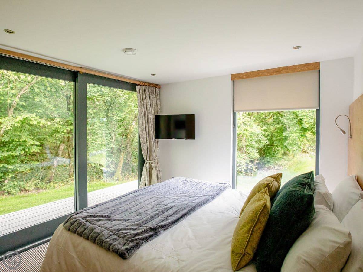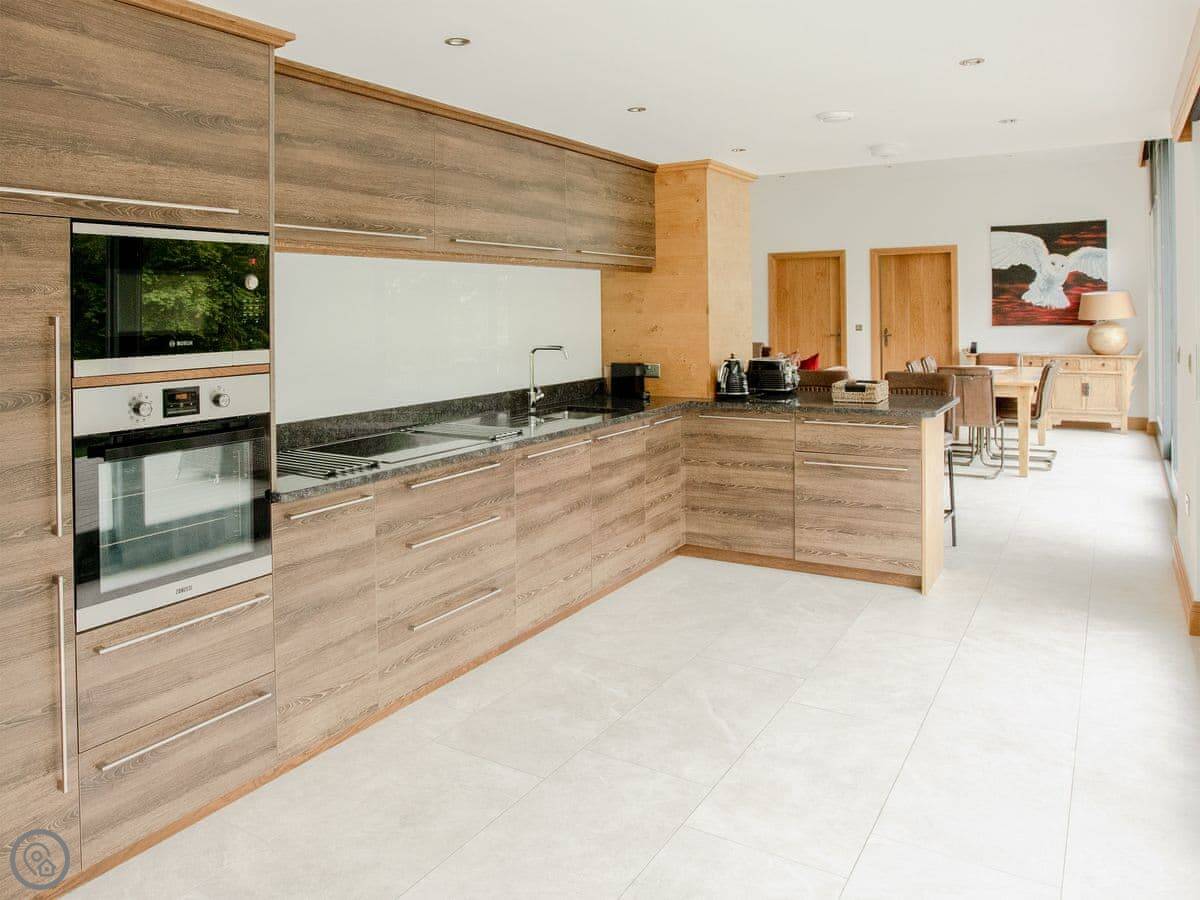 A truly magnificent architectural design Horse Spout lakestead is a detached lodge providing you the very best in holiday accommodation, it starts from the minute you enter the estate, driving past the beautiful Belted Galloway cattle as you head towards your holiday home. As you step in, you are greeted with a contemporary kitchen, fully equipped for all your needs and with views to die for, it will make cooking on your holiday that little more enjoyable! With floor to ceiling windows throughout the open plan living/dining area with the wood burner taking centre stage. From the living area there are two kingsize bedrooms and a twin bedroom, all with en-suite large showers and toilets. Horse Spout is close to the estate’s lake so as you sit on your balcony you can enjoy views to the front of the Lakestead, whilst the rear boasts a private hot tub overlooking the woodland. For those curious; a barn owl lives in the wood opposite and for this reason there is a commissioned painting of a barn owl for Horse Spout.