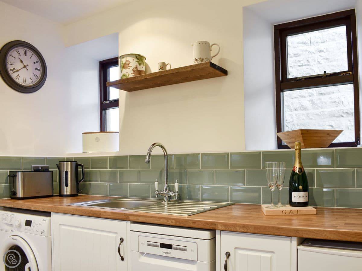 The living room has a wood burner, which is nice in the colder months. There's a Smart TV with satellite and a Blu-ray player. The kitchen is a decent size with a dishwasher and washing machine. Wi-Fi is included.