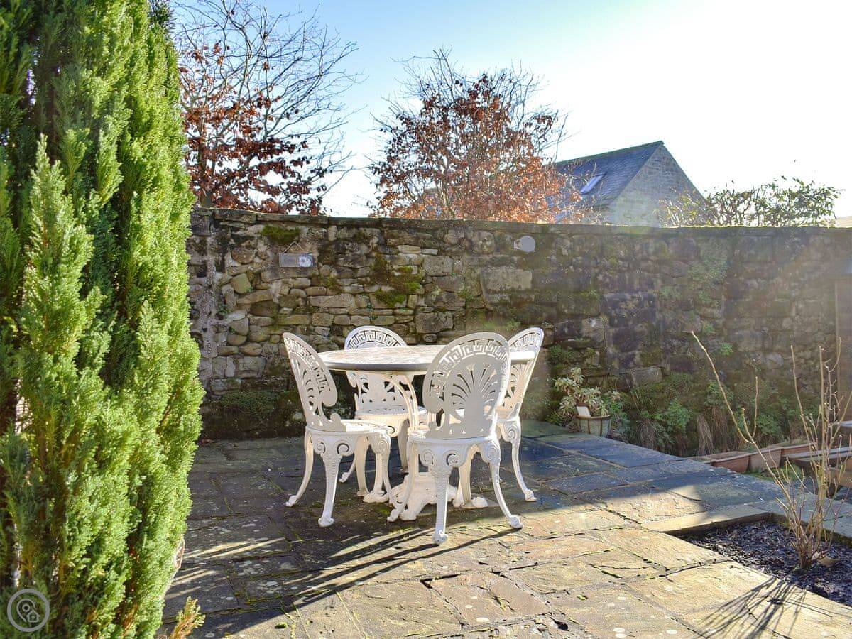 Outside, there's a small terraced area with a table and chairs, and you can use a barbecue. It's a shared terrace with the neighbouring cottages, but it's arranged so you have your own spot.