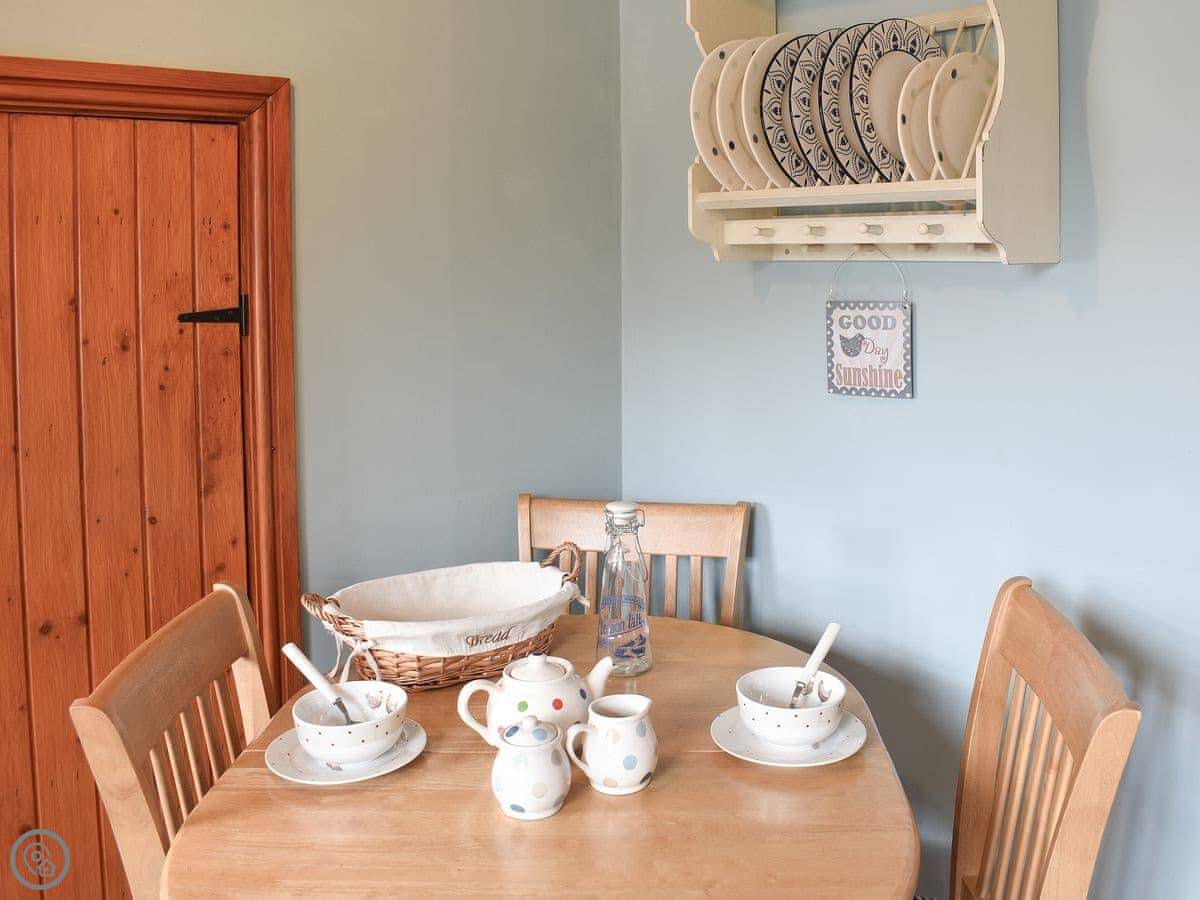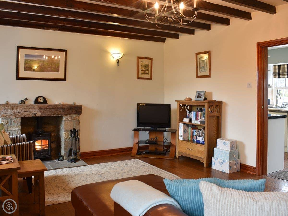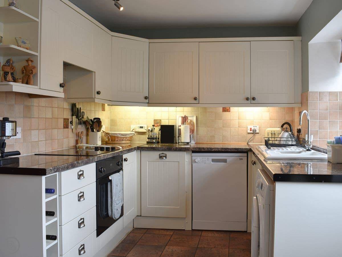 It's got a 4 Star rating. That means it's comfortable and well-equipped, not just basic. There's a wood burner in the living room, which is cosy. The kitchen has a dishwasher and washing machine. Bedding and towels are included.