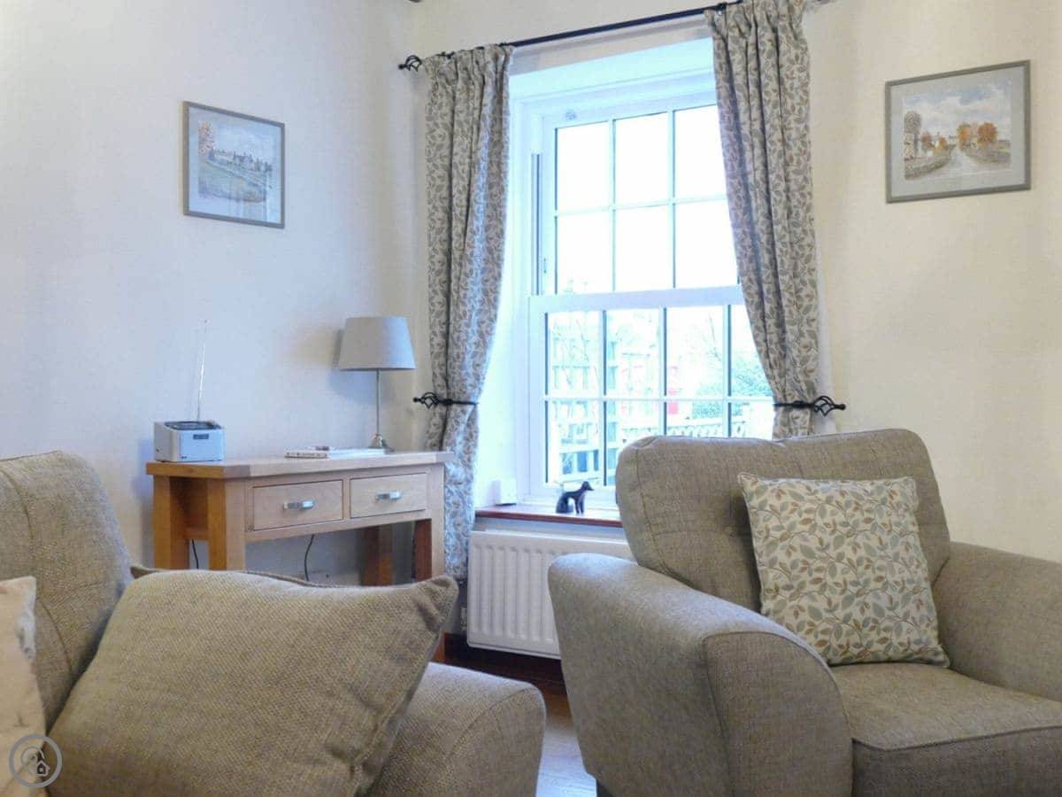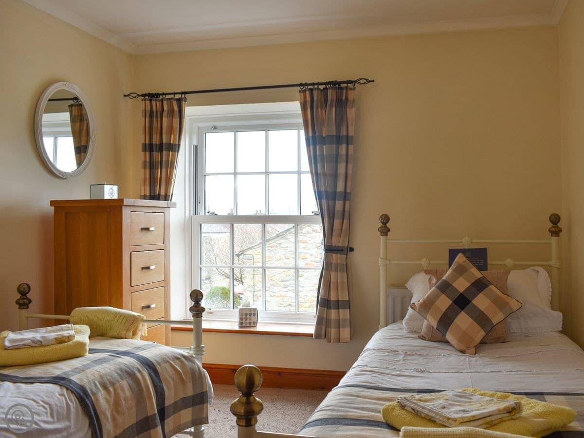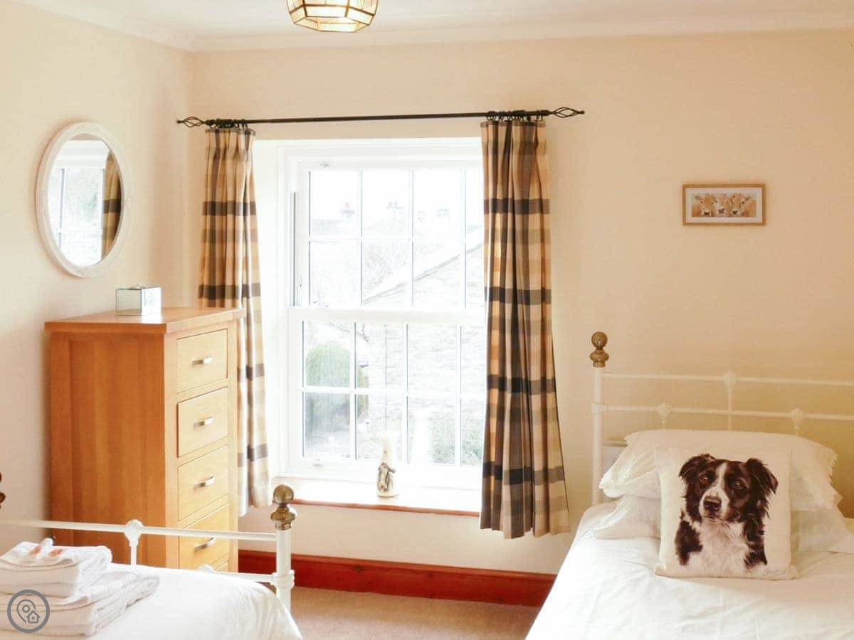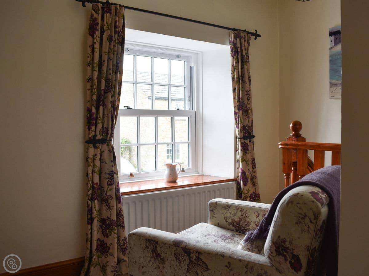 This is Sweet Pea Cottage, in Redmire. It's a terraced cottage, one in a row. It sleeps four, with two bedrooms upstairs – one double and one twin – and one bathroom.