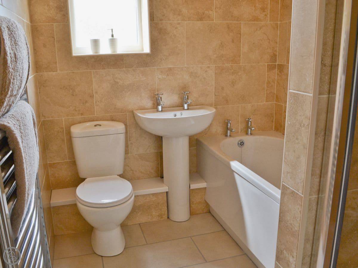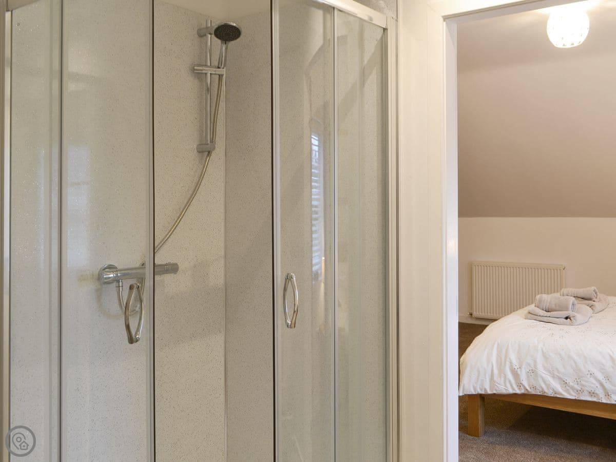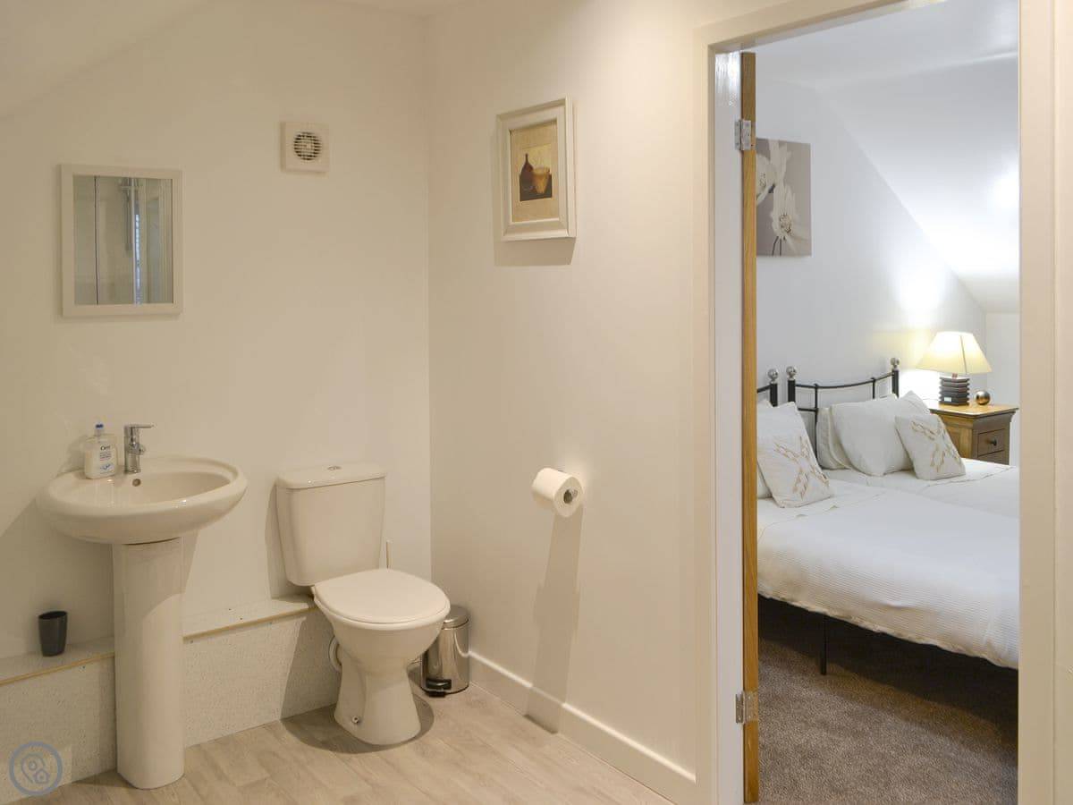 It sleeps eight in four bedrooms. There are three bathrooms, which is handy for a group that size. Two of the bedrooms are on the ground floor. It's a 4 Star place, so it's comfortable and well-equipped. Everything is included, like bedding and towels.