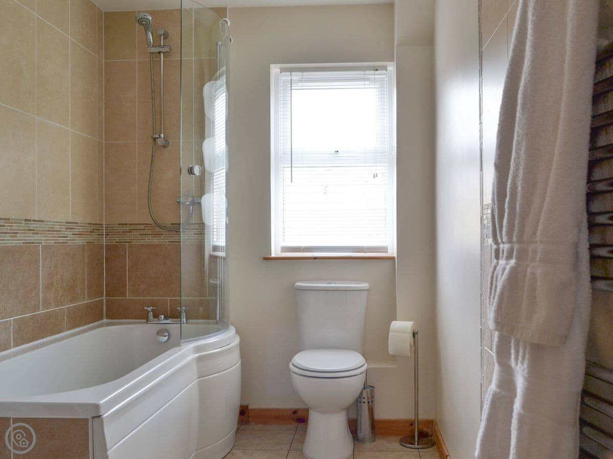 It sleeps six. Three bedrooms, two bathrooms. It's got a 4 Star rating. The main bedroom is on the ground floor, with an en-suite shower room. The other two bedrooms and a family bathroom are down the hall. The stairs are fine.
