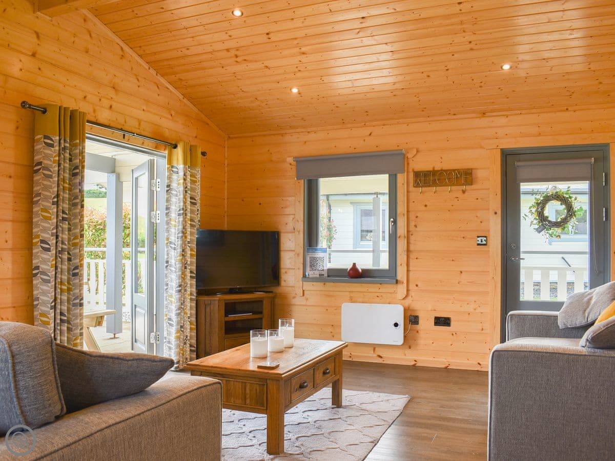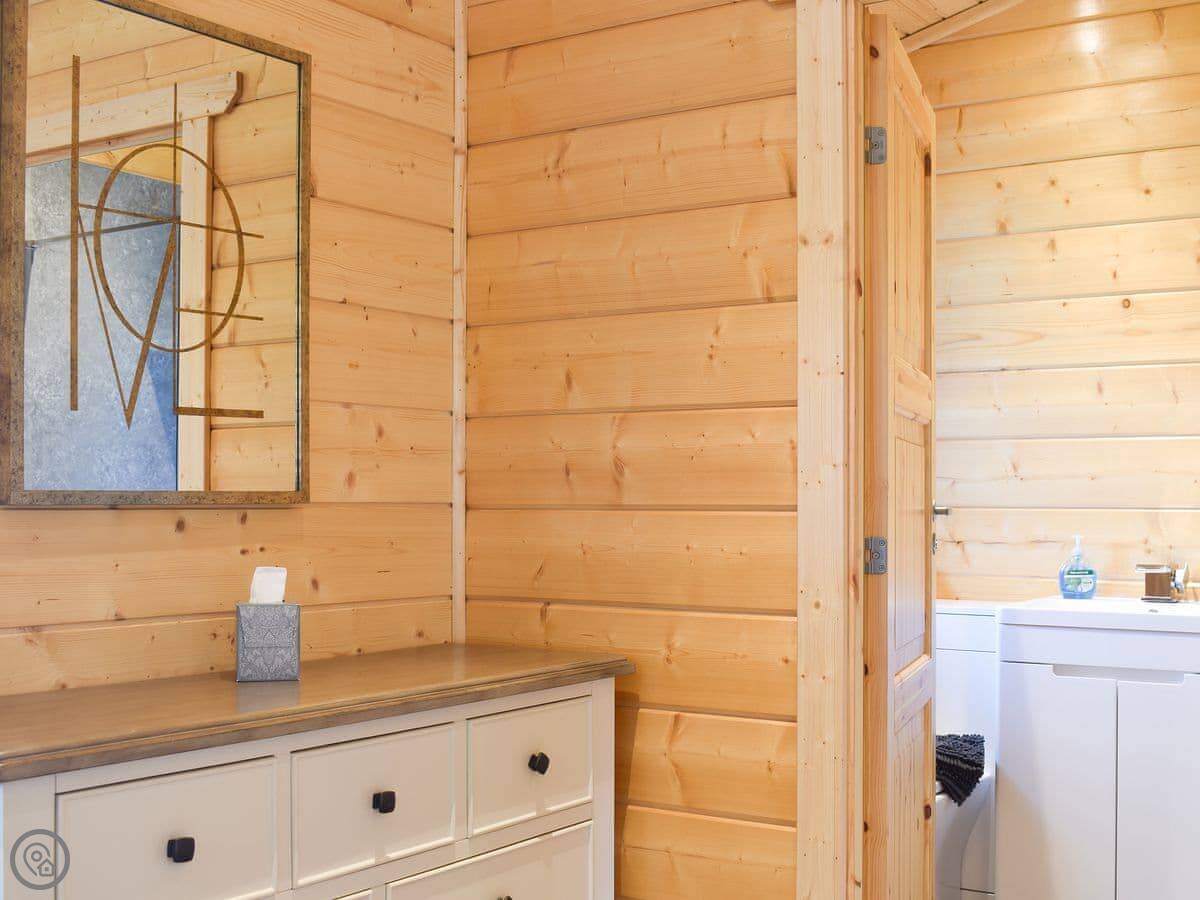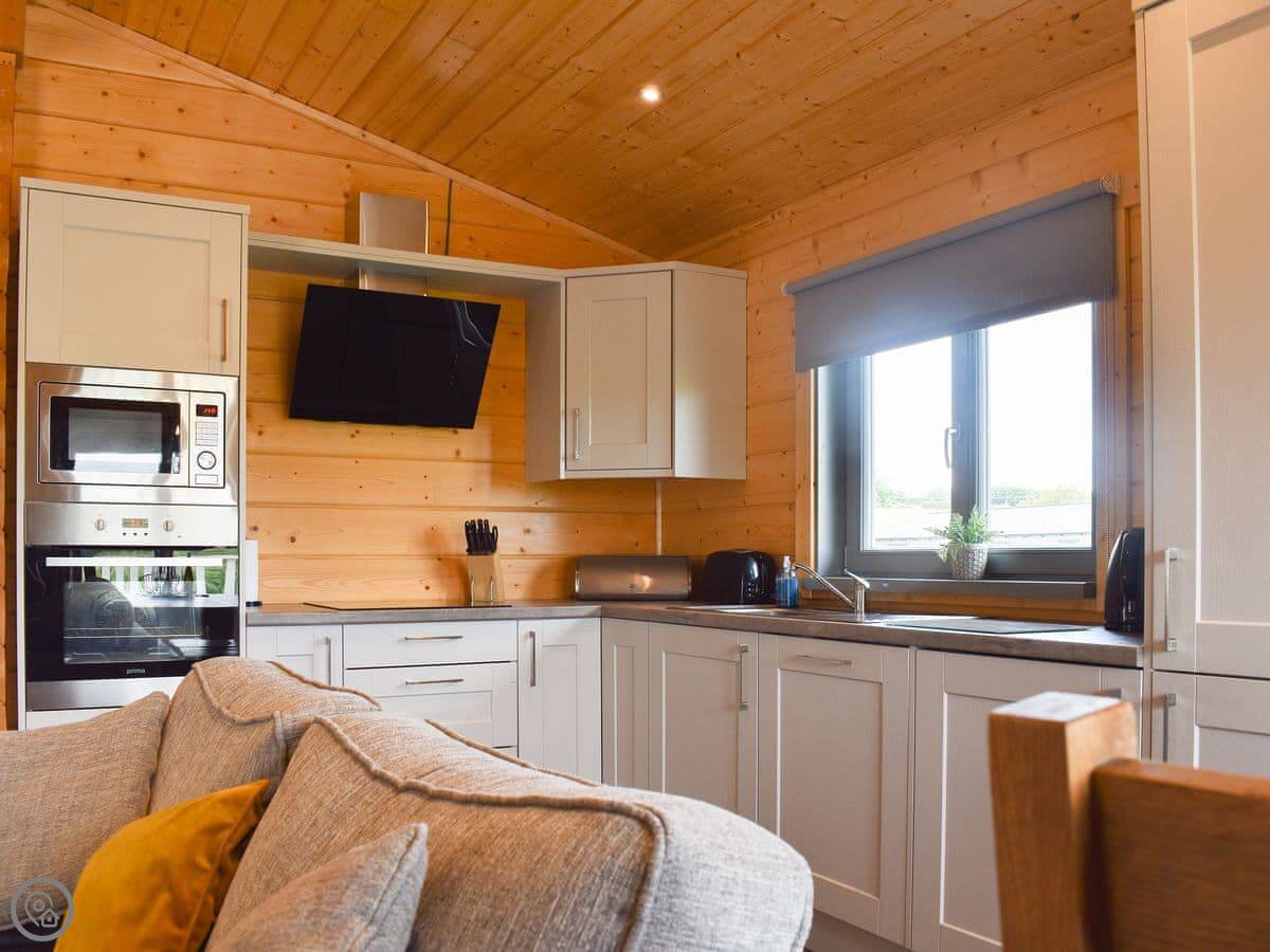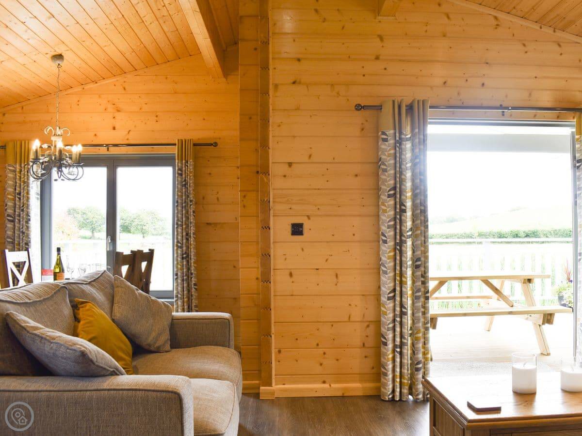 The lodge is open plan. There's a dishwasher and a washing machine. Bedding and towels are included. You can park two cars right outside.