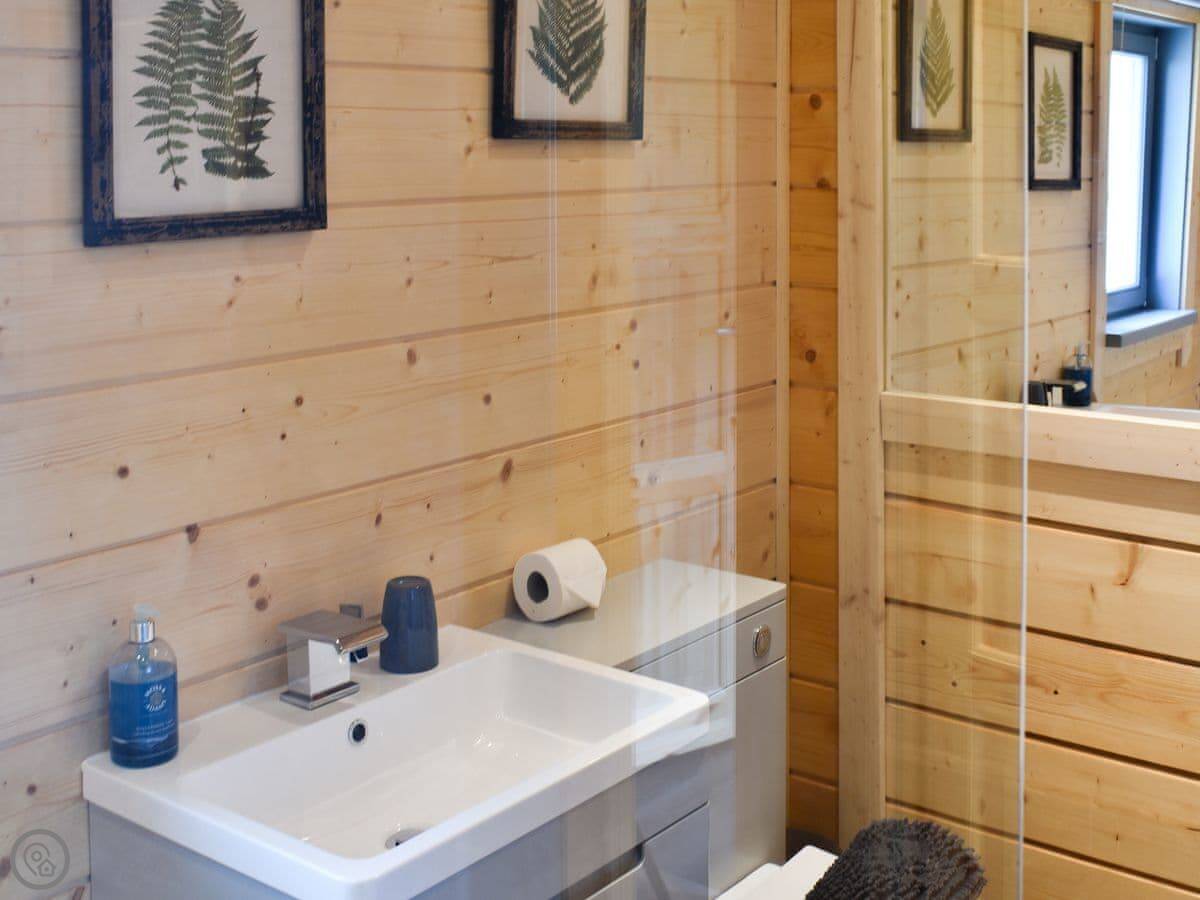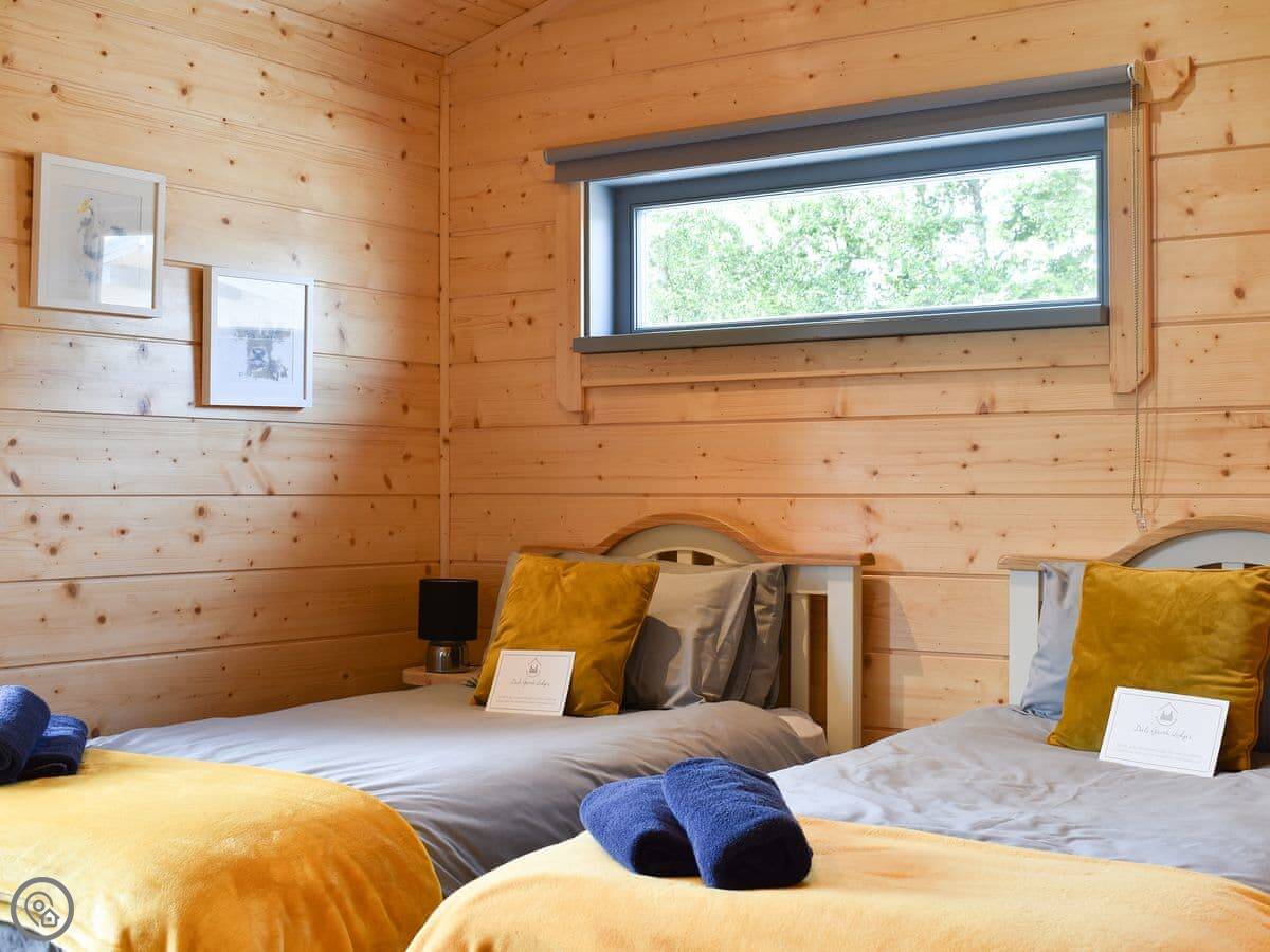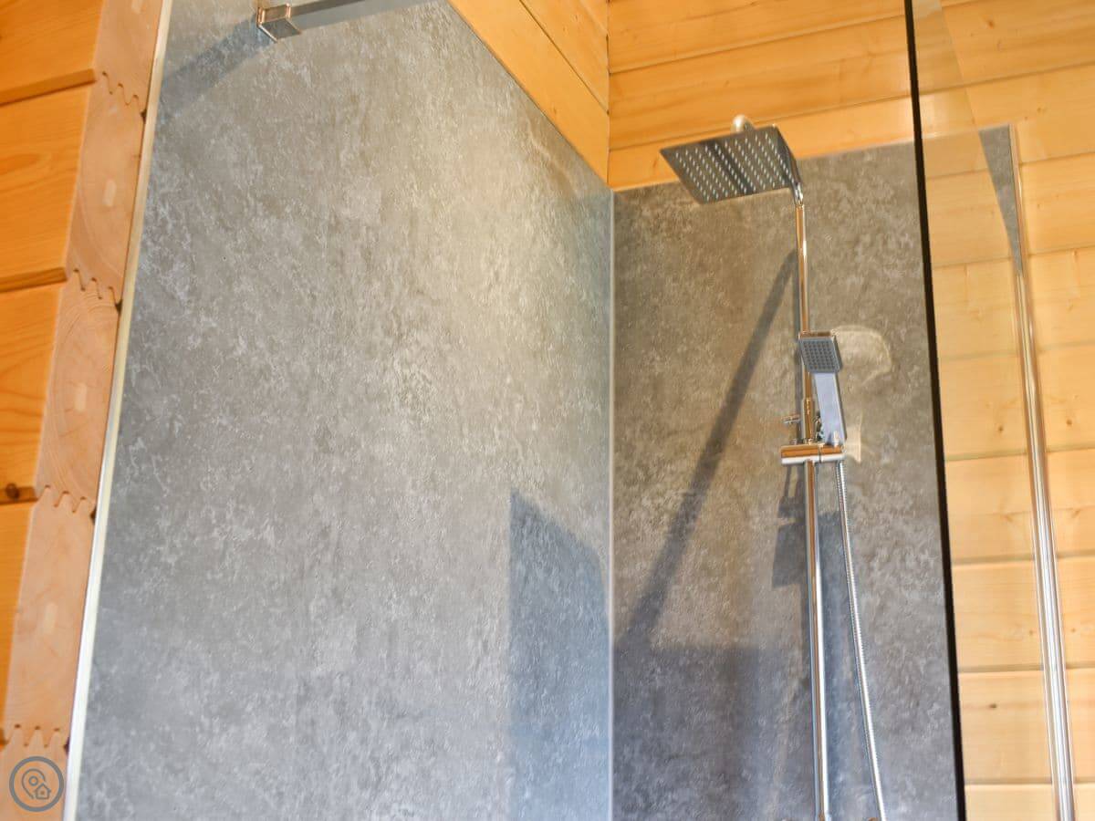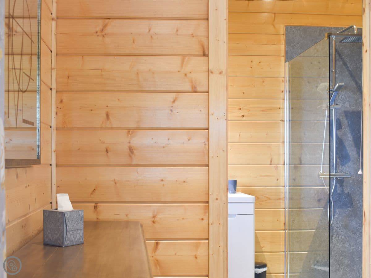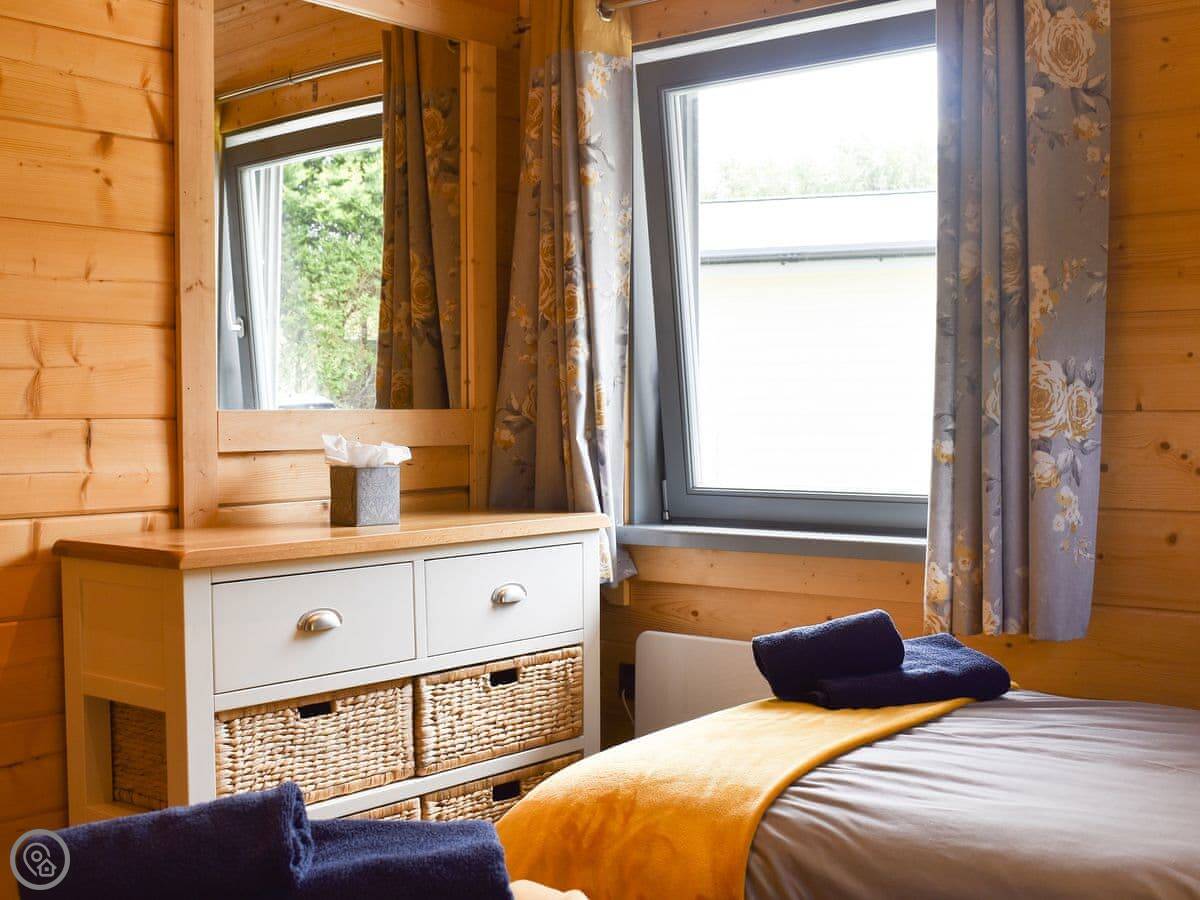 The lodge is open plan. There's a dishwasher and a washing machine. Bedding and towels are included. You can park two cars right outside.
