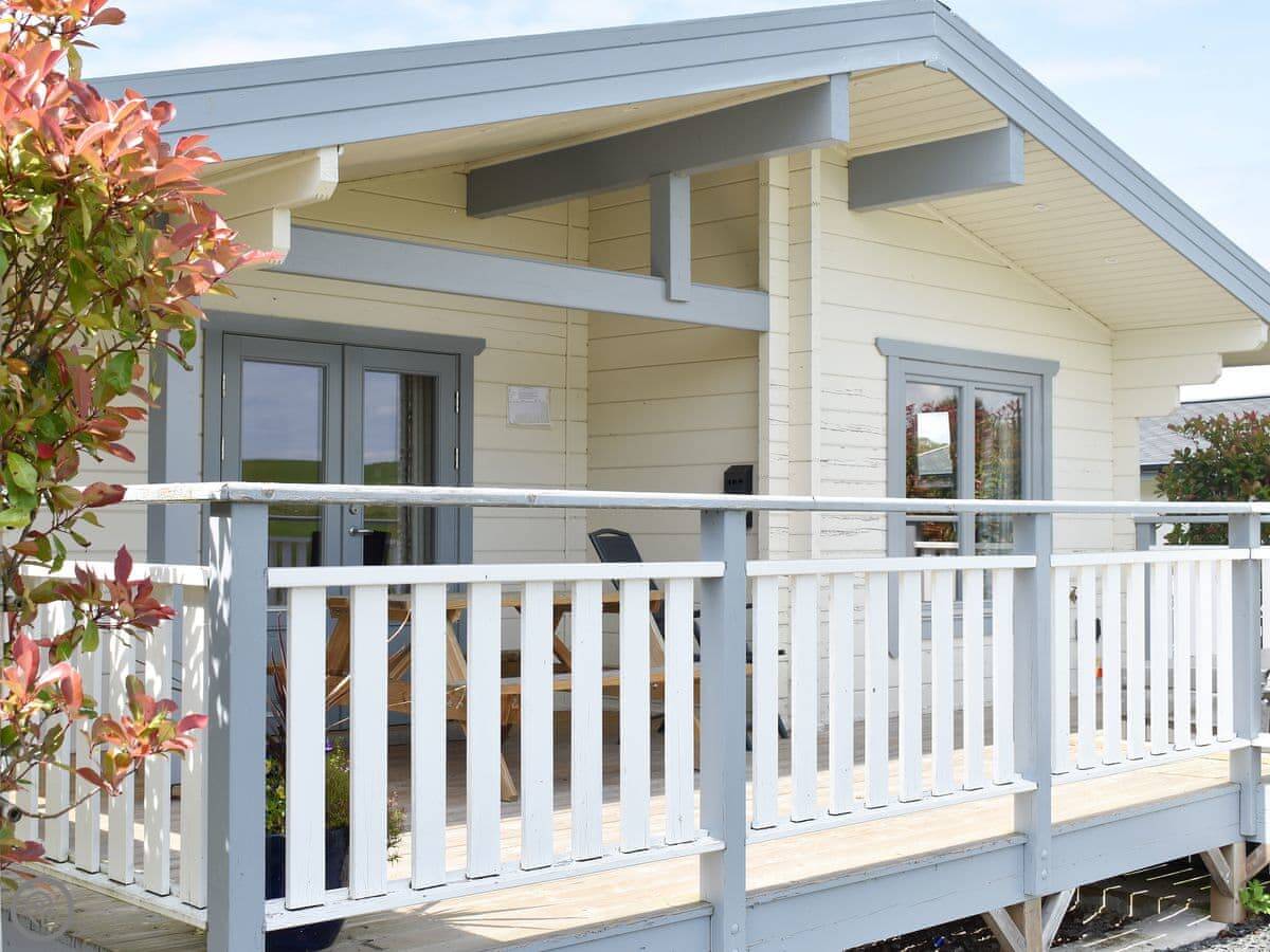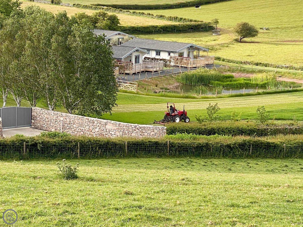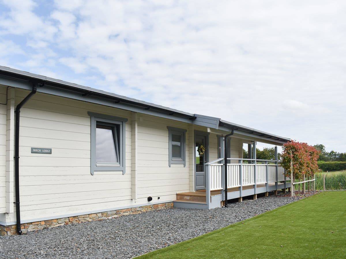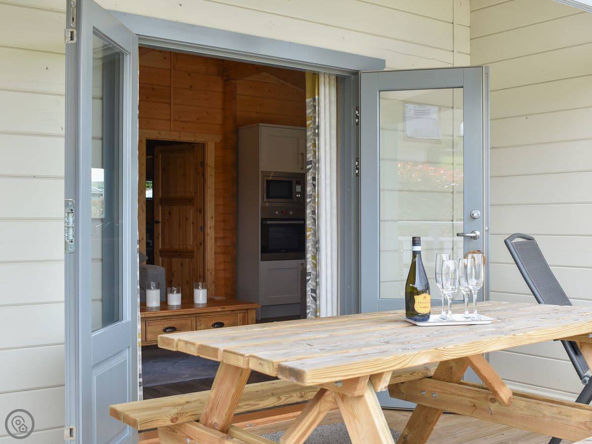 Birch Lodge is one of five lodges on a site in Lindal, near Ulverston. It's detached. You get your own little terrace and a hot tub. It looks out over the garden they've done around the site.