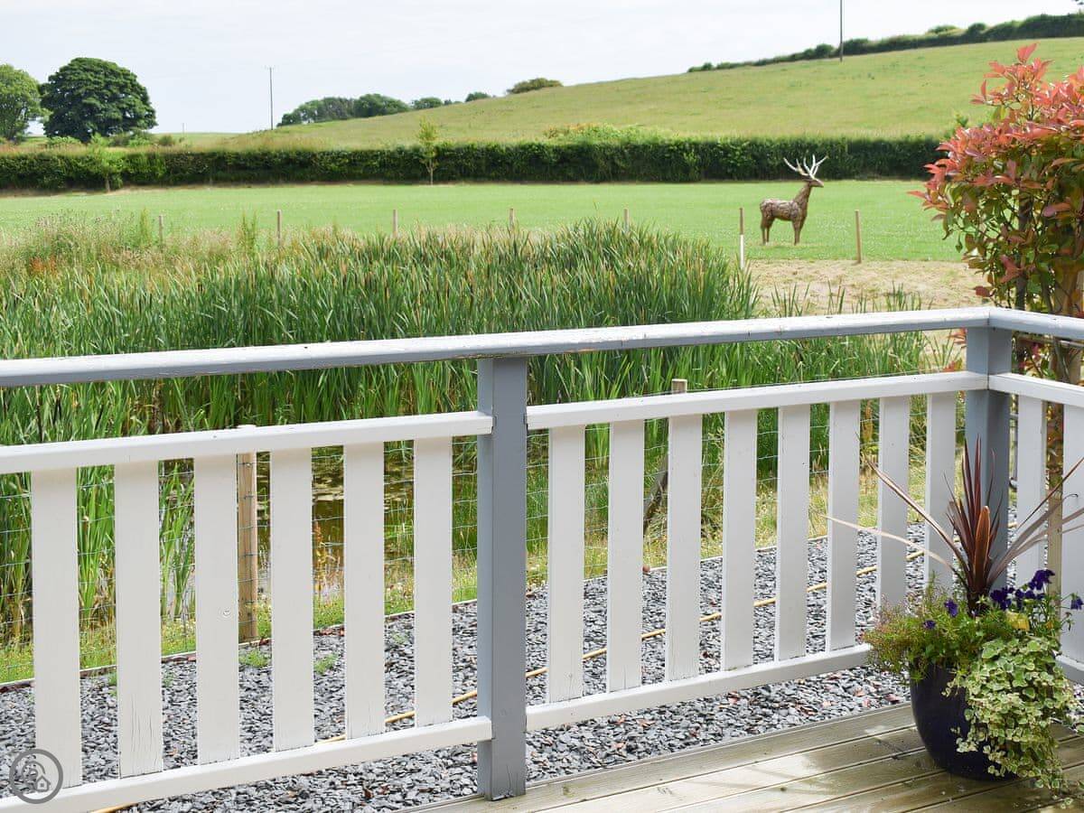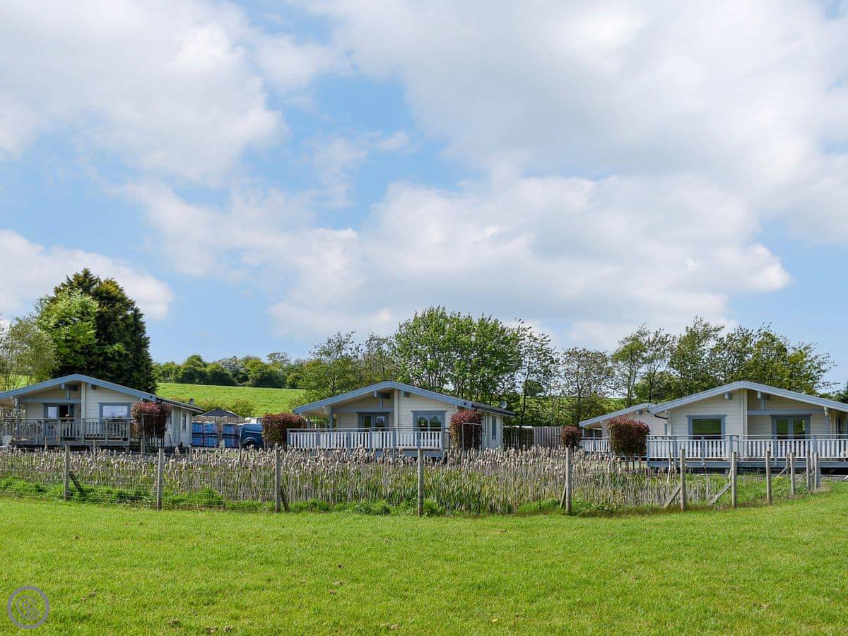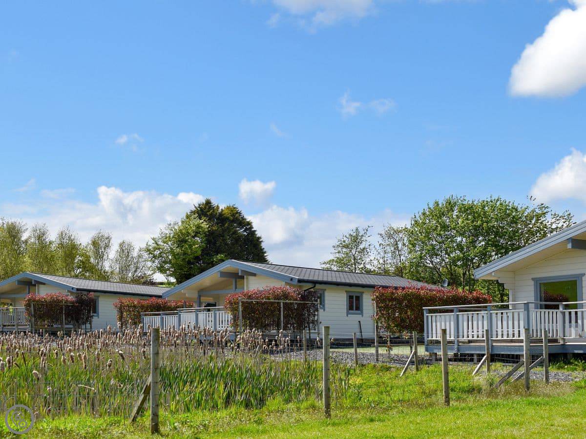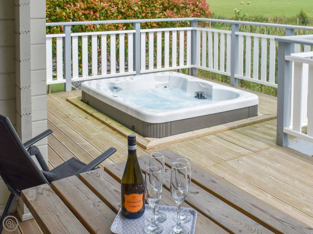 Birch Lodge is one of five lodges on a site in Lindal, near Ulverston. It's detached. You get your own little terrace and a hot tub. It looks out over the garden they've done around the site.
