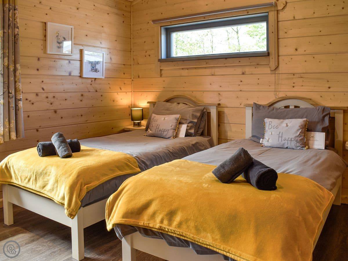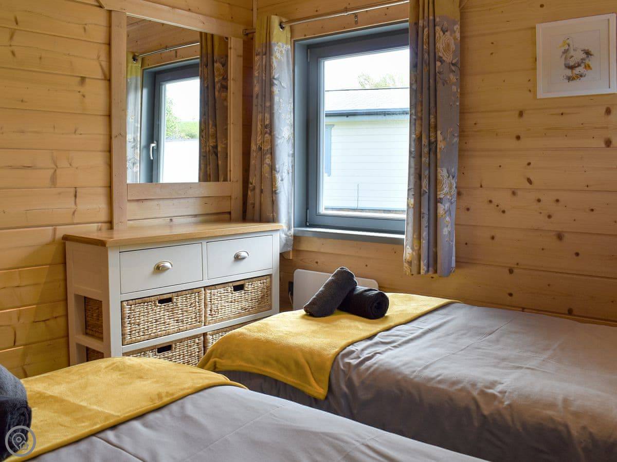 It sleeps four, all on the ground floor. Two bedrooms: one double, one twin. Two bathrooms, both with walk-in showers. It's a 4 Star, so it's well equipped.