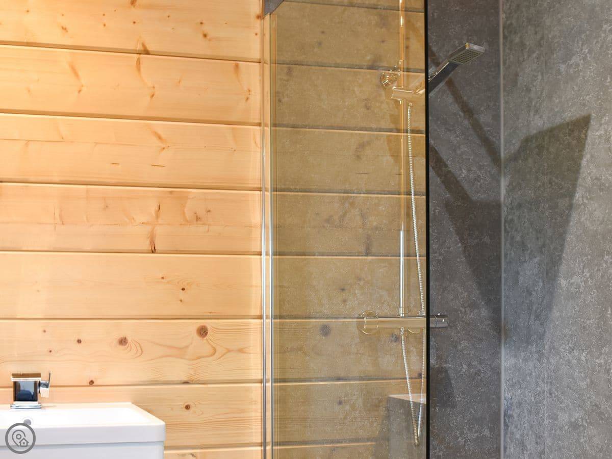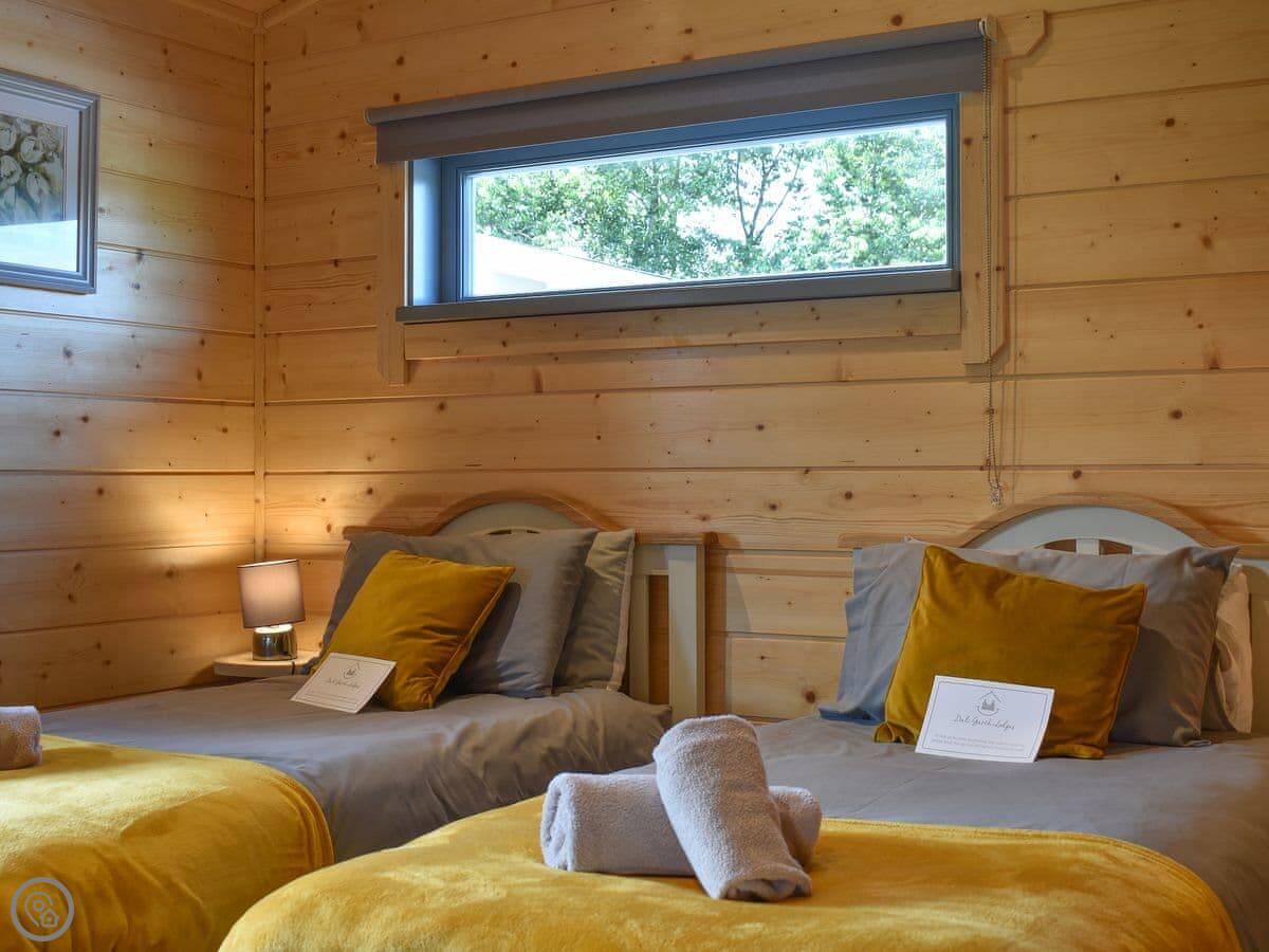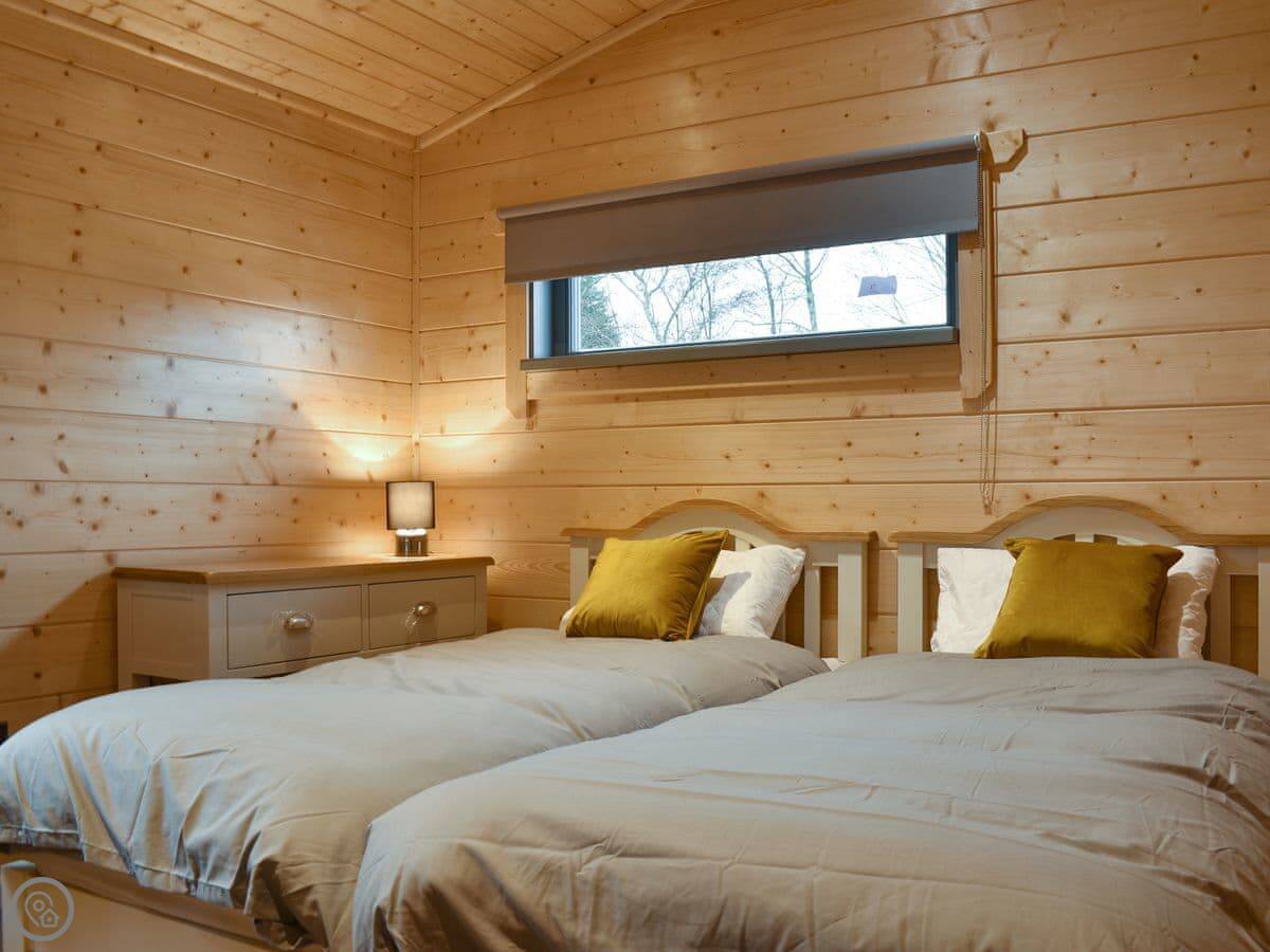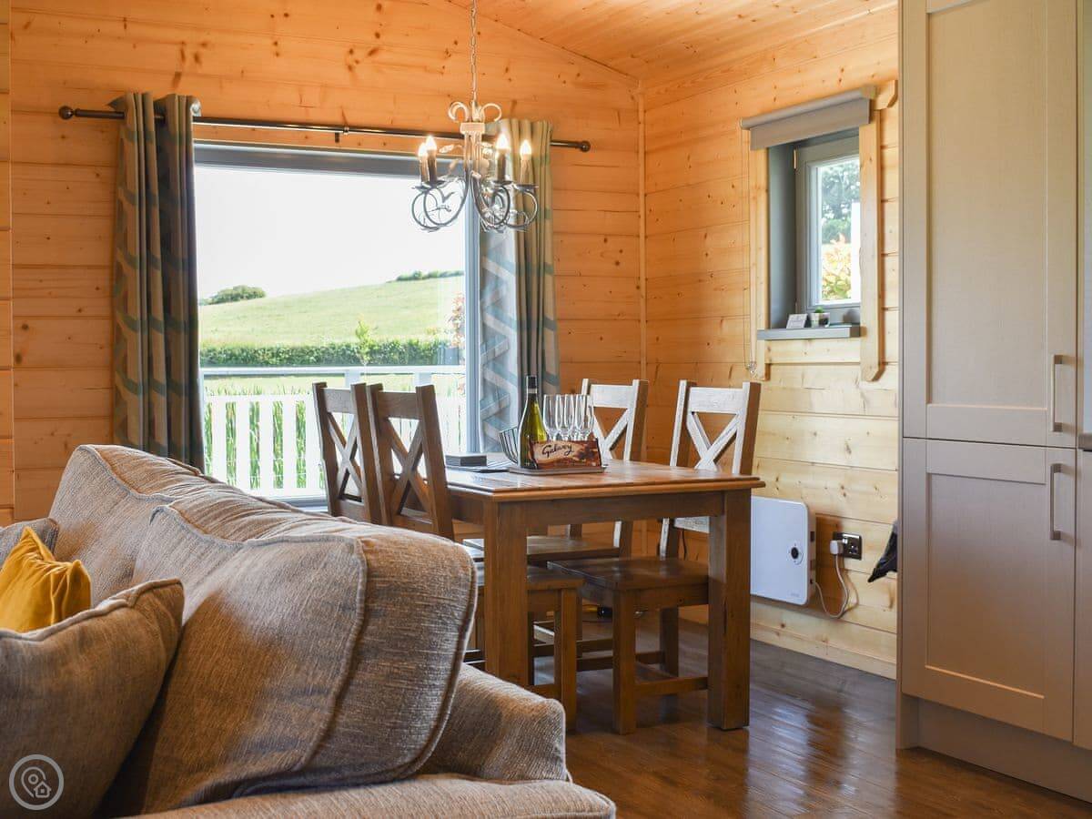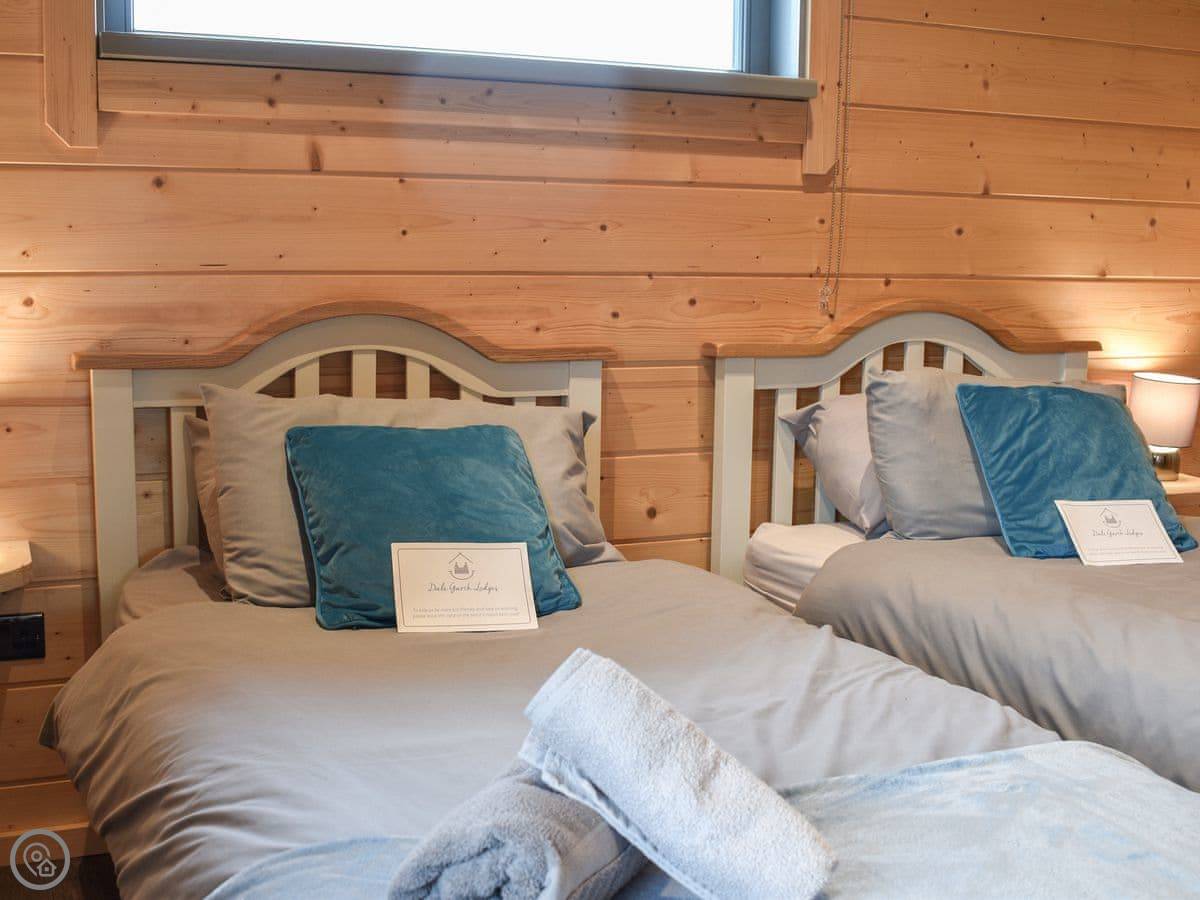 It sleeps four. Two bedrooms, one double and one twin. Two bathrooms, both with walk-in showers. It's got a 4 Star rating. It's open plan inside.