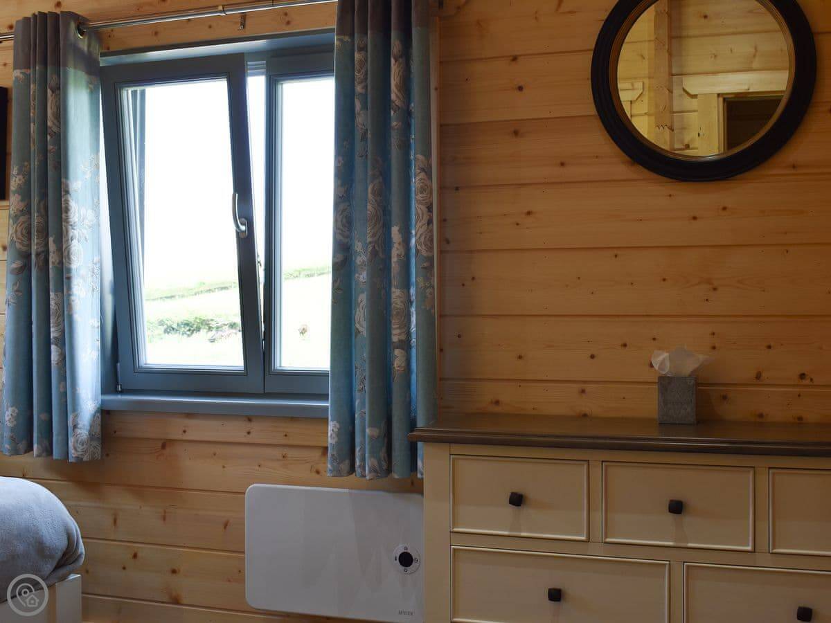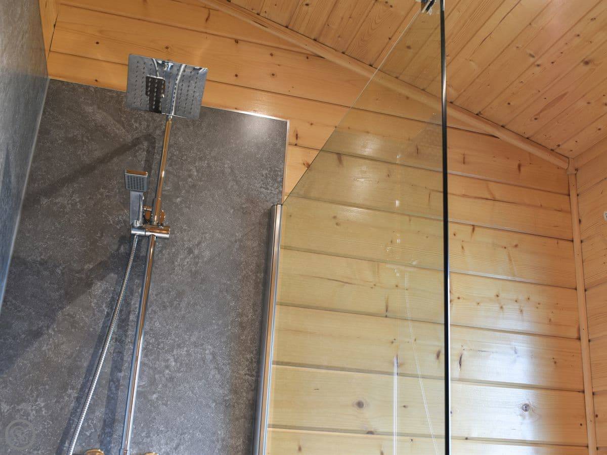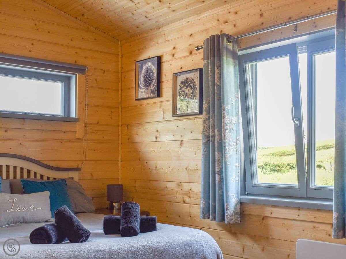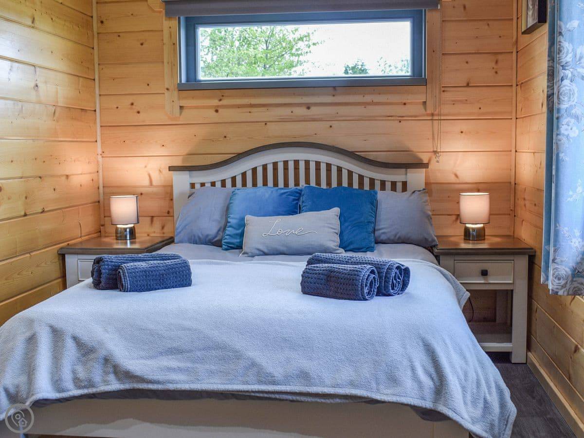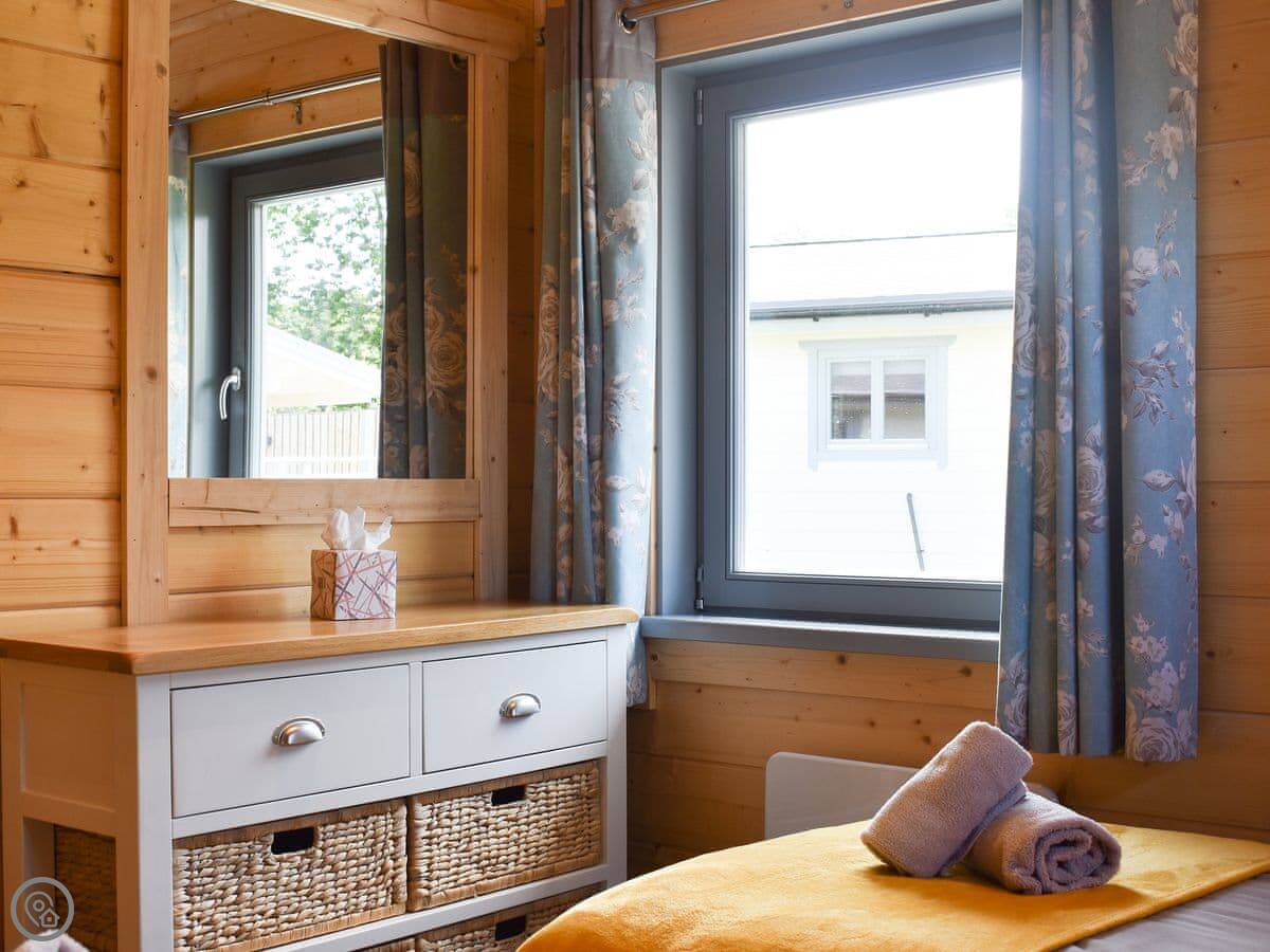 It sleeps four. Two bedrooms, one double and one twin. Two bathrooms, both with walk-in showers. It's got a 4 Star rating. It's open plan inside.