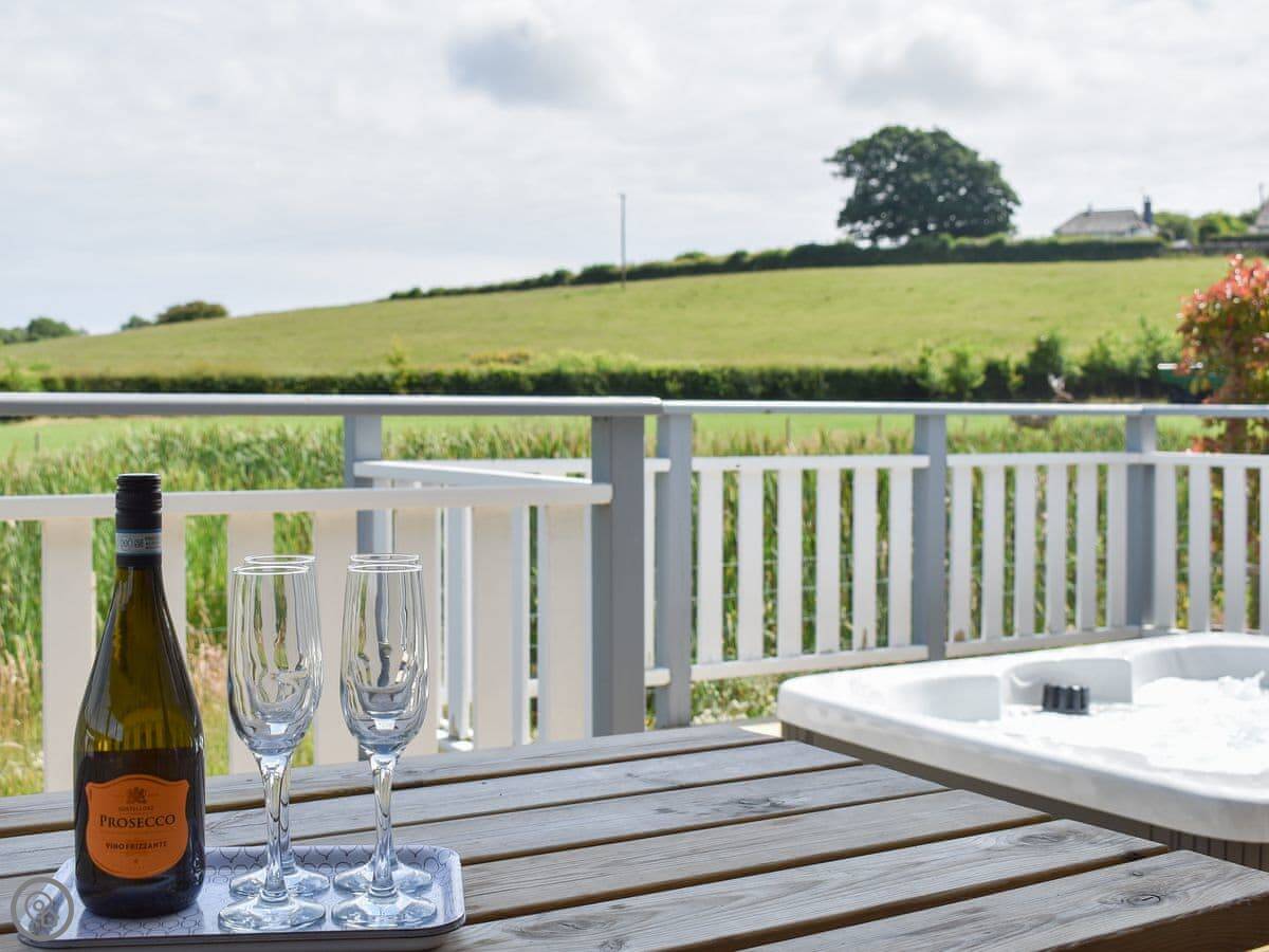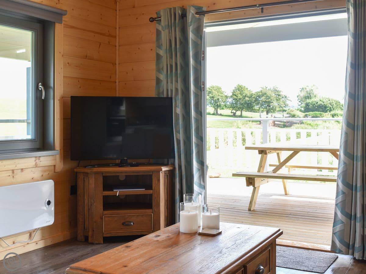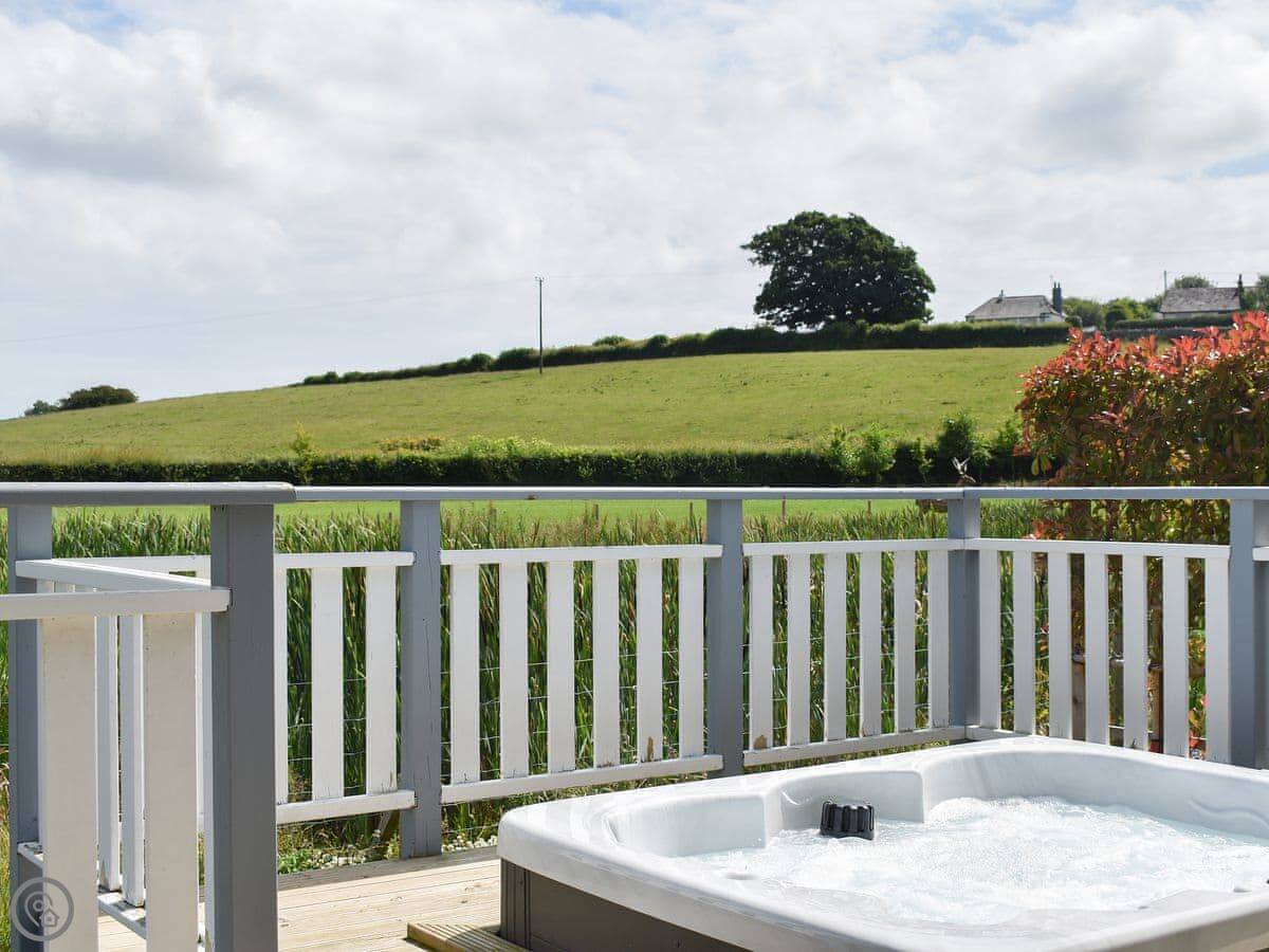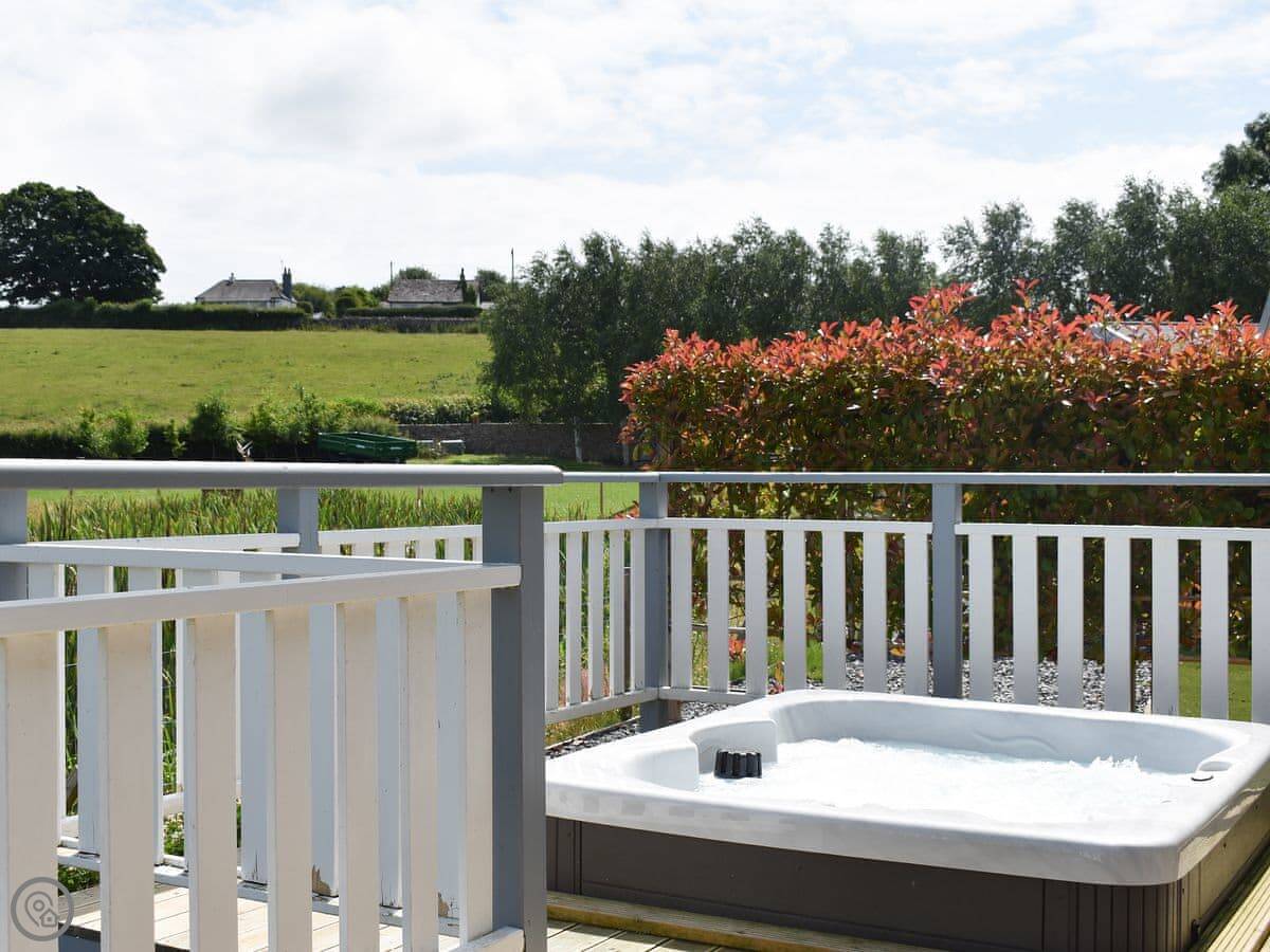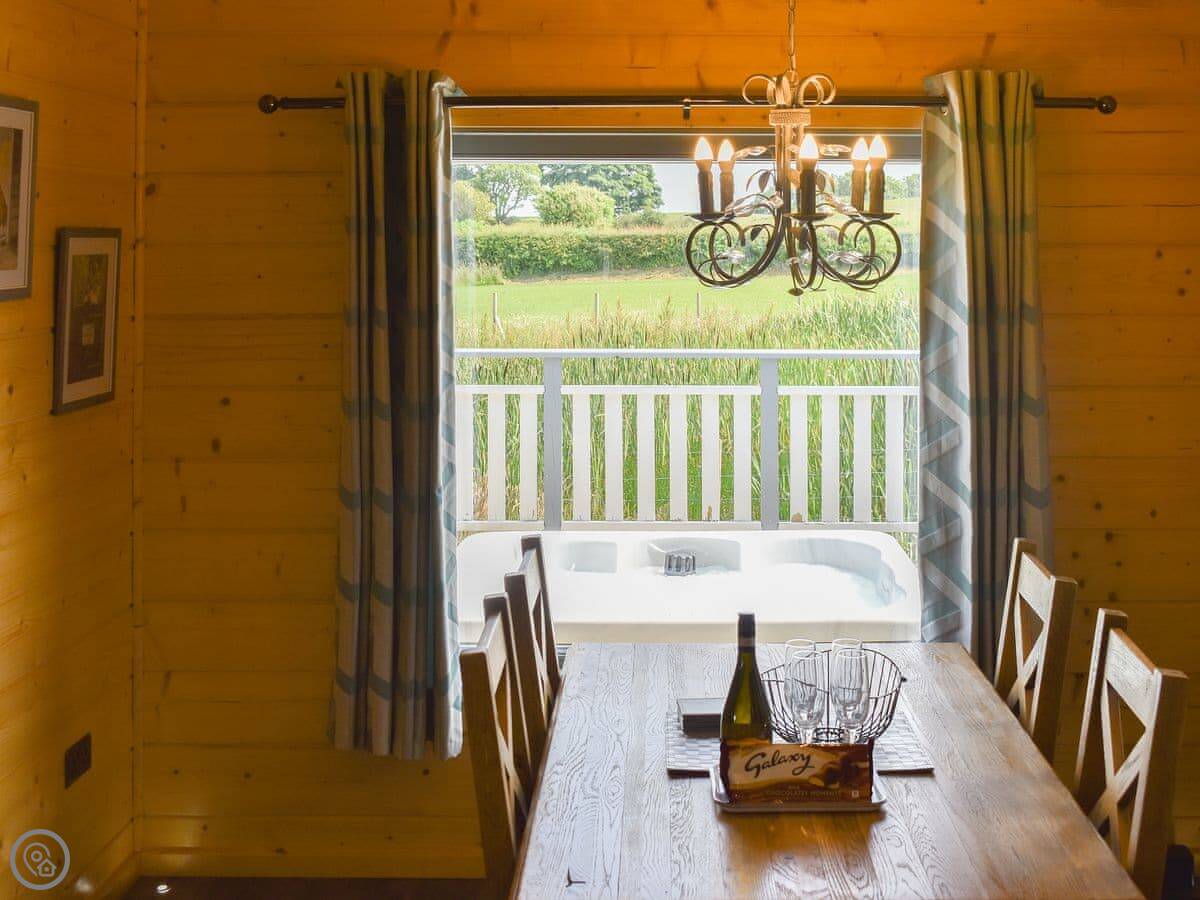 Each lodge has its own terrace and a private hot tub. They look out over the landscaped gardens.