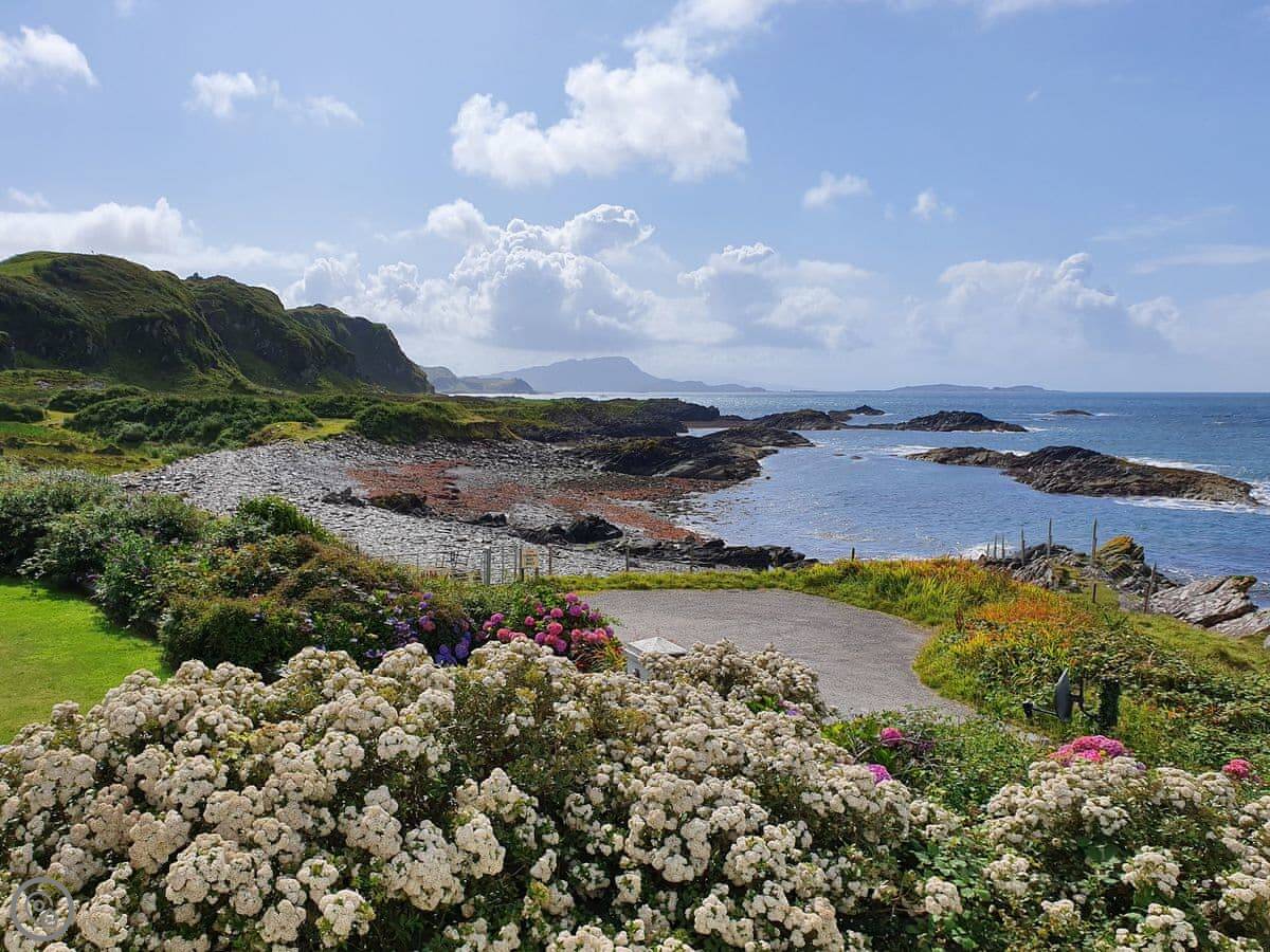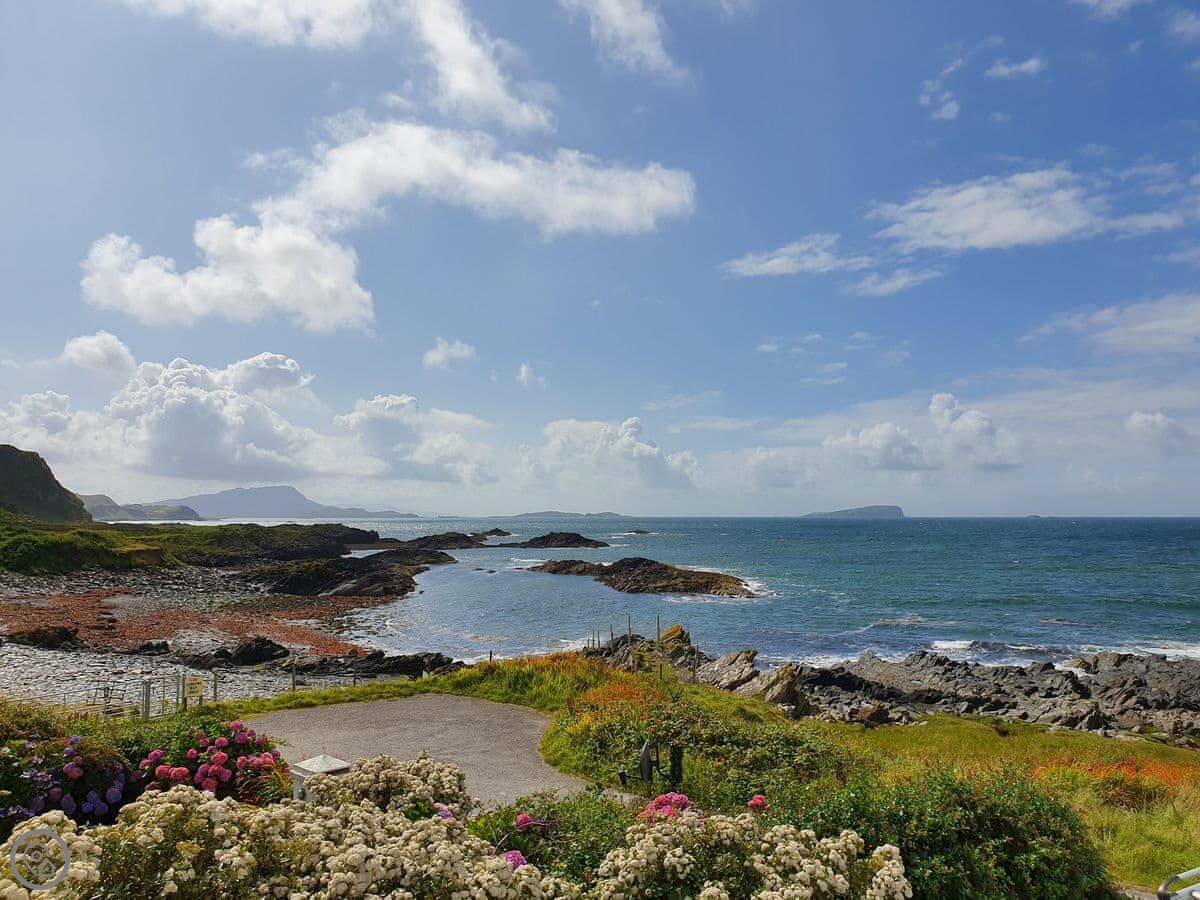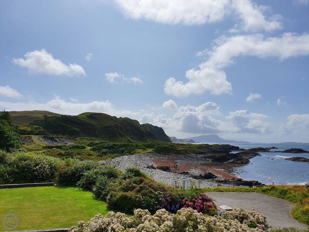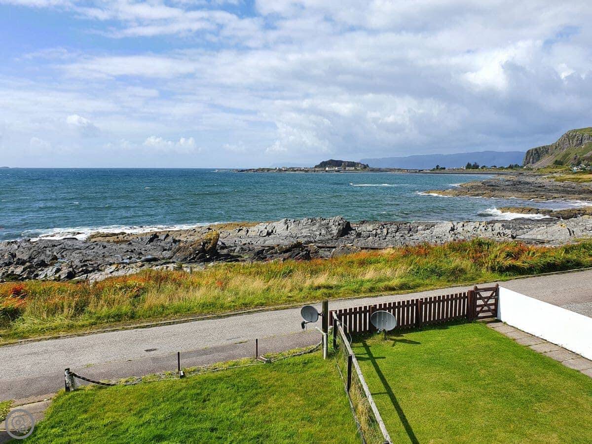 Seaview Cottage is in Ellenabeich, on the Isle of Seil. You drive out from Oban and cross the bridge onto the island. It's semi-detached. The view is the main thing. You look straight out over the water towards Mull. You can see boats going past, and sometimes seals or eagles.