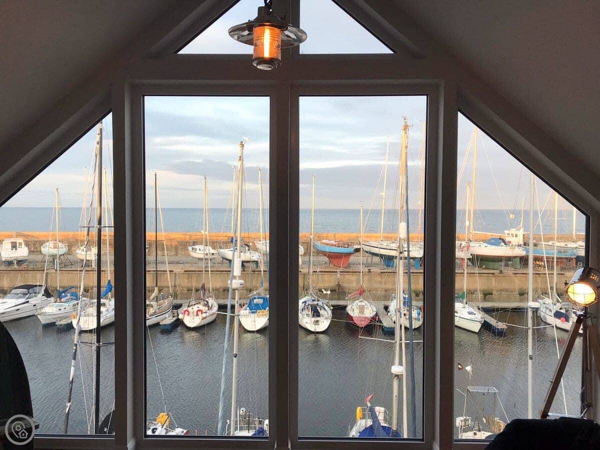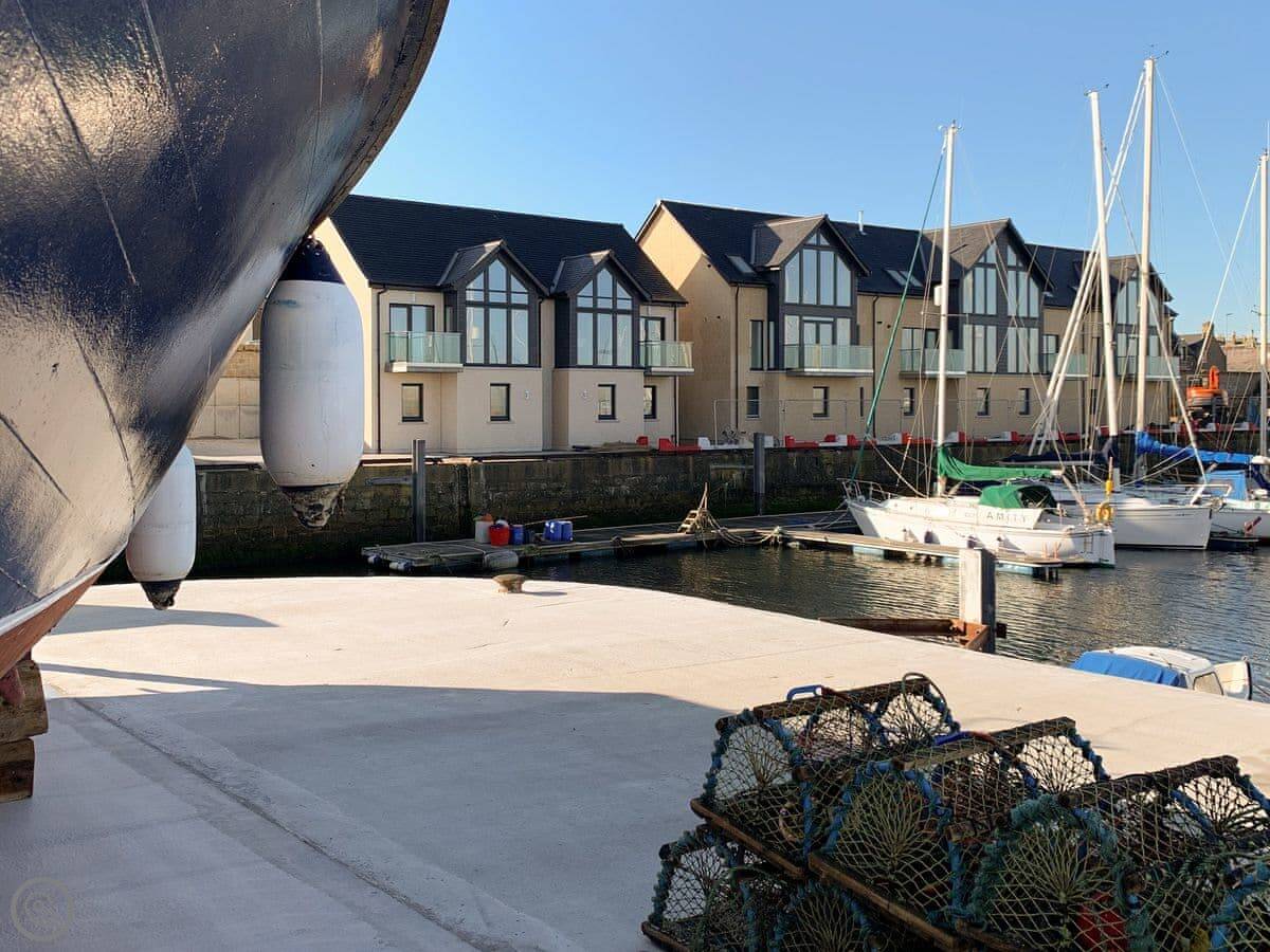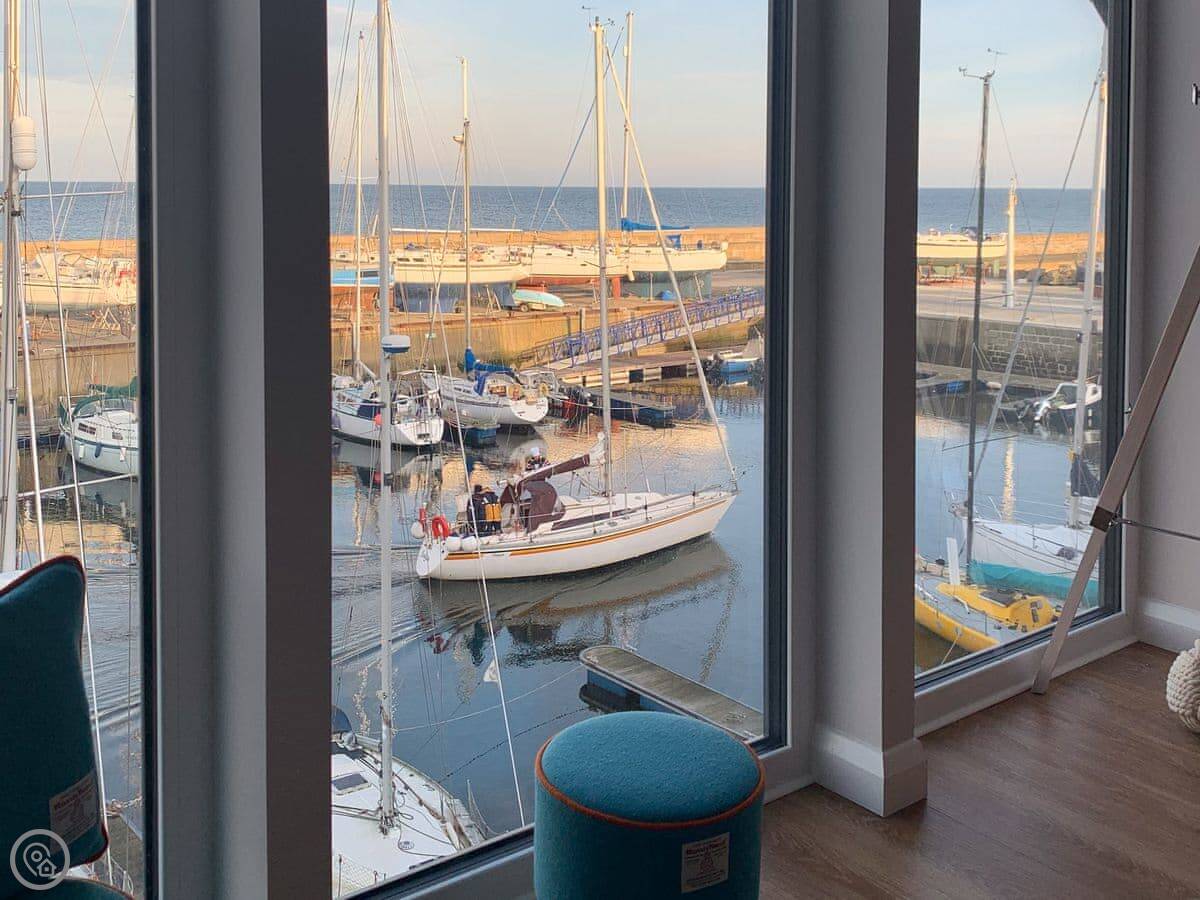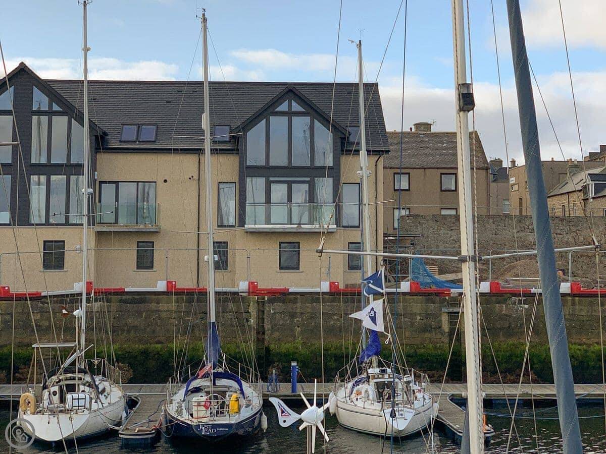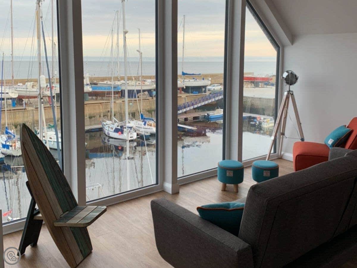 Spinnaker is a reverse plan, luxury, two bedroom apartment, with a large gabled window offering uninterrupted views over the marina and the Moray Firth beyond. The property offers very spacious contemporary living for four guests. On the ground floor is an immaculate twin bedroom and on the first floor is a spectacular open plan living space which takes full advantage of the huge picture window over the coast. There are binoculars, a tide clock and information for dolphin watching as the dolphins are often visible from the window. The dining area features a large oak table with seating for 9, along with high quality white crockery for 8 guests. In addition, there is a double bedroom with a Jack and Jill shower room. Externally, there is private parking for one vehicle, however there is plenty of on road parking.