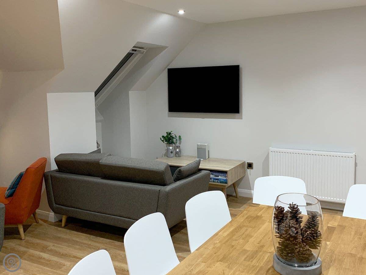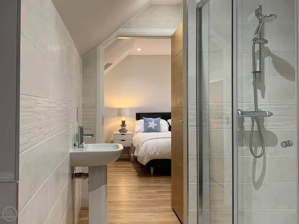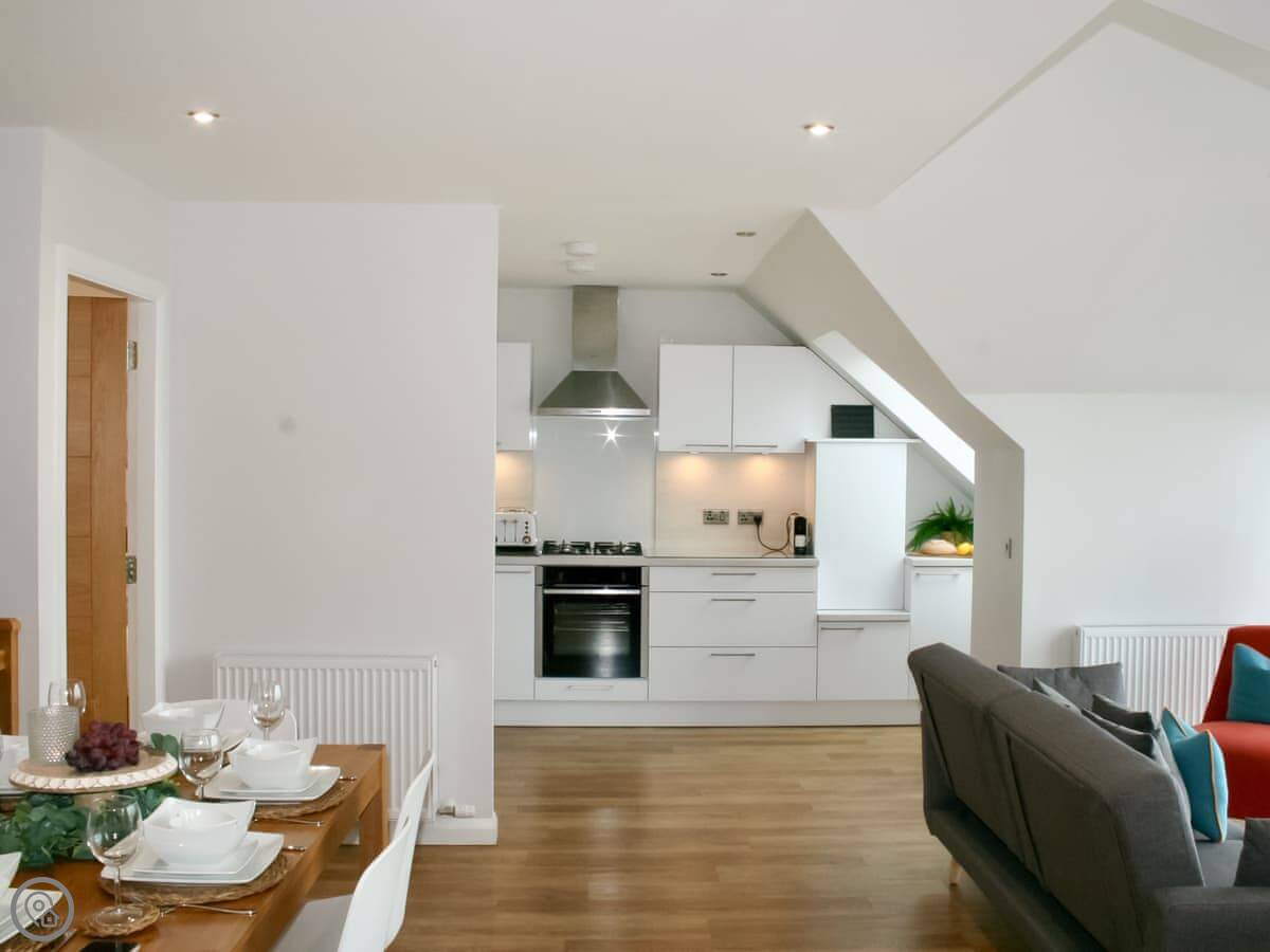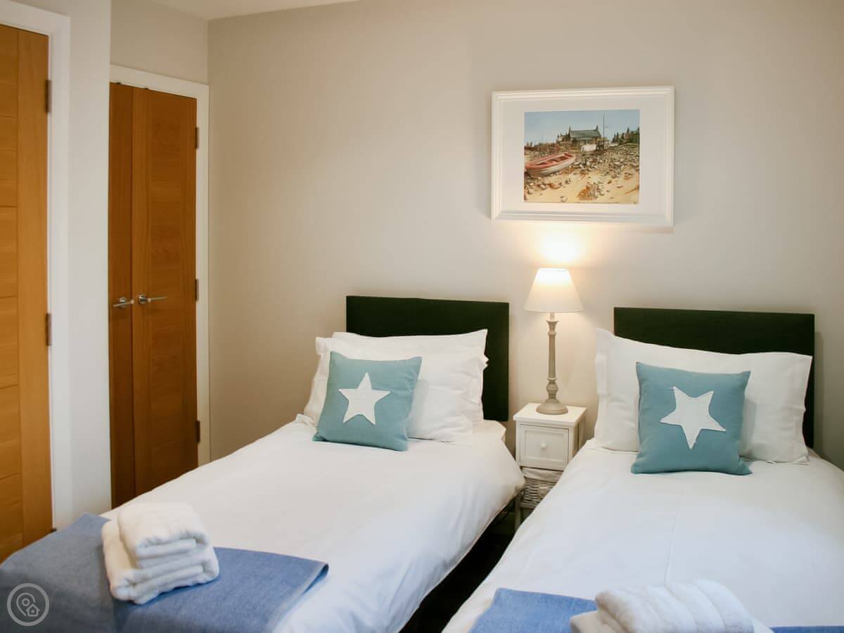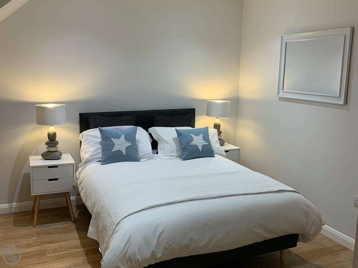 Spinnaker is a reverse plan, luxury, two bedroom apartment, with a large gabled window offering uninterrupted views over the marina and the Moray Firth beyond. The property offers very spacious contemporary living for four guests. On the ground floor is an immaculate twin bedroom and on the first floor is a spectacular open plan living space which takes full advantage of the huge picture window over the coast. There are binoculars, a tide clock and information for dolphin watching as the dolphins are often visible from the window. The dining area features a large oak table with seating for 9, along with high quality white crockery for 8 guests. In addition, there is a double bedroom with a Jack and Jill shower room. Externally, there is private parking for one vehicle, however there is plenty of on road parking.