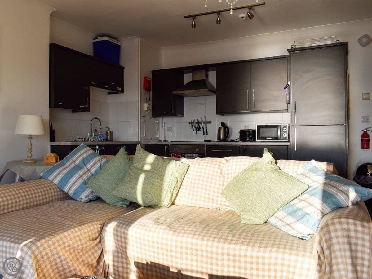 Honestly, it says it sleeps six or seven, but there's only one proper bedroom. That's a family room with a double bed and bunk beds. The sofa in the living room is also a double bed. So it's best suited for a family or a group who don't mind that setup. It's got a 4 Star rating. One bathroom.