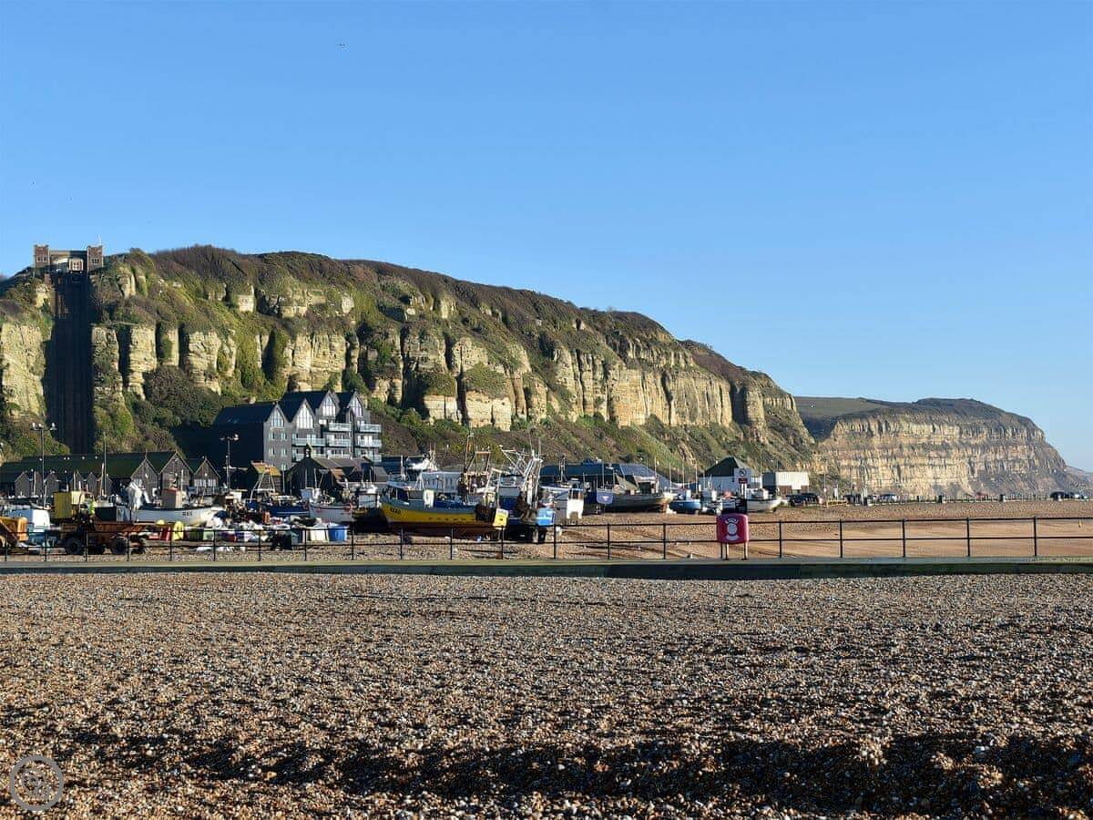 Hastings is busy. There are amusement arcades, the pier, mini golf, and plenty of pubs and restaurants. If there's an event on the seafront, like the bonfire night or the carnival, you can watch it from the window. The Old Town has the fishing boats and the net shops, and the cliffs at East Hill.