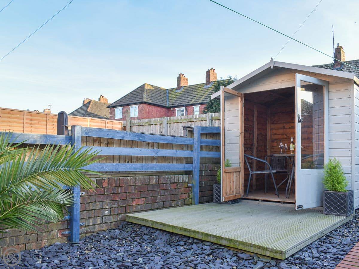 It sleeps six people in three bedrooms. There's one bathroom. It's got a 4 Star rating, so it's well-equipped and comfortable. The stairs inside are a bit steep, like a lot of houses round here. You come in through the garden at the back, which is enclosed and has a patio and a summer house.