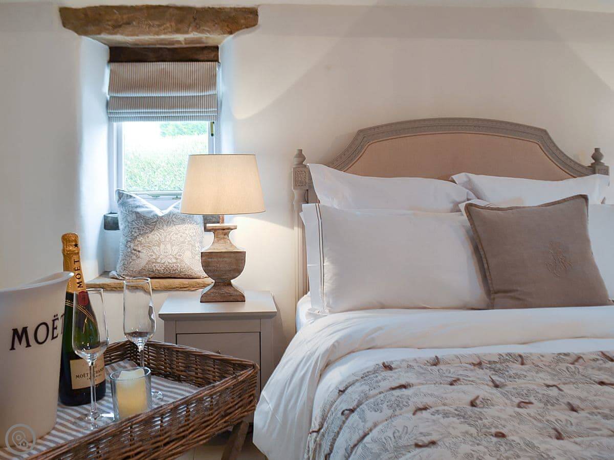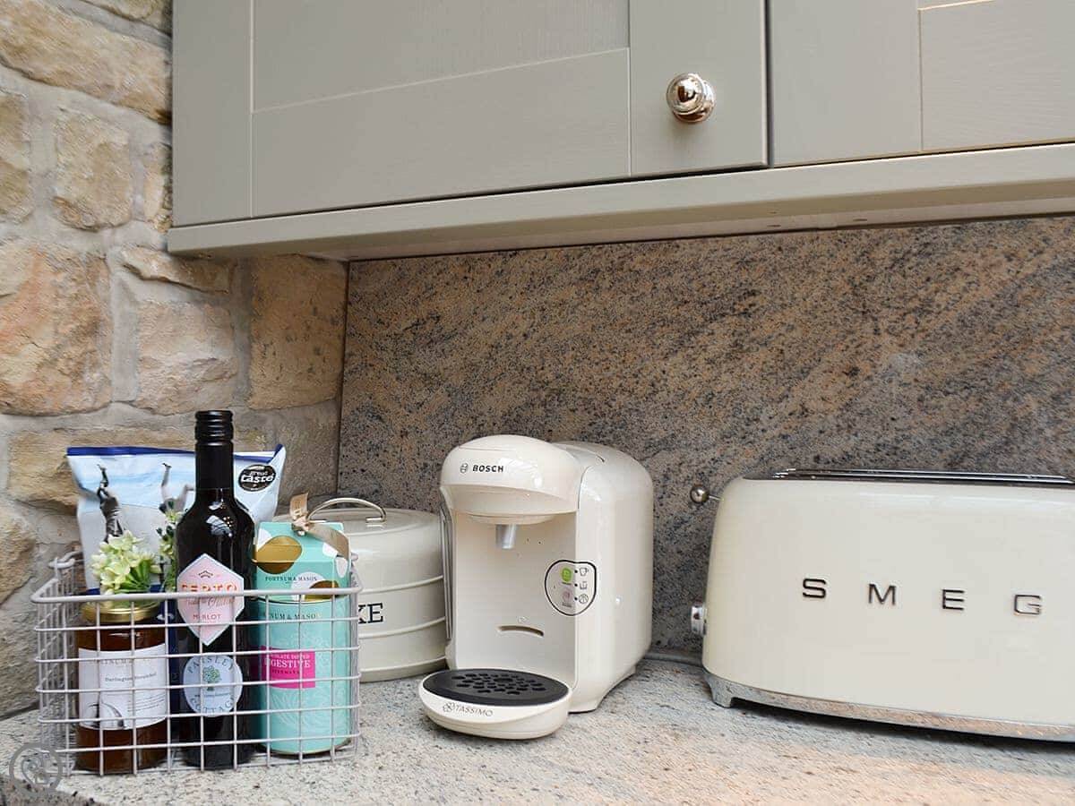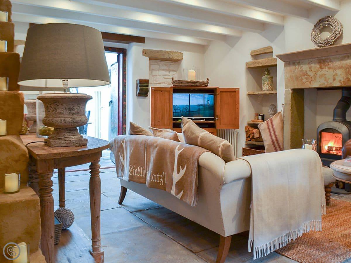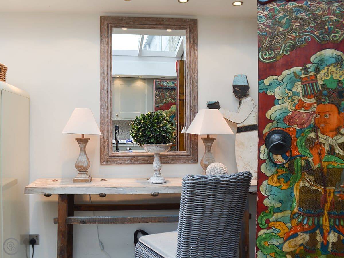 Dating back to the 1700s, Parsley Cottage is a beautiful stone built terraced cottage, complete with original mullion windows and full of charm. Perfect for couples looking to escape the hustle and bustle of life, the quirky interior has been dressed with wonderful furnishings, enhancing the traditional features such as the insulated stone flag flooring and beamed ceiling. You’ll find a wood burner in the cosy living room, perfect for that extra touch of warmth in the chillier winter months. Antique, Tibetan double doors lead to the kitchen/dining room, and during the long summer days you can really bring the outside in. There are bi-folding doors that open out from the kitchen/dining room onto a decked area, with a step down to tha further outside dining area with table, four chairs and a large parasol.