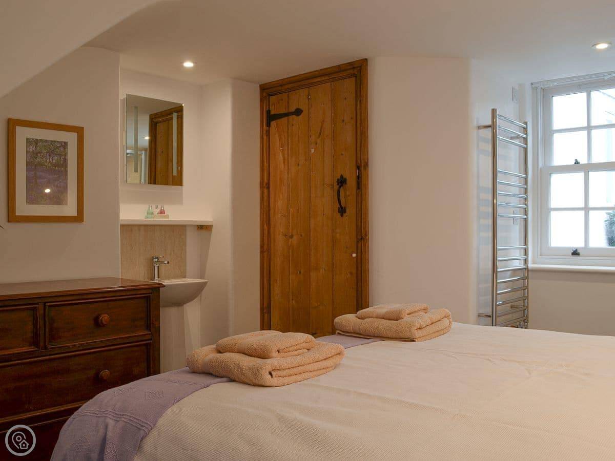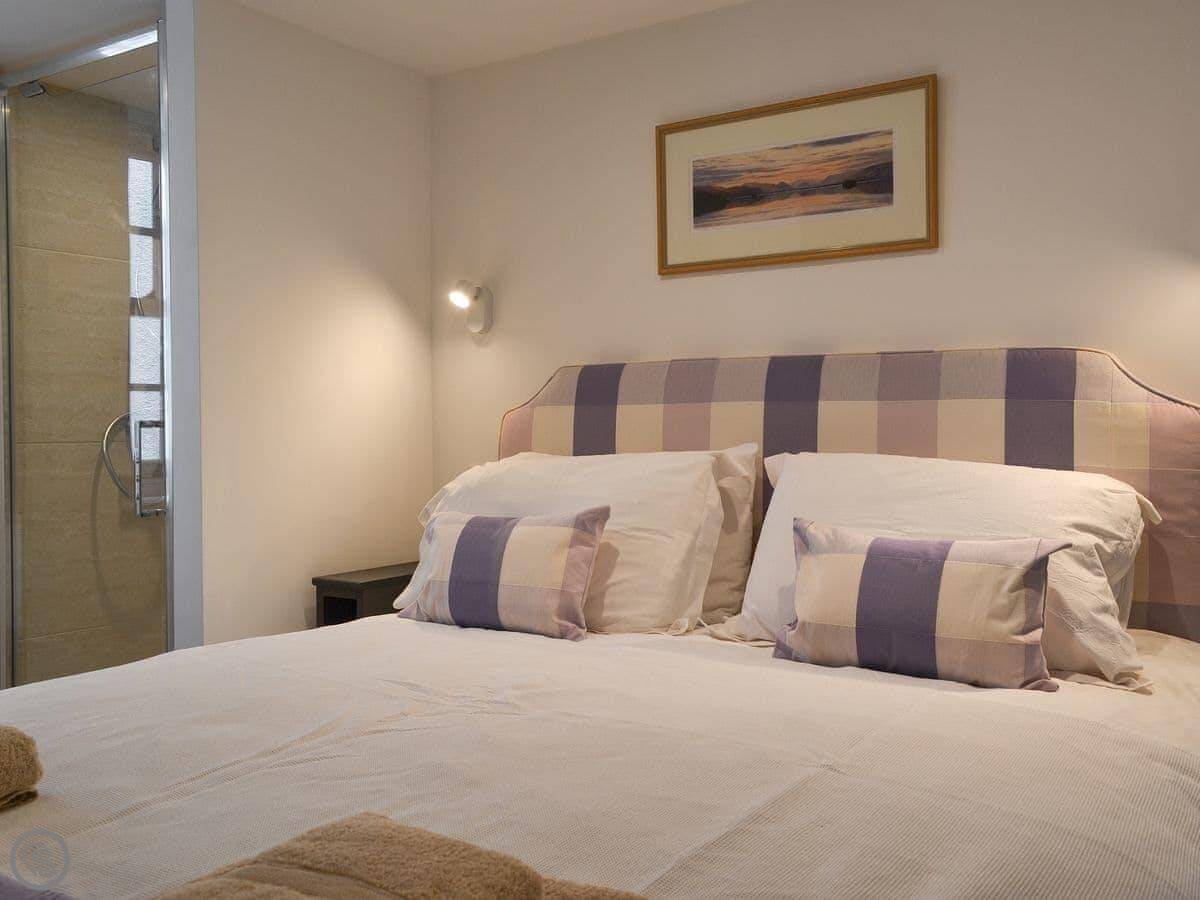 It sleeps four. Two bedrooms, both with their own bathrooms. One's a double, the other has twin beds. It's got a 4 Star rating. It was all redone a few years ago, so it's clean and everything works. The ceilings are low in some places, just so you know.