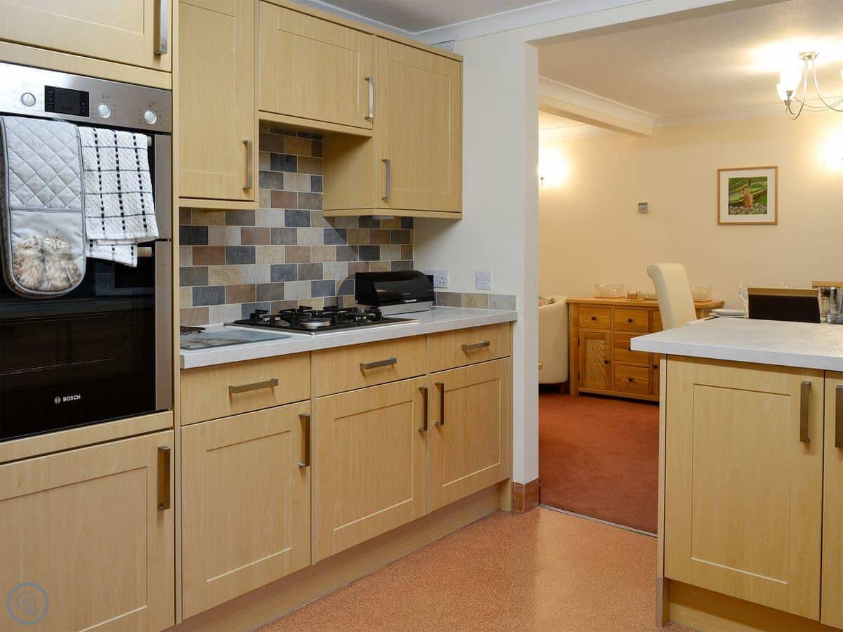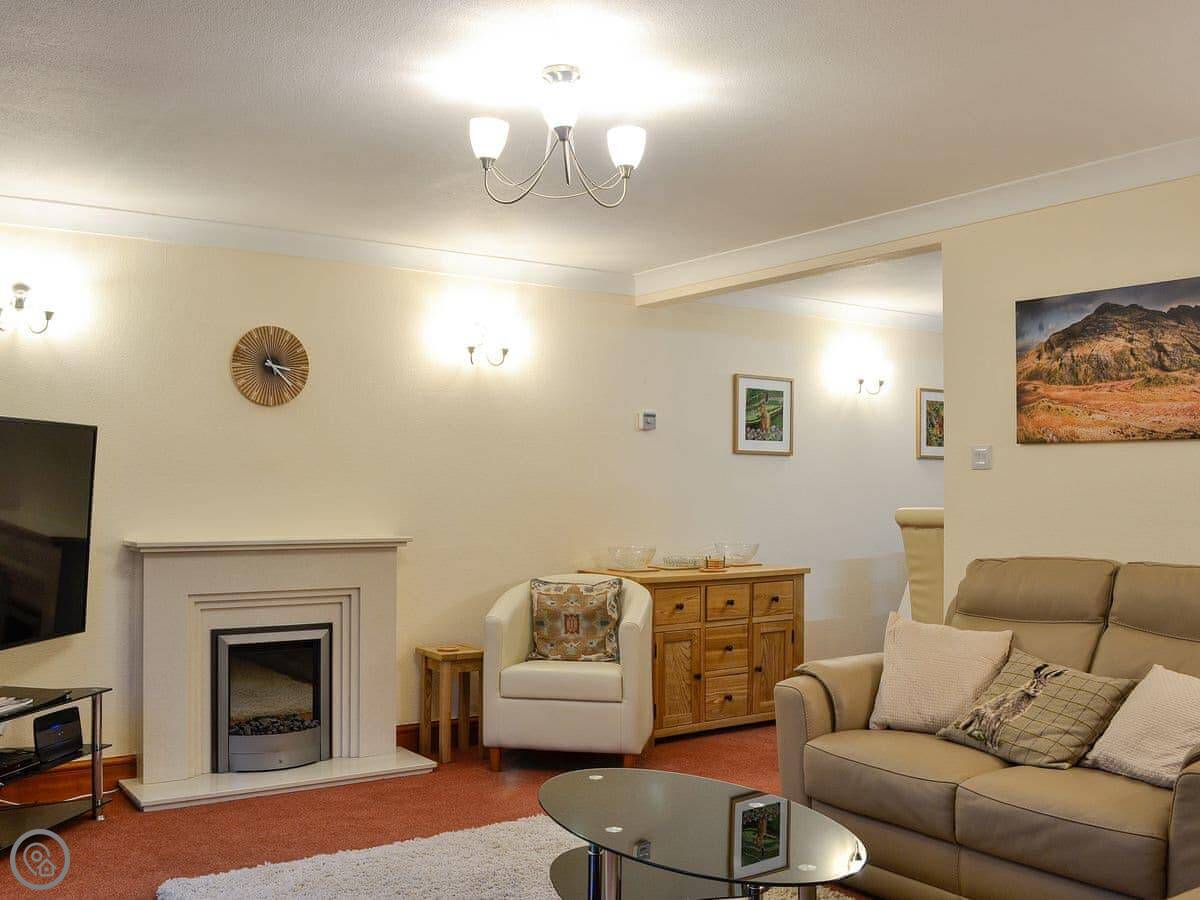 Inside, it's open plan downstairs. The kitchen has everything you'd need, dishwasher too. There's a conservatory with underfloor heating. Upstairs, the bedrooms are fine. Nothing fancy, but they do the job.