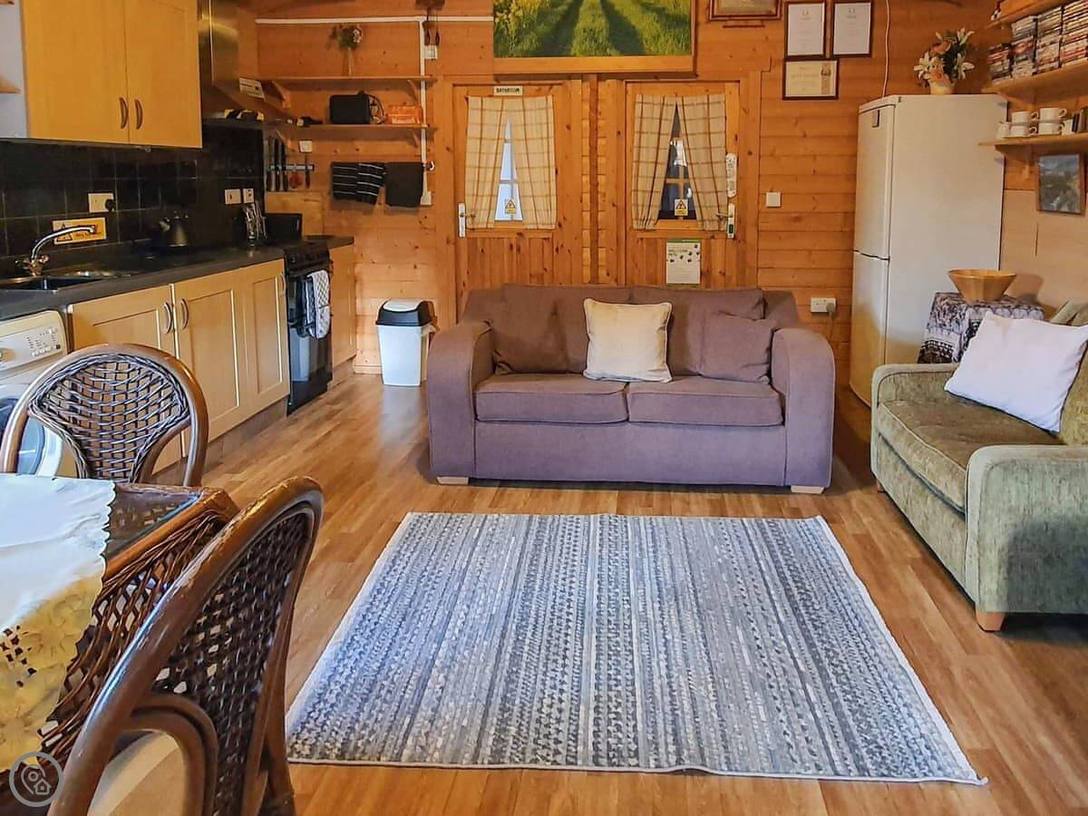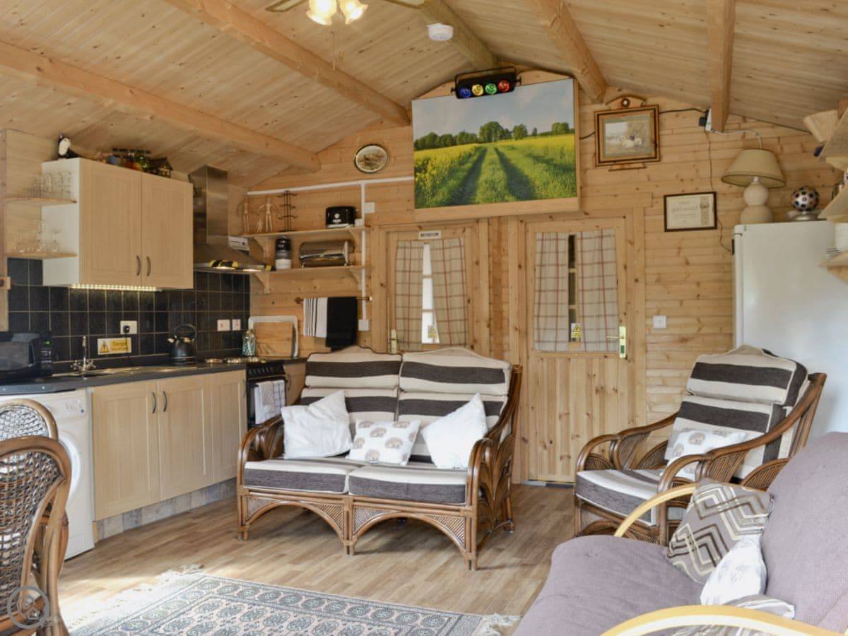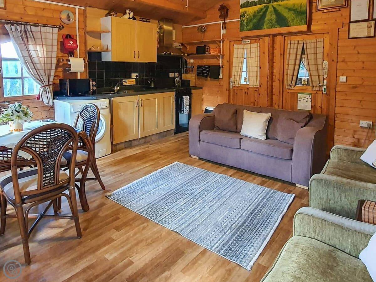 Hedgehog Meadows is a timber chalet in Waverton. It's behind our house, but it's all yours while you're here. It's single-storey, so everything's on one level. It looks out over its own little paddock towards the fells. It's very quiet.