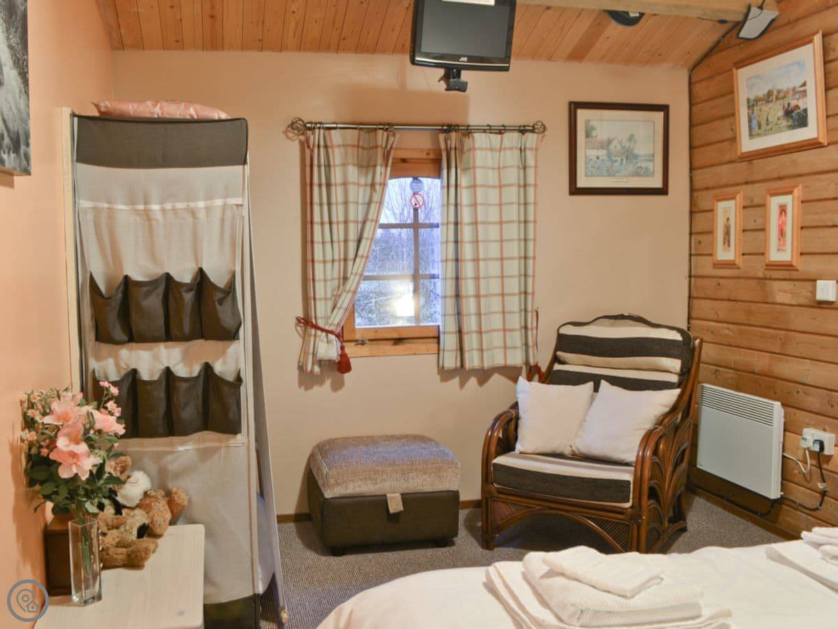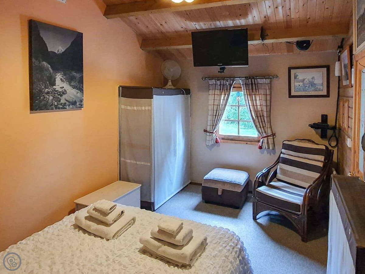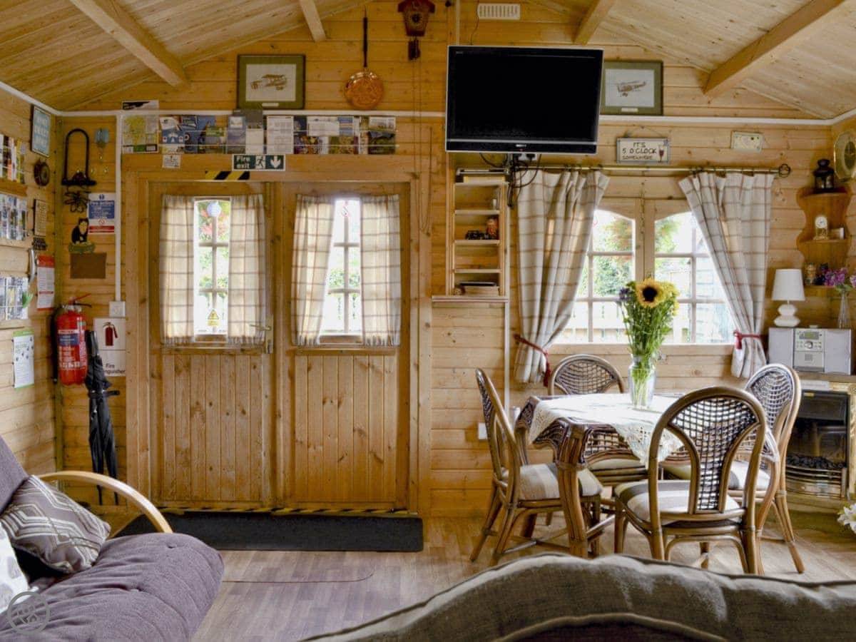 Hedgehog Meadows is a timber chalet in Waverton. It's behind our house, but it's all yours while you're here. It's single-storey, so everything's on one level. It looks out over its own little paddock towards the fells. It's very quiet.