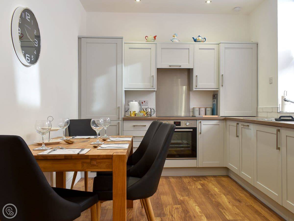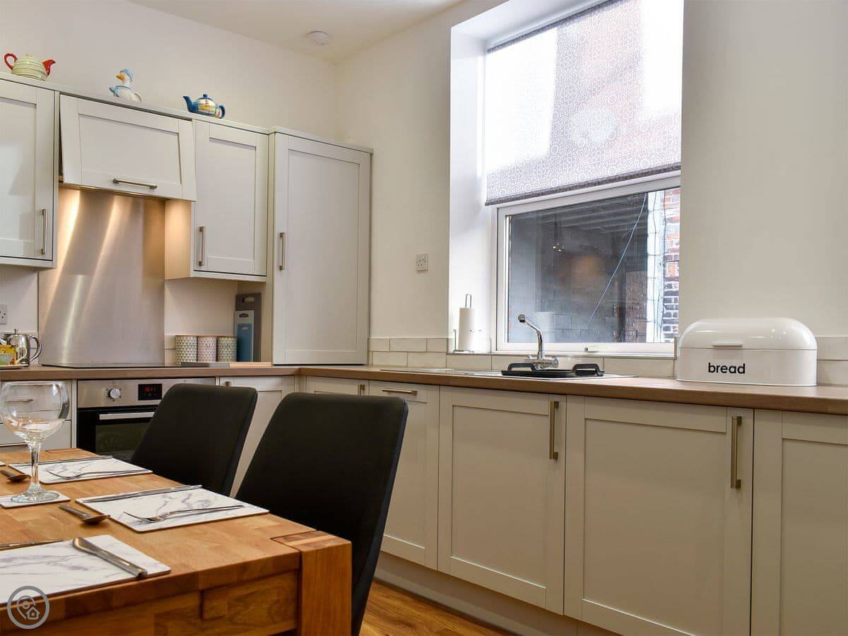 Situated near the coast of the seaside town of Whitby in North Yorkshire, this is a beautifully furnished property for families and friends looking to share a special occasion together or simply tour a different part of the country. The property is located just off one of the many shopping streets in Whitby, down a quieter residential road, ensuring that even in the height of summer that you are in a peaceful location. This ground floor apartment is accessed via two stone steps and has just one step in the hallway. Boasting a spacious modern open-plan living and dining room with a quality finish making you feel right at home, after a day of exploring you can get cosy on the sofas and catch up on your favourite TV shows, or open a bottle of wine over dinner while reminiscing about the day’s events. The well equipped kitchen is perfect for rustling up delicious home cooked meals. One of the perks of self catering cottages is that you are never restricted to breakfast times – you can indulge in a long lie-in before starting the day with a full English! The bungalow is located a few hundred yards from beautiful views of the sea and Whitby Abbey, and only a few minutes from the fabulous beach, where families can enjoy a relaxing day sunbathing, playing a variety of beach games and even learning to surf!.