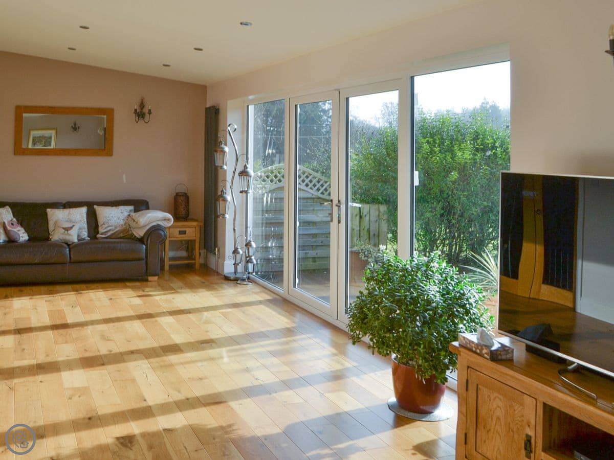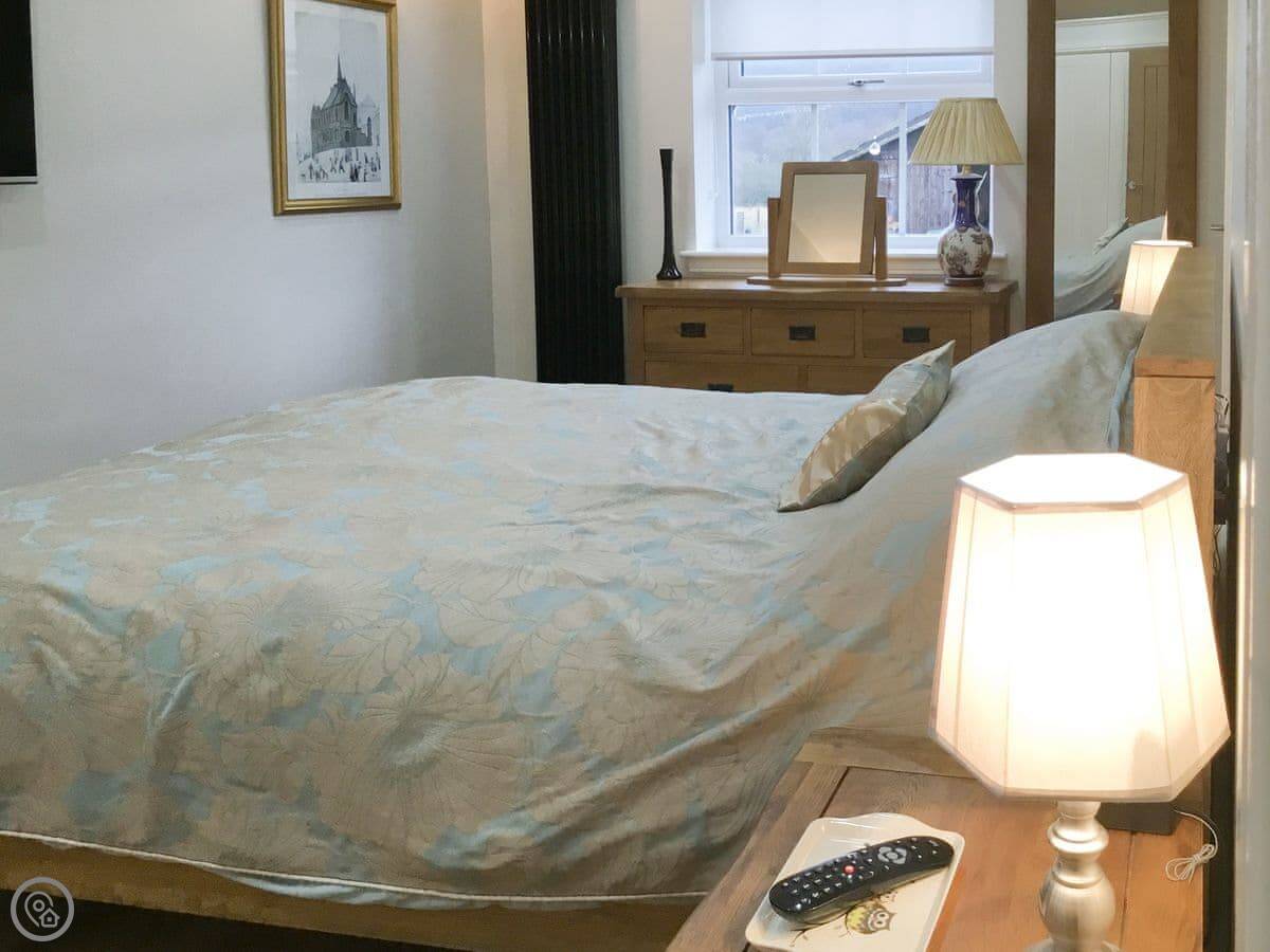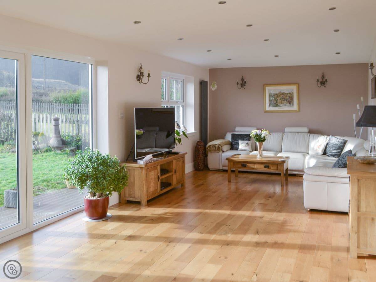 The garden is large and enclosed, so it’s safe for kids or a dog. We don’t take pets, sorry. The garden gets the sun and has good views over the valley. There’s a 60-inch TV in the sitting room.