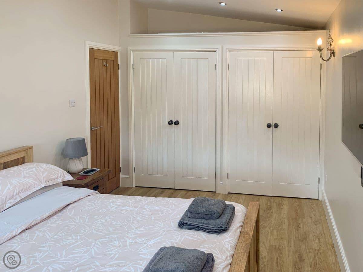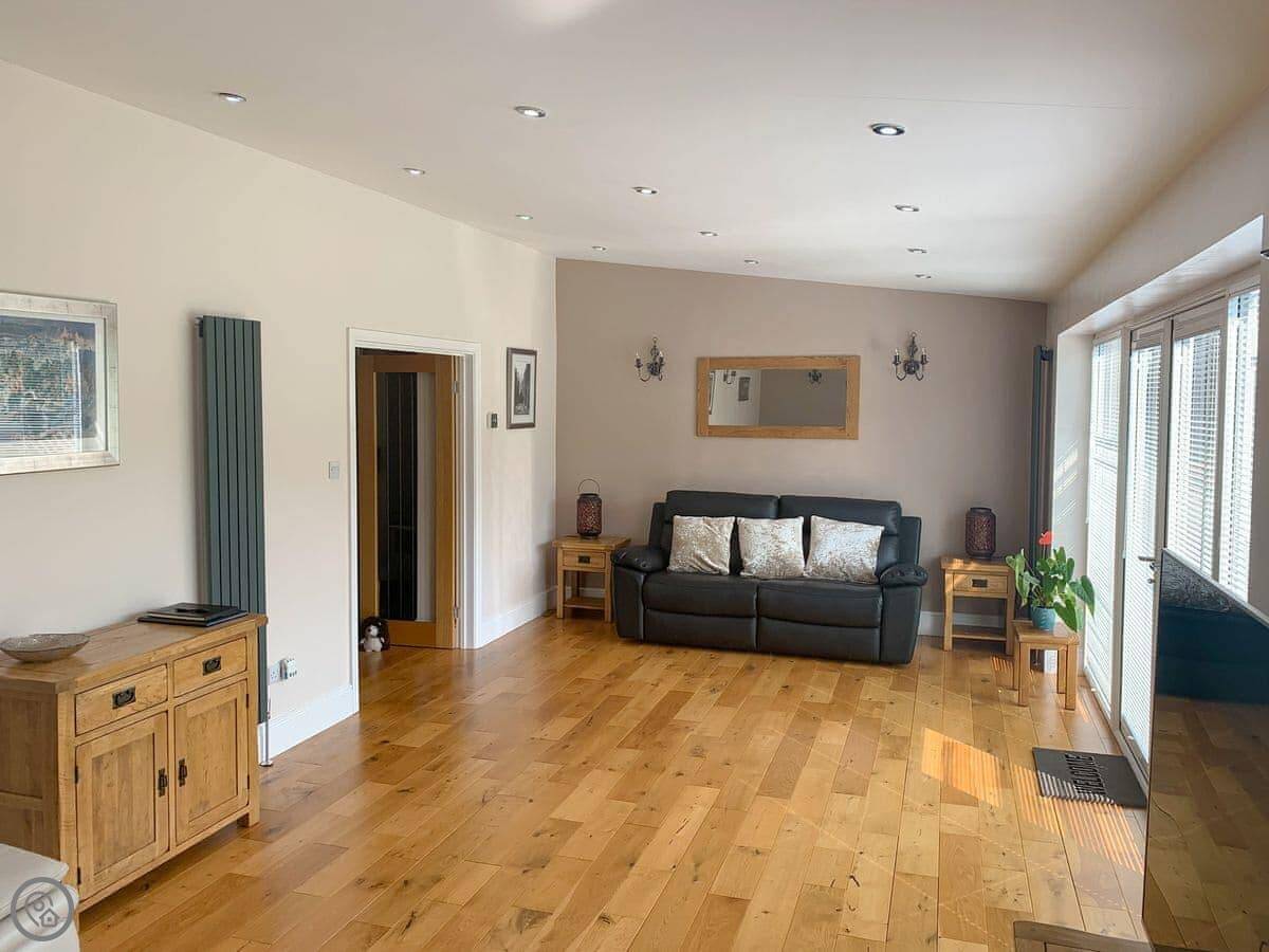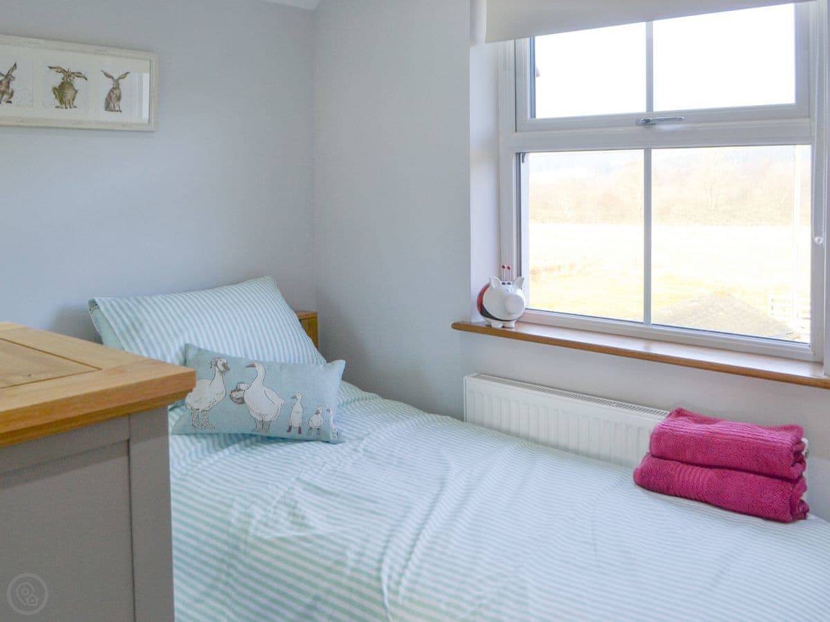 The garden is large and enclosed, so it’s safe for kids or a dog. We don’t take pets, sorry. The garden gets the sun and has good views over the valley. There’s a 60-inch TV in the sitting room.