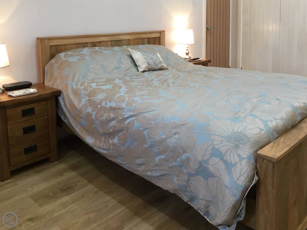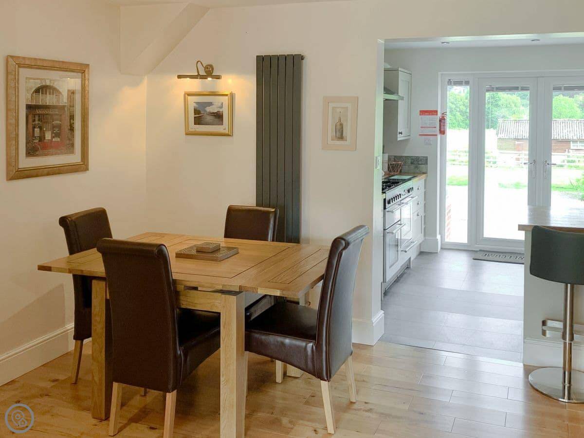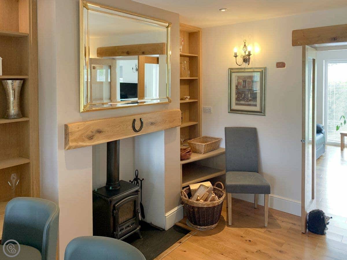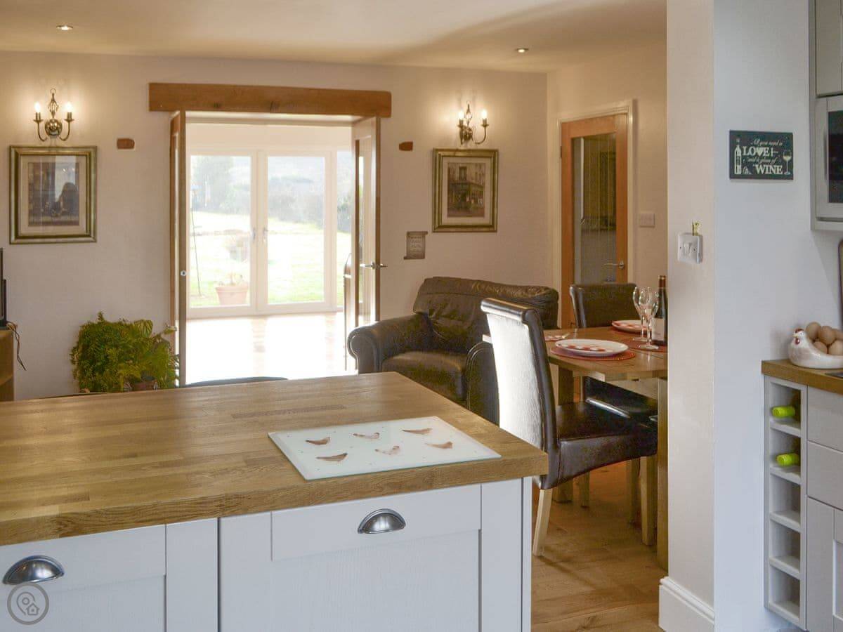 It sleeps six. Four bedrooms and two bathrooms. One of the bathrooms has a walk-in shower. It’s a 4 Star place, so it’s comfortable and well looked after. The kitchen has a wood burner and a big dining table.