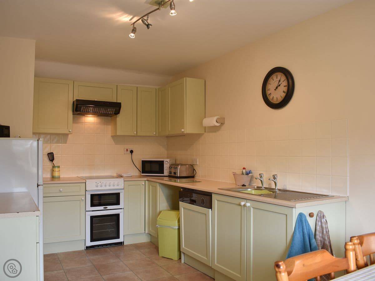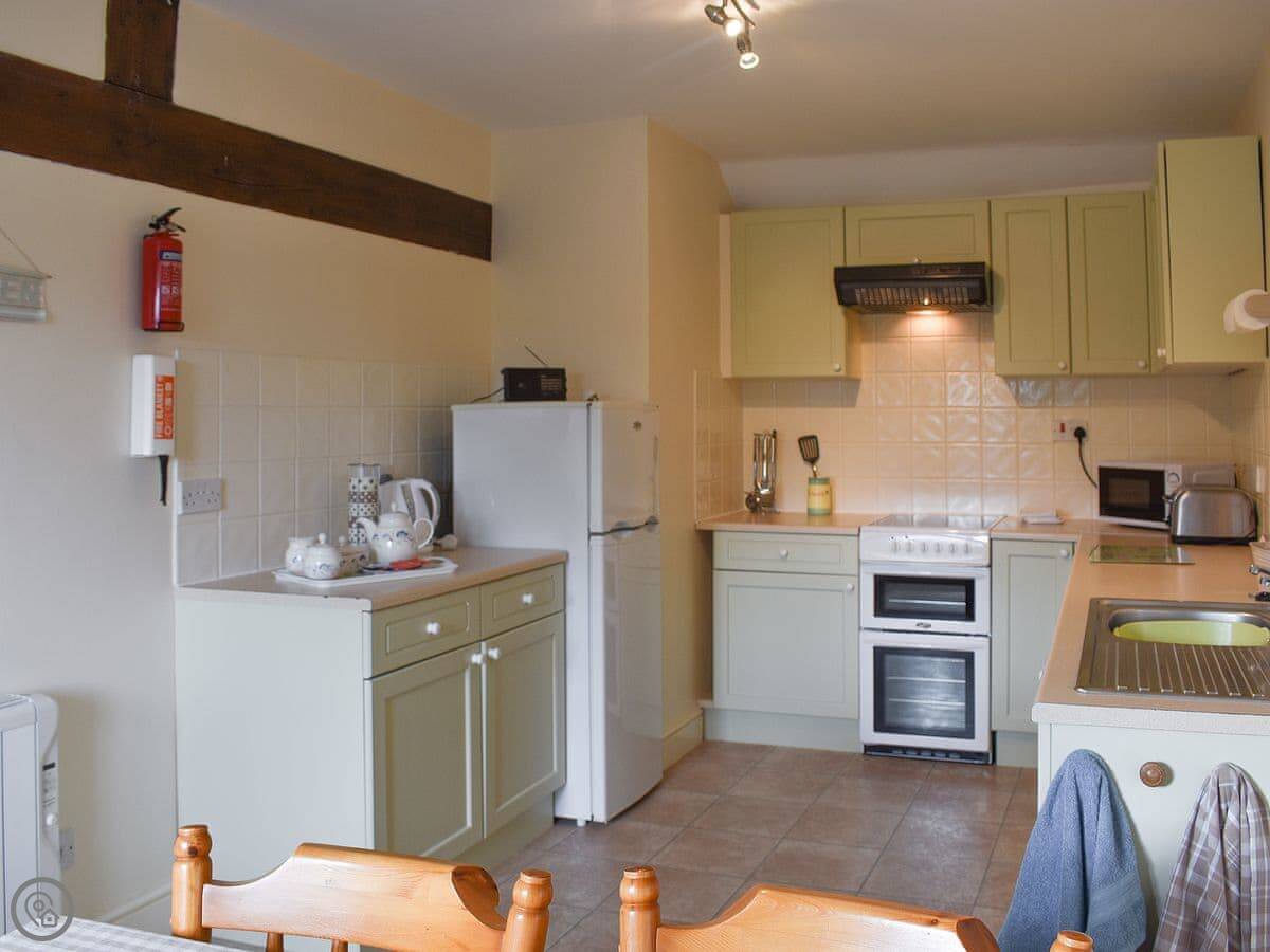 Farriers Cottage and Dale View Cottage offer comfortable accommodation on a single level for up to four people. They have a living/dining area with comfortable leather sofas, an electric ‘log effect’ fire and Freeview TV. The Shaker-style kitchen is well equipped and there is a spacious bathroom with bath and shower over. There are two bedrooms, one with a kingsize bed, the second with twin beds.