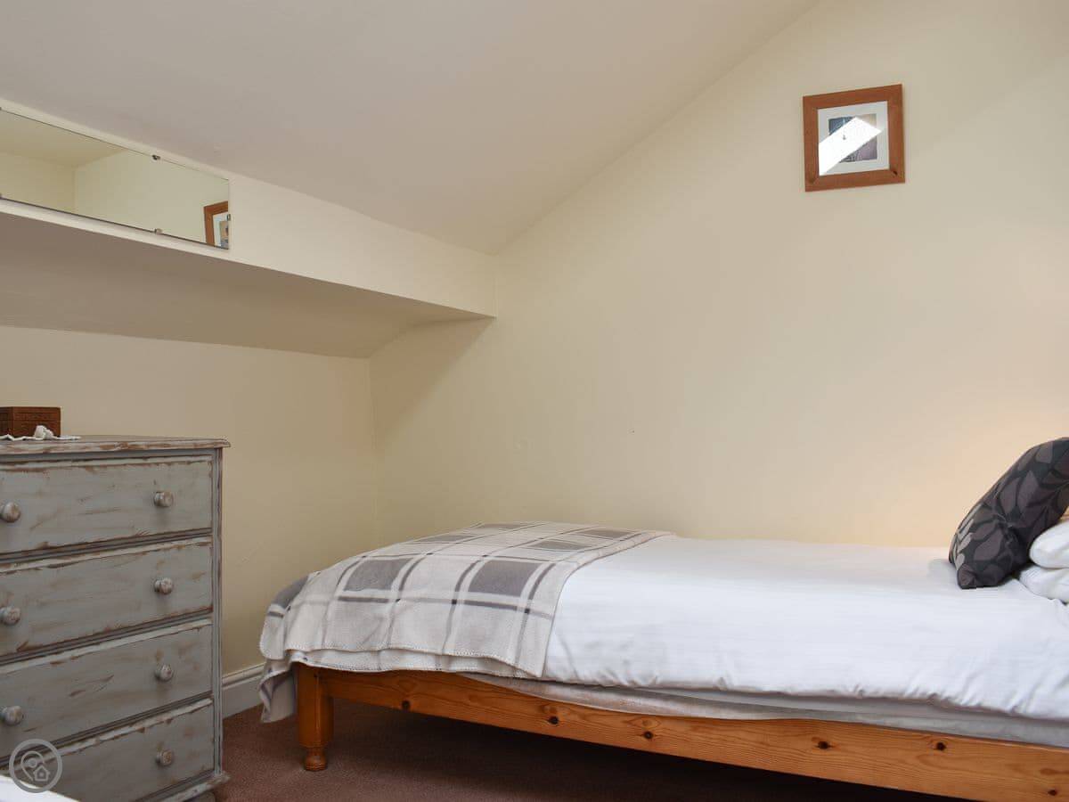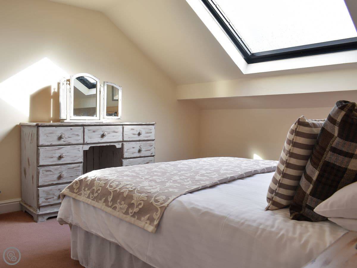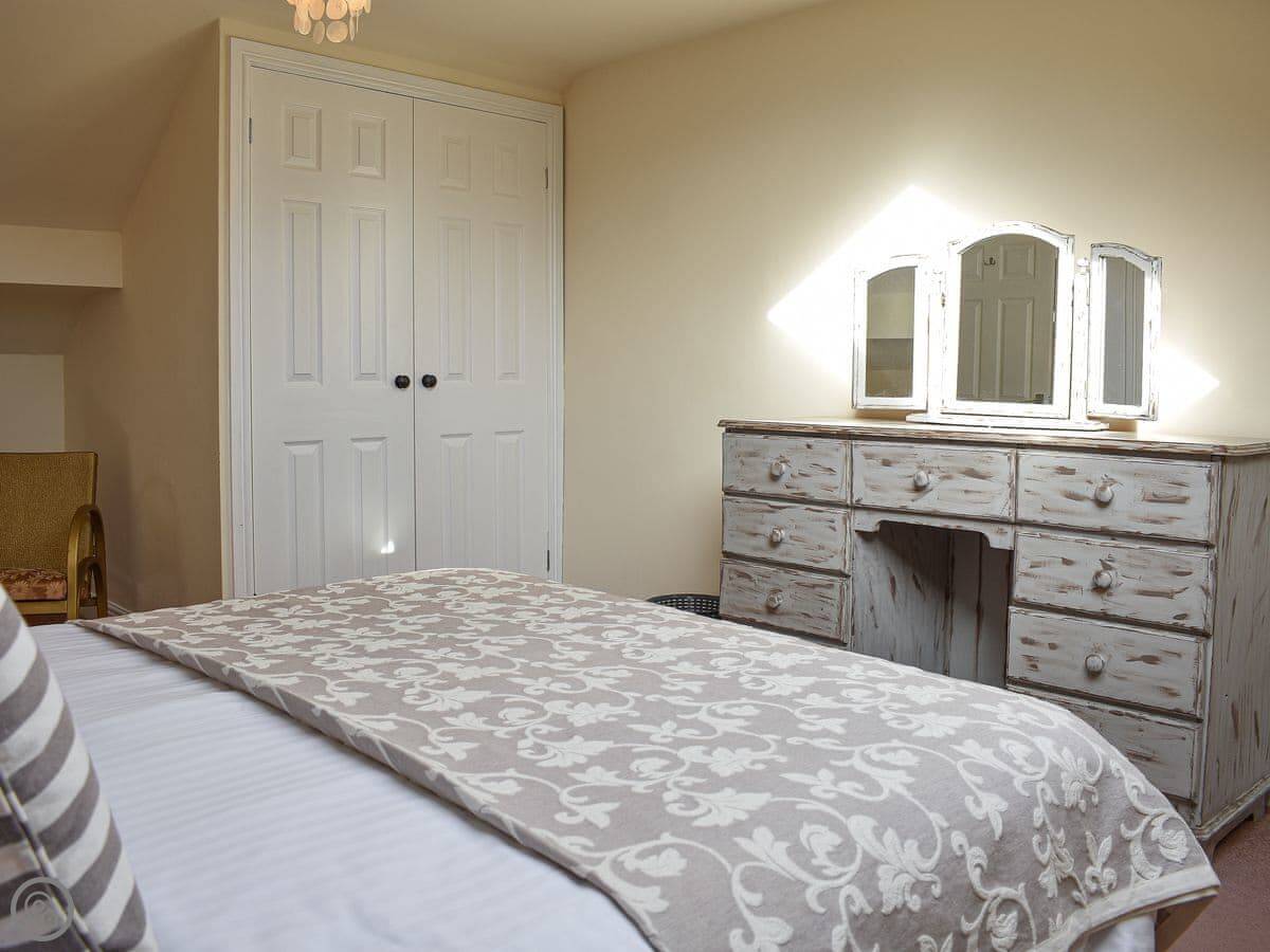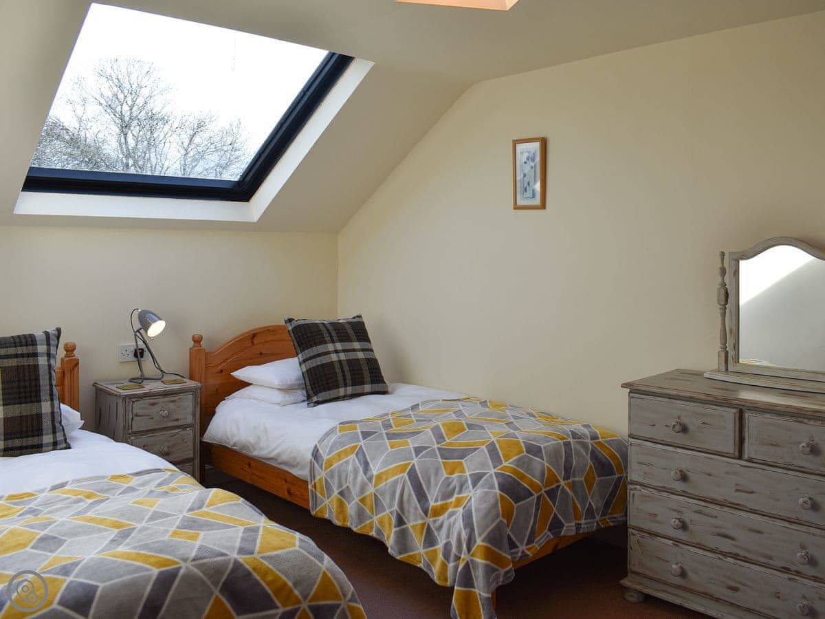Millers Cottage is upside down and is perfect for couples or a small family. A pretty living area looks out across open countryside and features beams and a cosy electric wood burner, comfortable sofas and plenty of space to relax. The well-equipped kitchen/dining area is ready to rustle up a hearty breakfast or warming supper. Downstairs are two spacious and comfortable bedrooms, one with a kingsize bed, the other with twin beds and a third bed, which can be made up on request to make a family room.