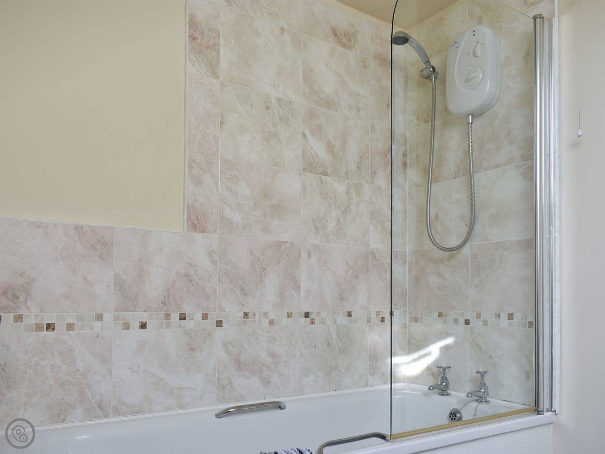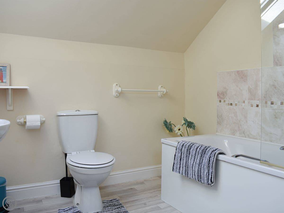 There is a downstairs shower room, as well as a family bathroom upstairs. Also on the first floor are three spacious bedrooms, two with twin beds and a pull-out bed, and a third with a kingsize bed.