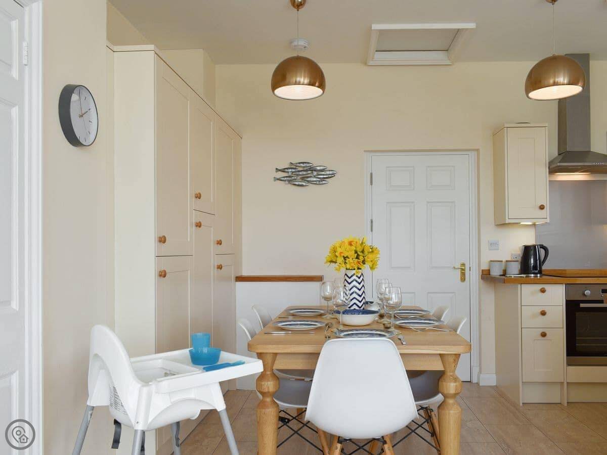 In terms of what’s there, it’s got a washing machine, dishwasher, WiFi, and a TV. Bedding and towels are included. There’s a cot and a highchair if you need them. No pets.