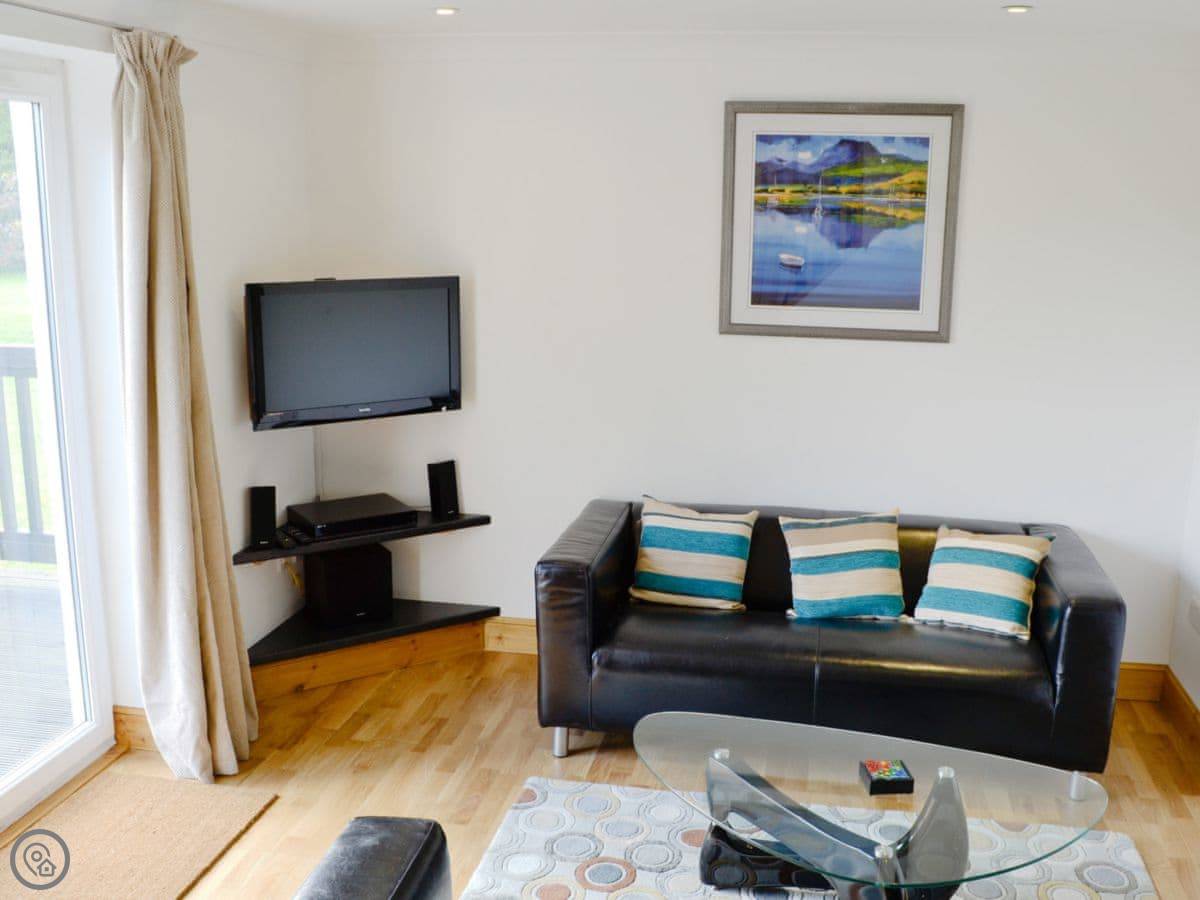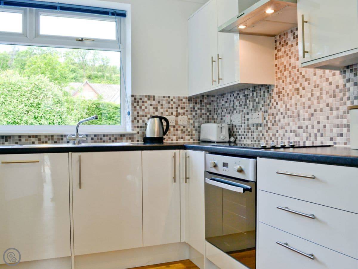 It sleeps four, two bedrooms and one bathroom. It's got a 4 Star rating. The main room is open plan, kitchen and living area together. There's a dishwasher and washing machine. The garden looks out towards the water and gets the sun.