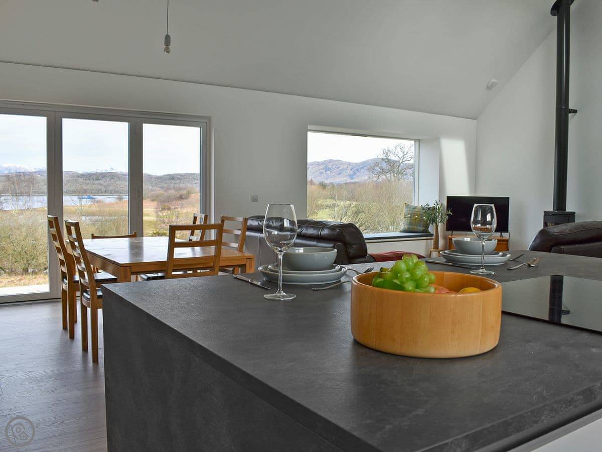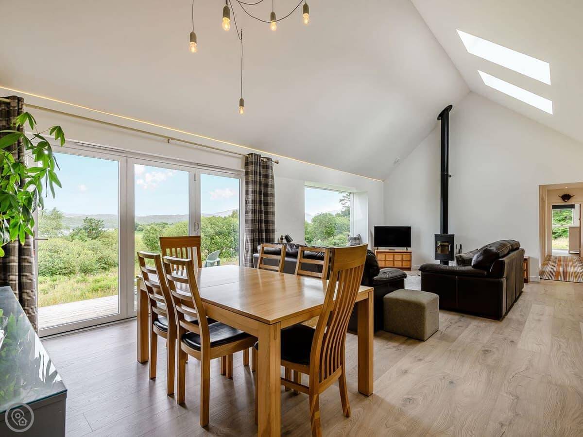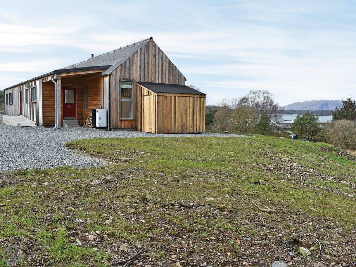 This is Taigh-Na-Coille. It's a modern bungalow in Barcaldine, on the west coast of Scotland. It's a wooden house, detached, so you're on your own out here. The views are over the loch.