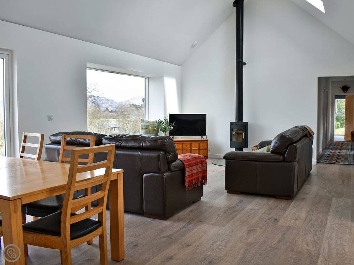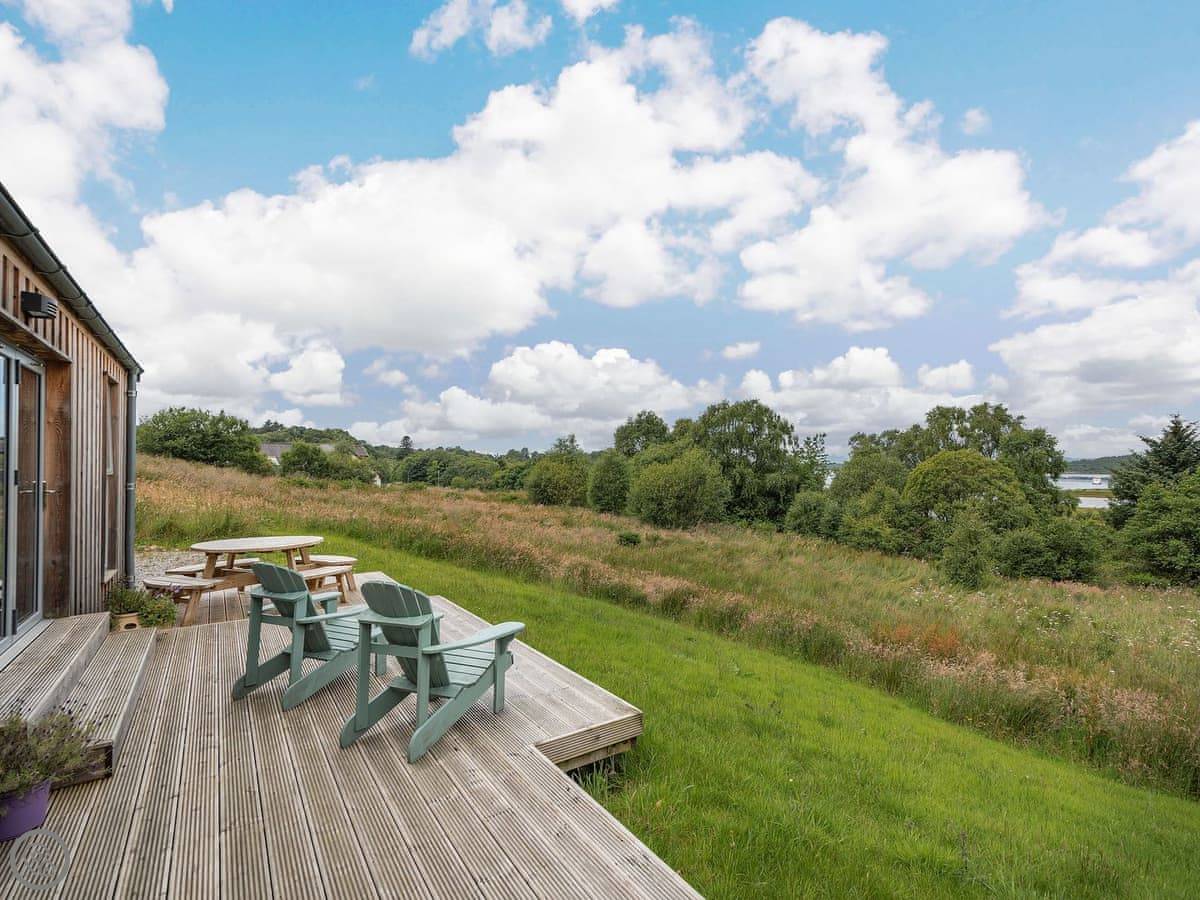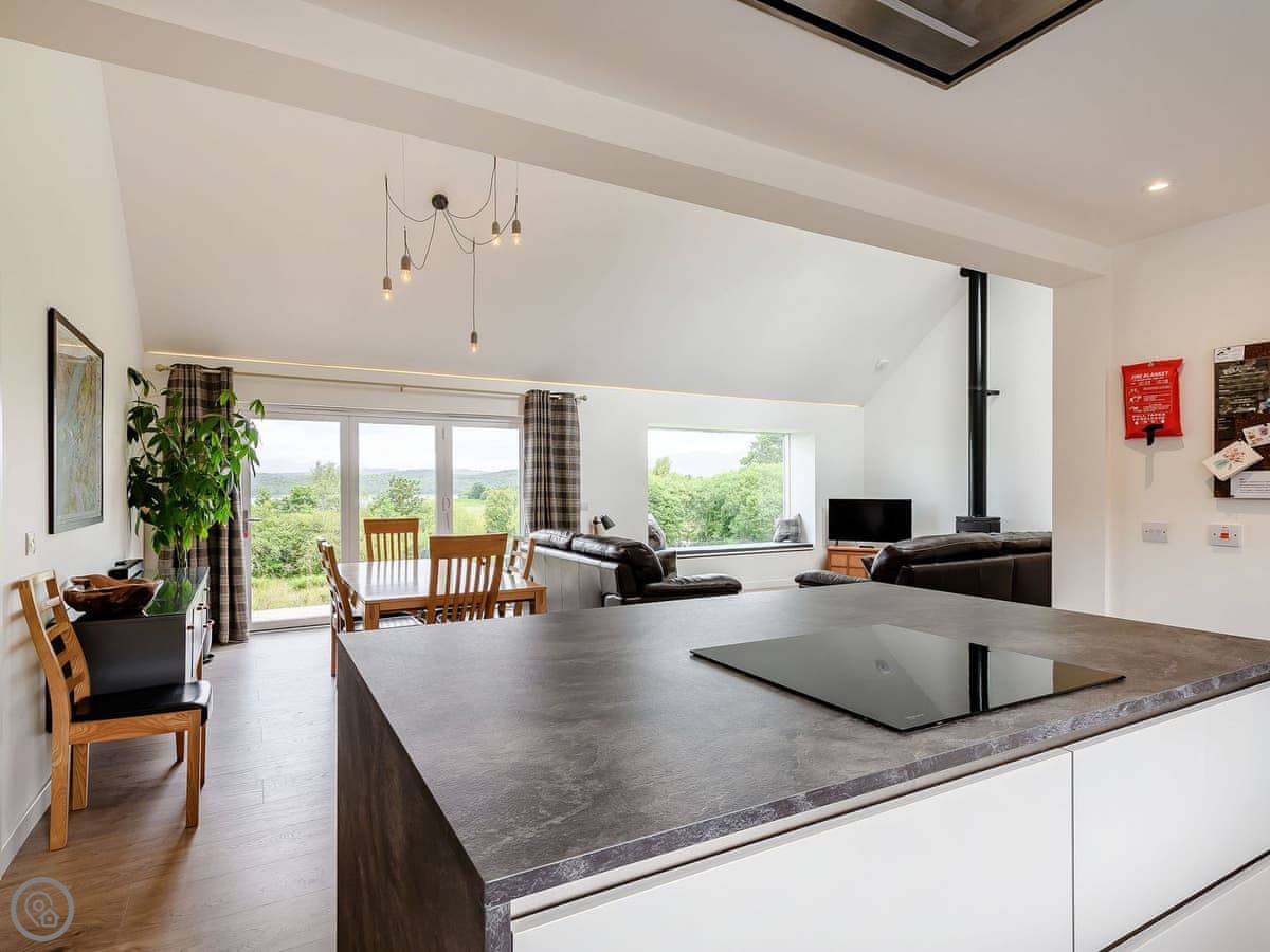 This is Taigh-Na-Coille. It's a modern bungalow in Barcaldine, on the west coast of Scotland. It's a wooden house, detached, so you're on your own out here. The views are over the loch.