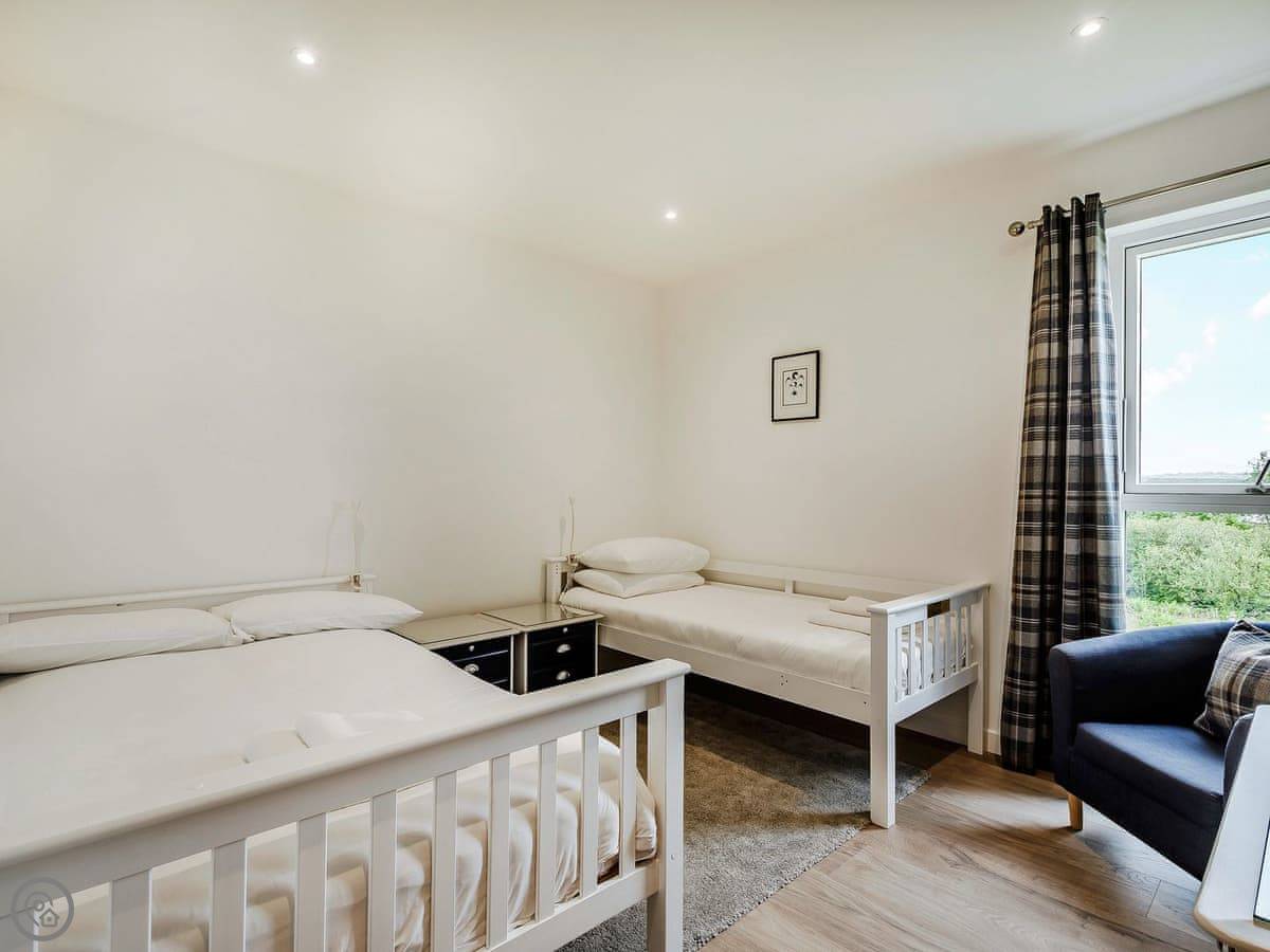 In terms of facilities: it's got a washing machine, dishwasher, WiFi, TV. Bedding and towels are included. There's a cot and highchair if you need them. Parking for a couple of cars right outside. No pets, sorry.