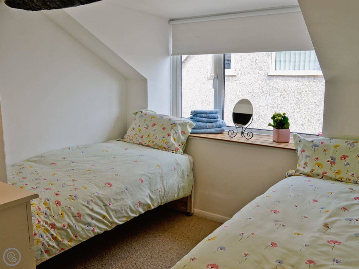 Jackdaw Cottage is a semi-detached place in Baycliff village. It fronts onto the lane and you get the garden behind it to yourselves. It sleeps three, across two bedrooms.