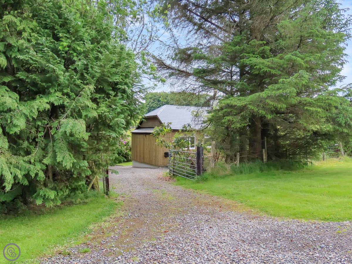 Swallow Lodge is in Carsphairn. It's a detached lodge on its own, so it's quiet. The view from the front is fields and hills. Nothing but fields and hills.