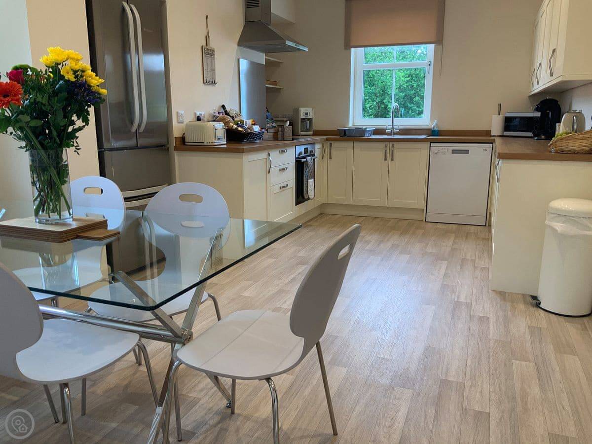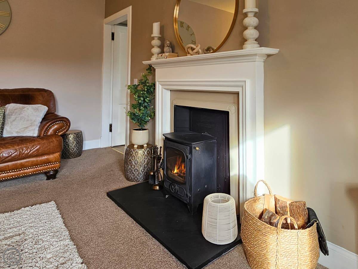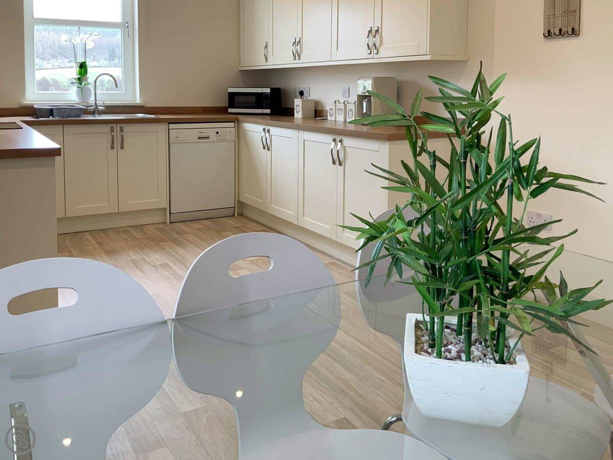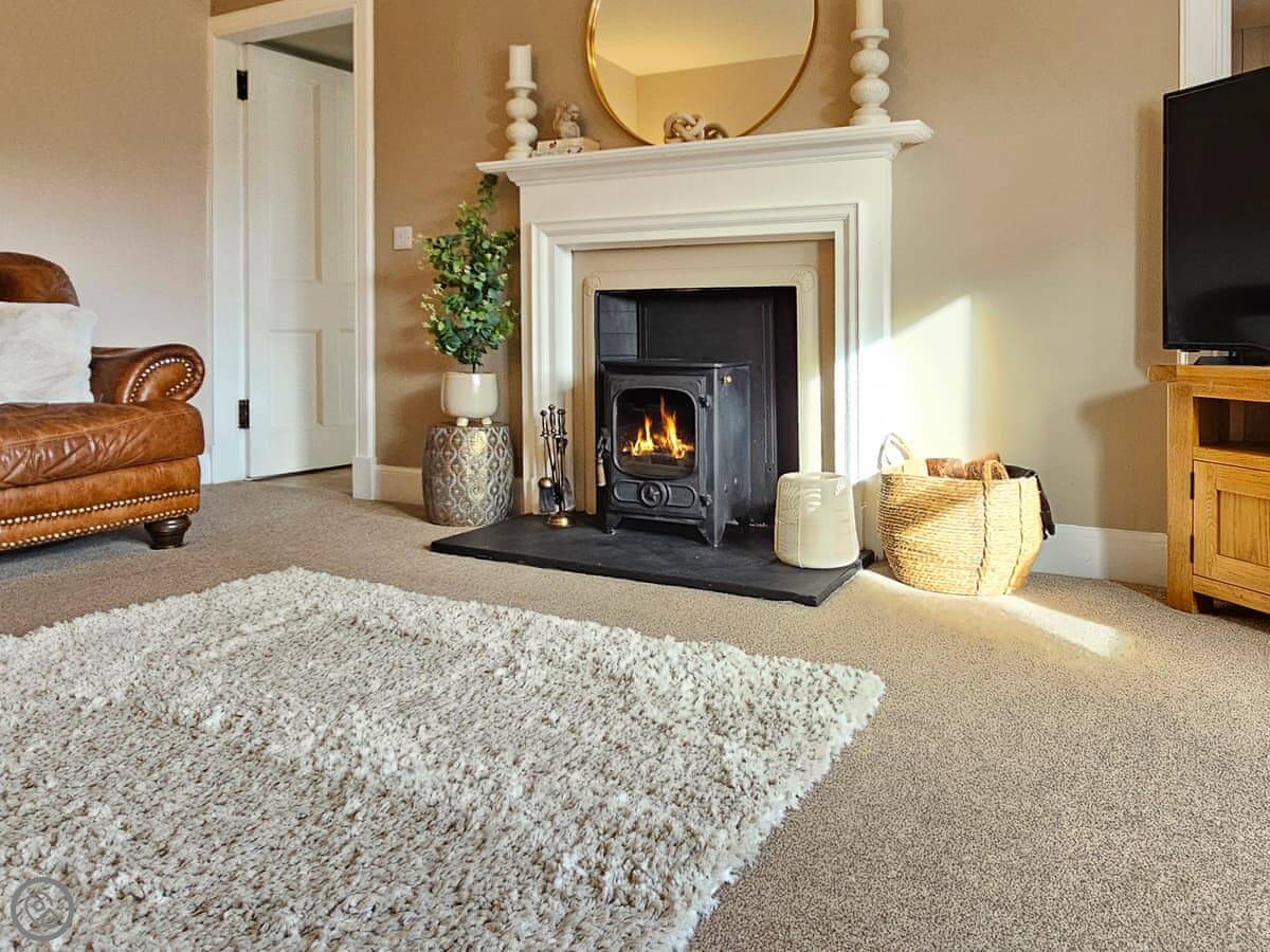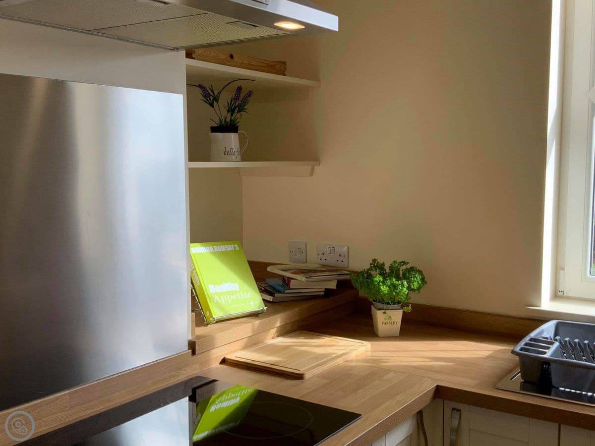 The kitchen is a decent size, and you look out over fields. There's a utility room with a washing machine and tumble dryer, which is useful. The living room has a wood burning stove. Logs aren't included, but you can get them locally.
